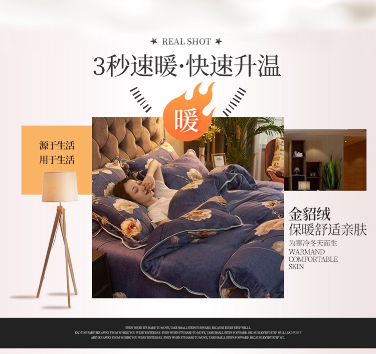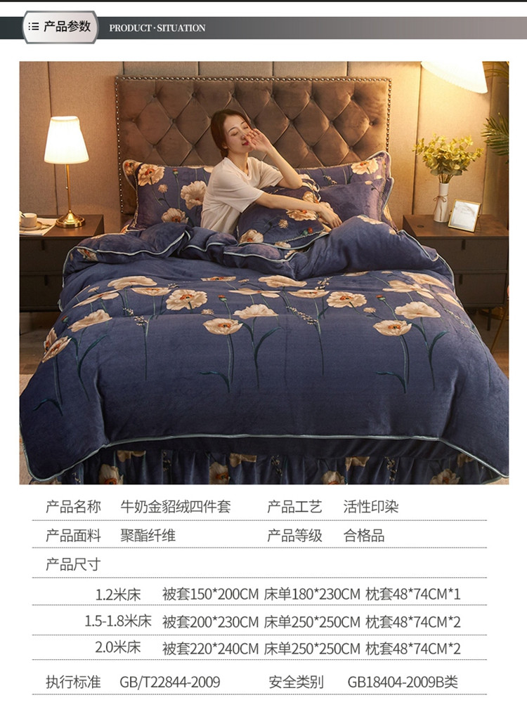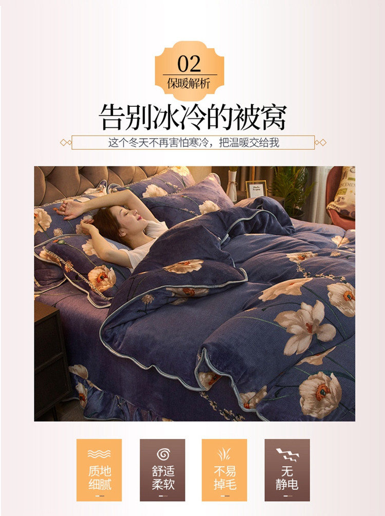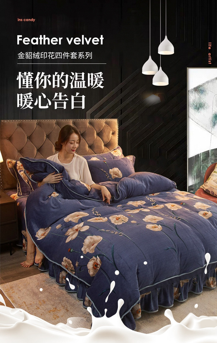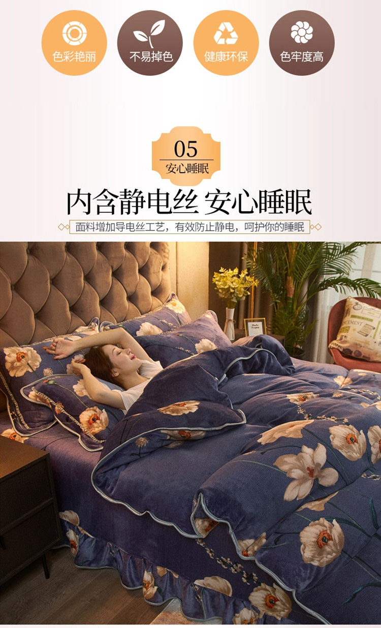 商品名称:爱洛牛奶绒宝宝绒水晶绒法莱绒金貂绒四件套 花儿朵朵