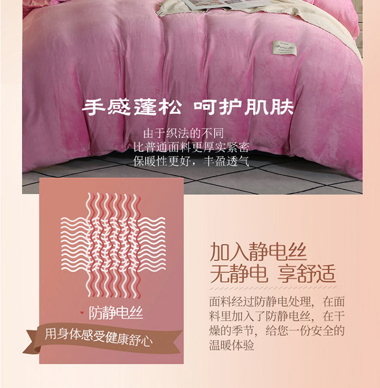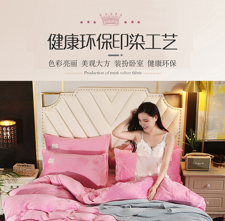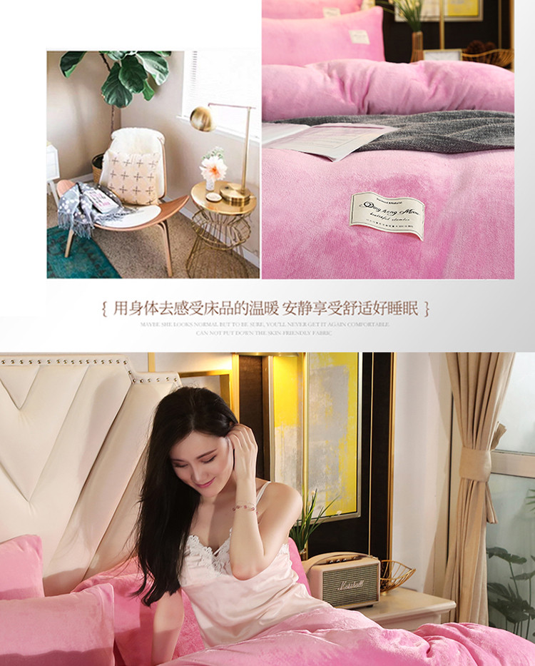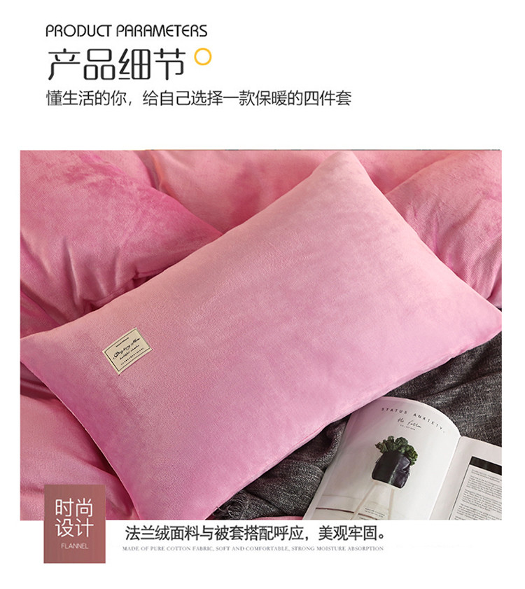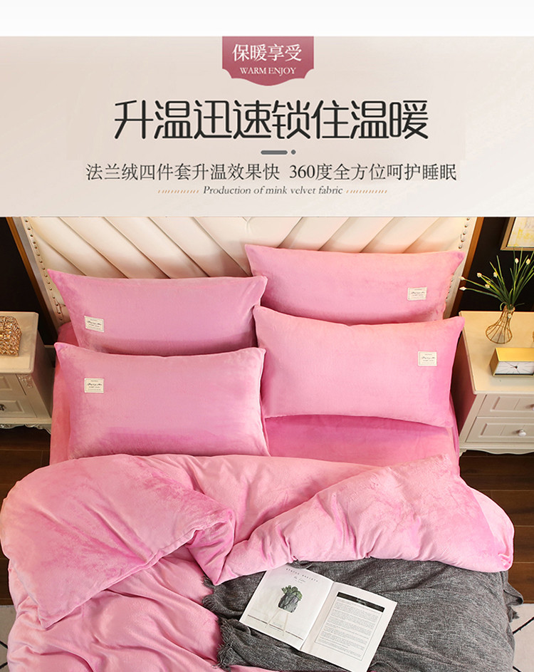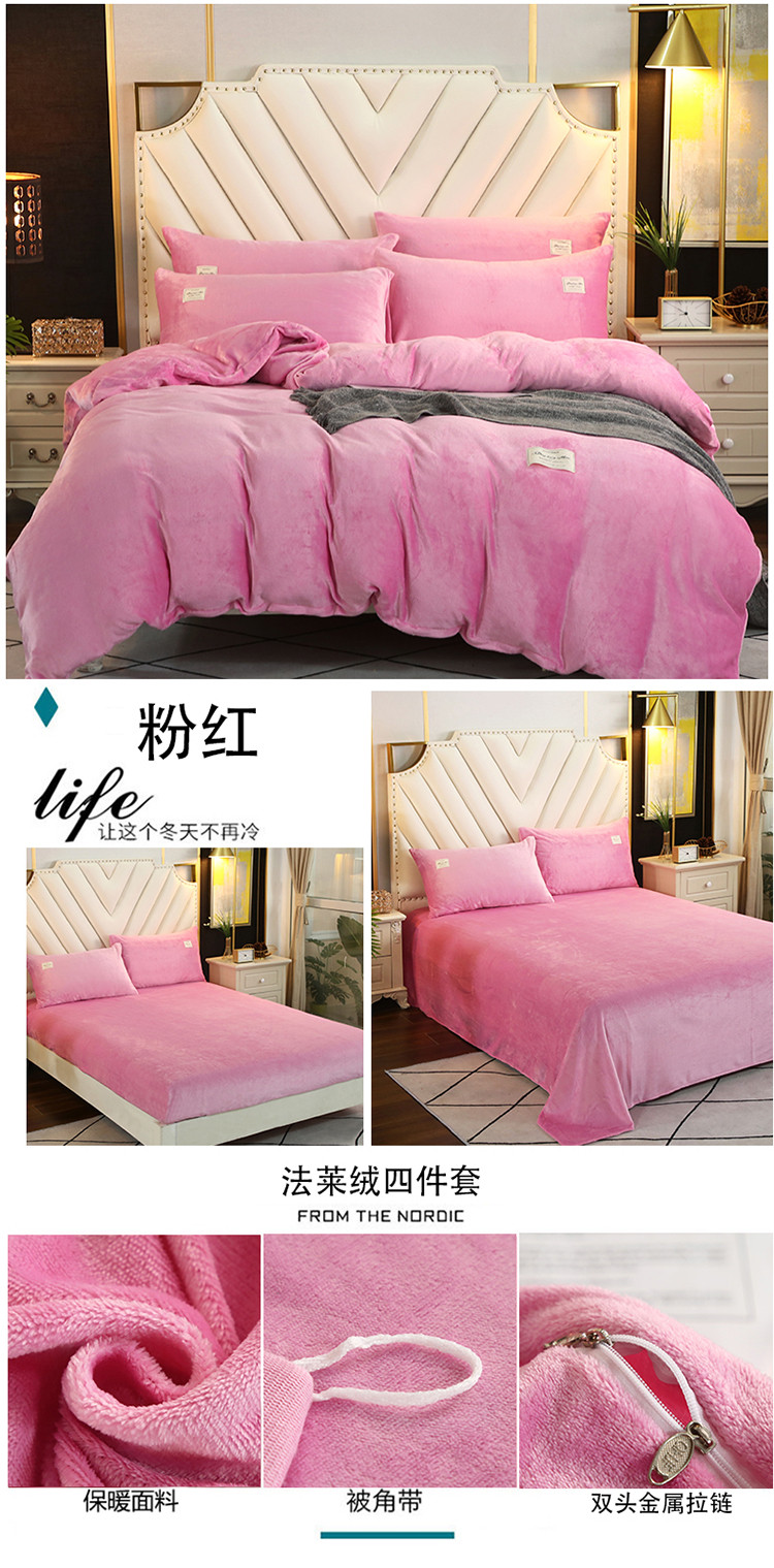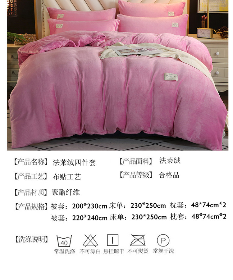 商品名称:情恒 2020新款纯色牛奶绒水晶绒法莱绒贴标四件套 粉红