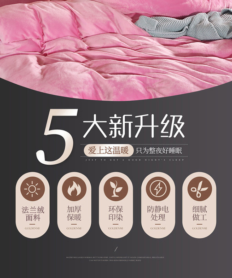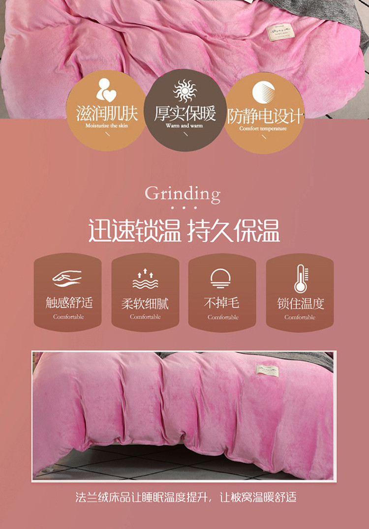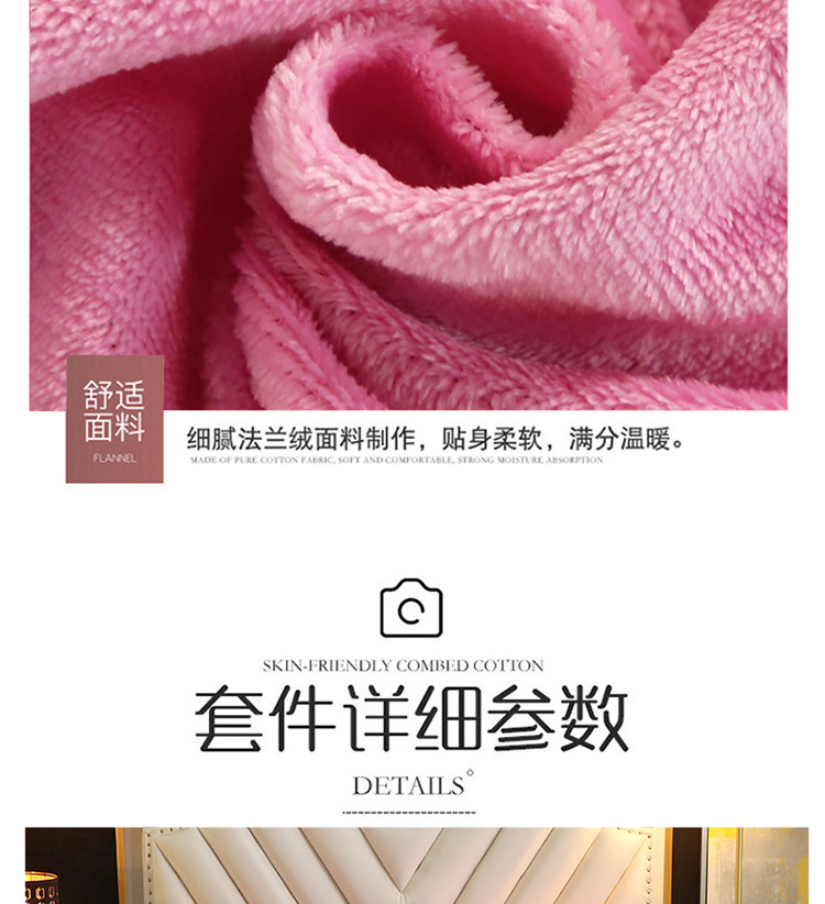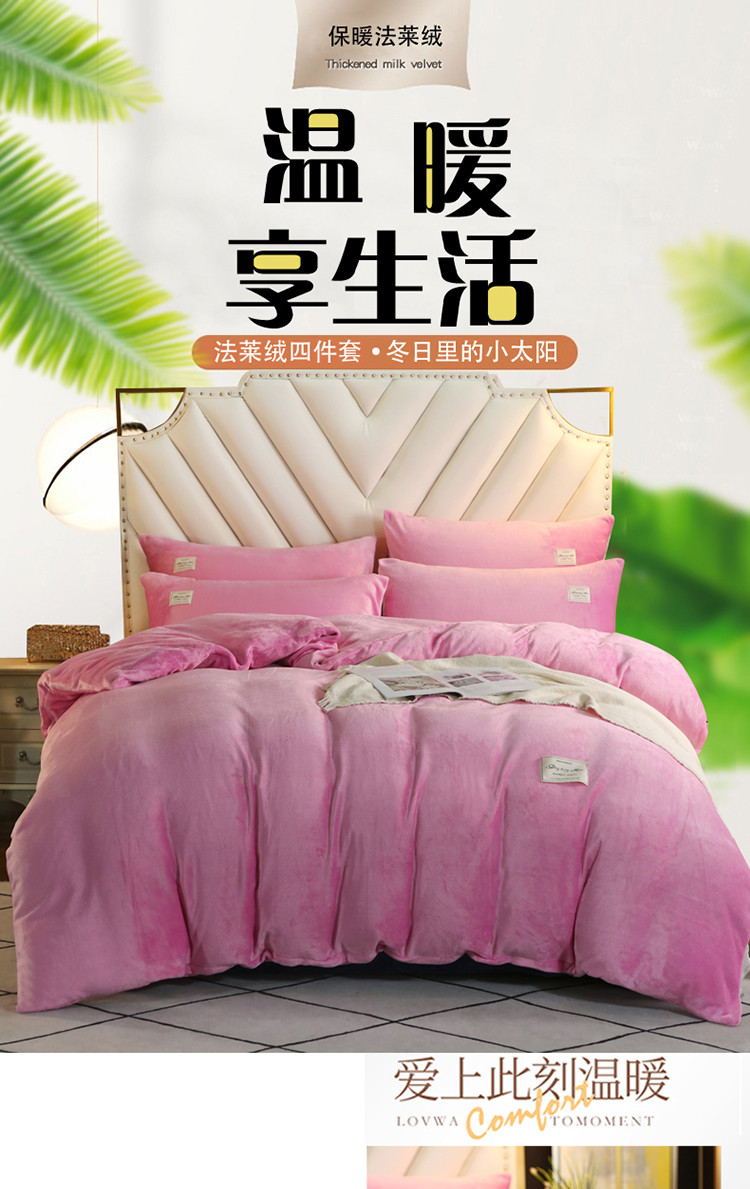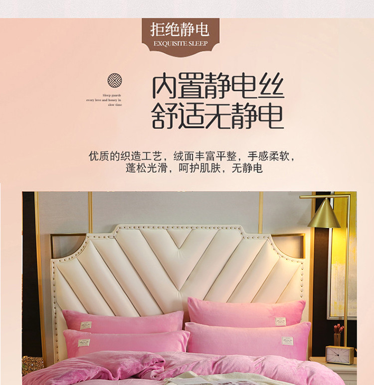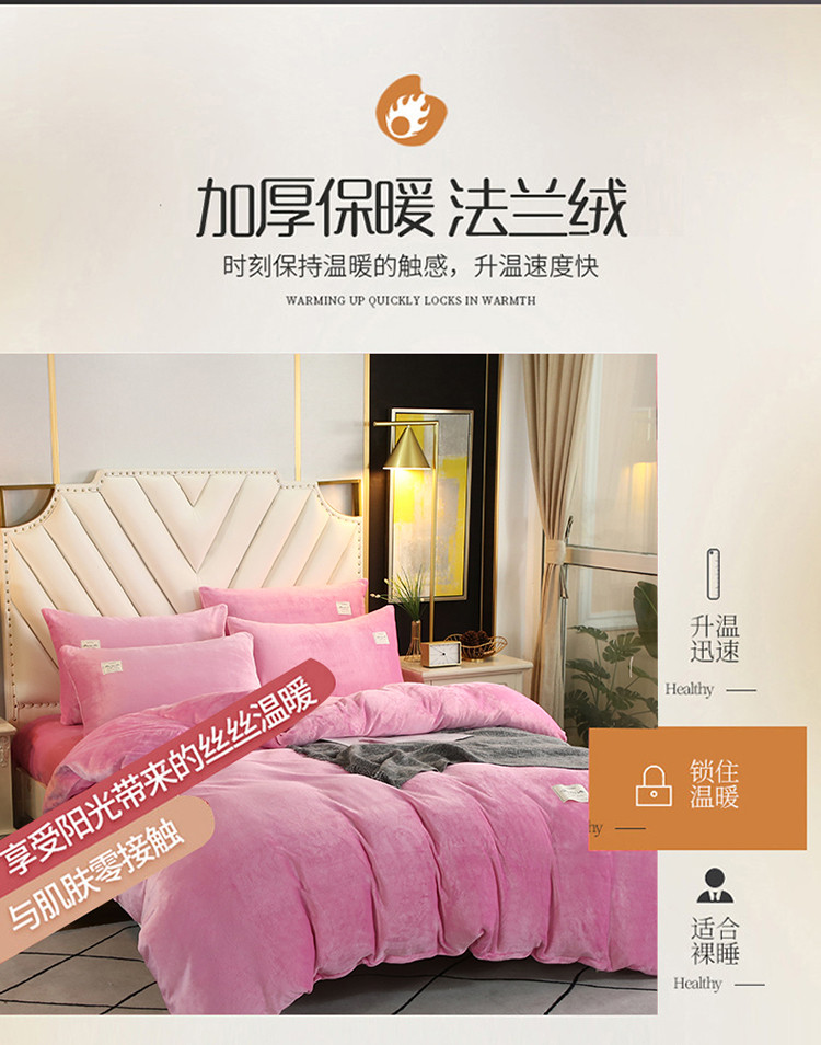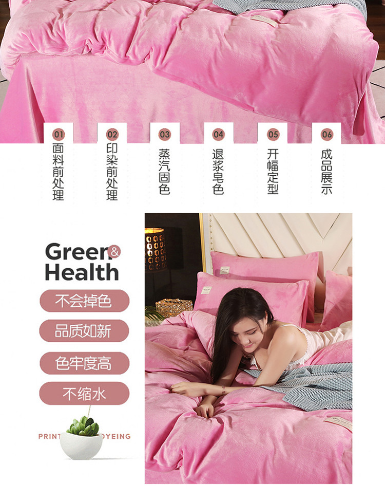 商品名称:情恒 2020新款纯色牛奶绒水晶绒法莱绒贴标四件套 粉红