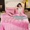 情恒 2020新款纯色牛奶绒水晶绒法莱绒贴标四件套 粉红
