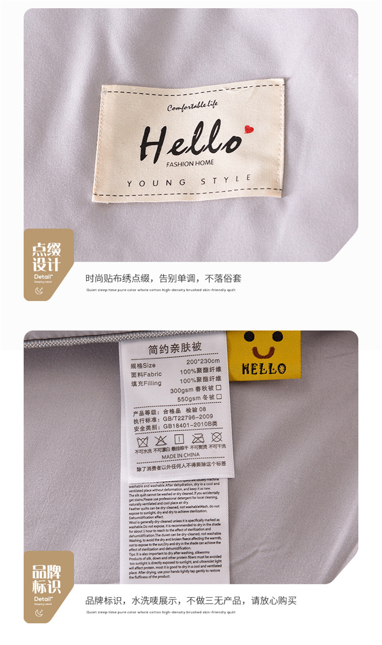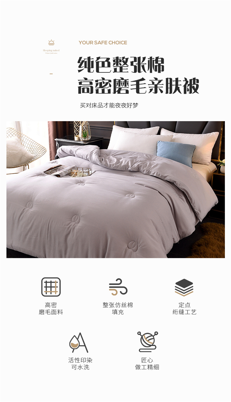 商品名称:德芙2020新款纯色整张棉高密磨毛亲肤被 浅灰