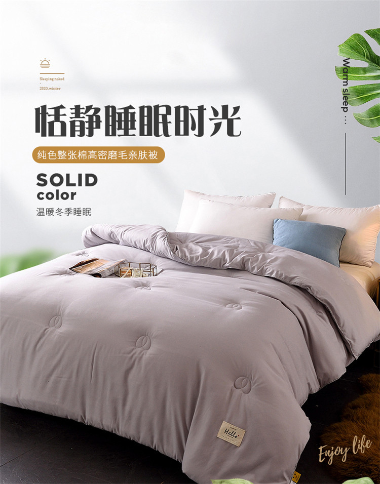 德芙2020新款纯色整张棉高密磨毛亲肤被 浅灰