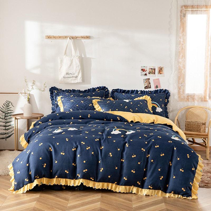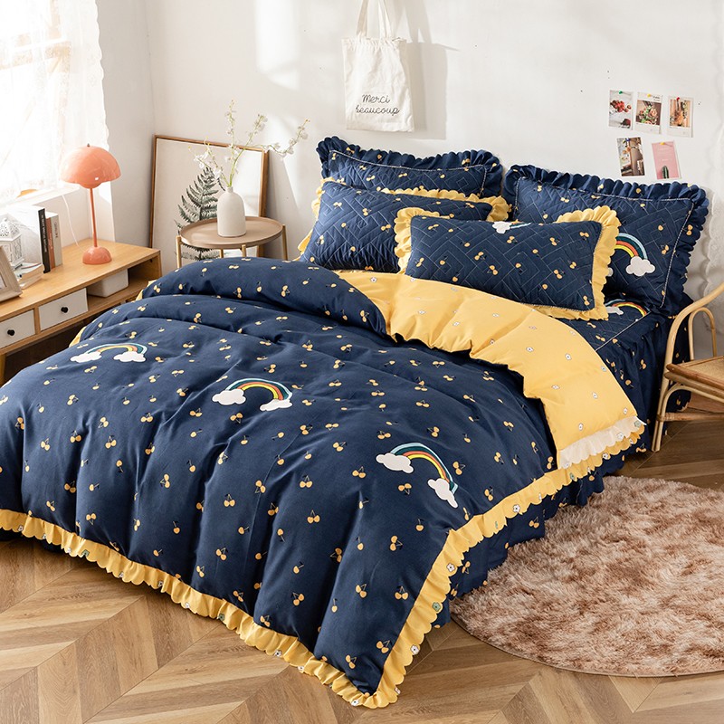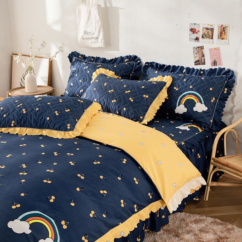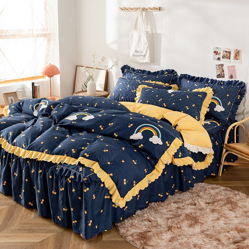 纽缦 2020新款加厚磨毛夹棉床裙款四件套 彩虹小镇
