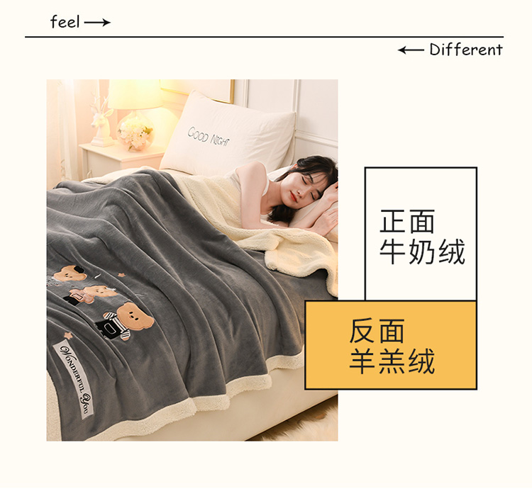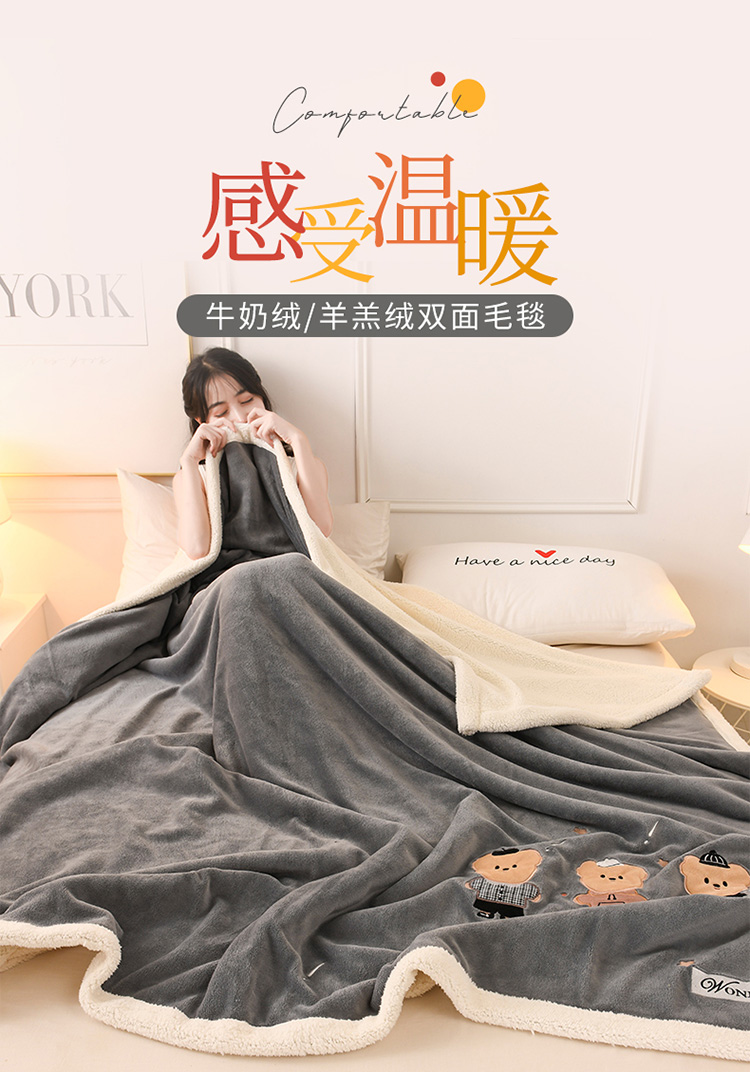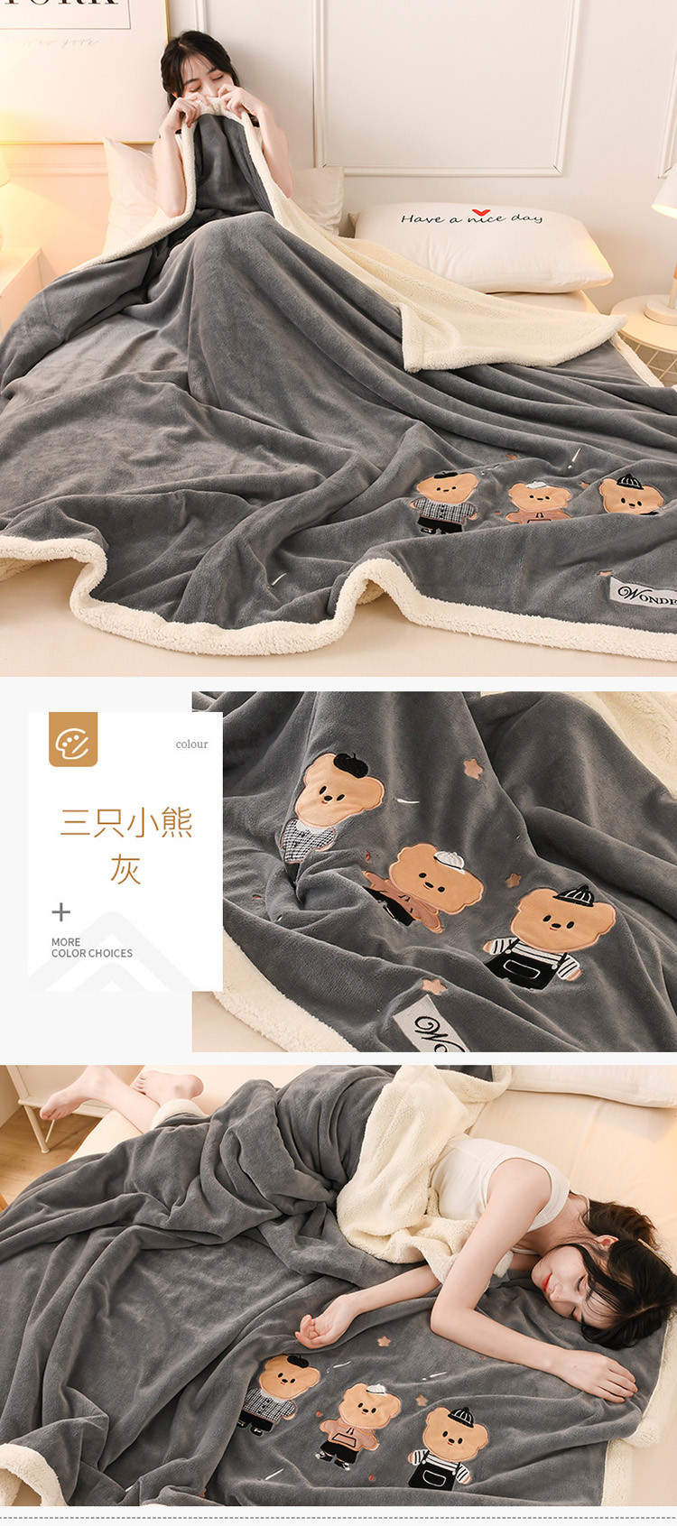 朗莎家纺 2020新款羊羔绒+牛奶绒毛毯 三只小熊-灰