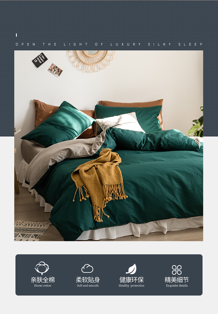 当前位置: 91家纺网 > 商品网购 > 床品套件 > 四件套 > 全棉普通四件套 > 全棉40s加厚双拼四件套中绿-浅灰