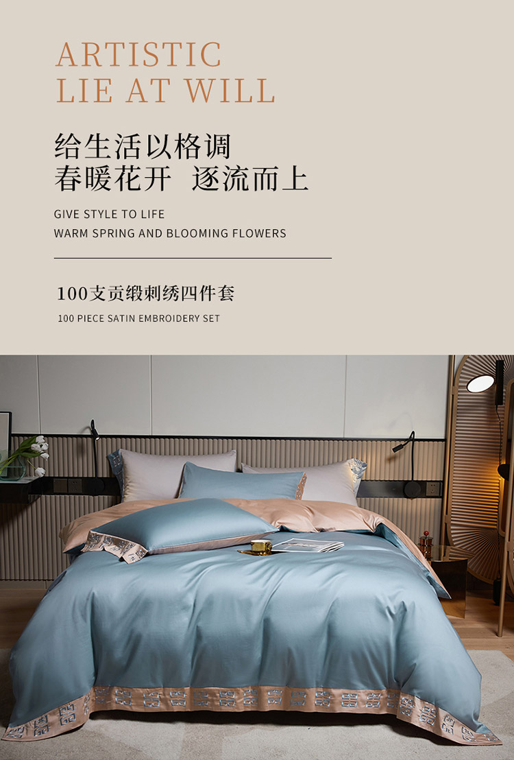 (总)爱缦 2025新款100支新疆长绒棉刺绣四件套-时光系列,时光-薄荷青,时光-芙蓉粉,时光-元气白桃