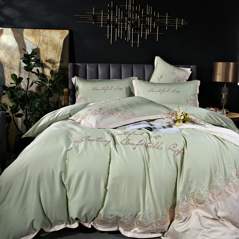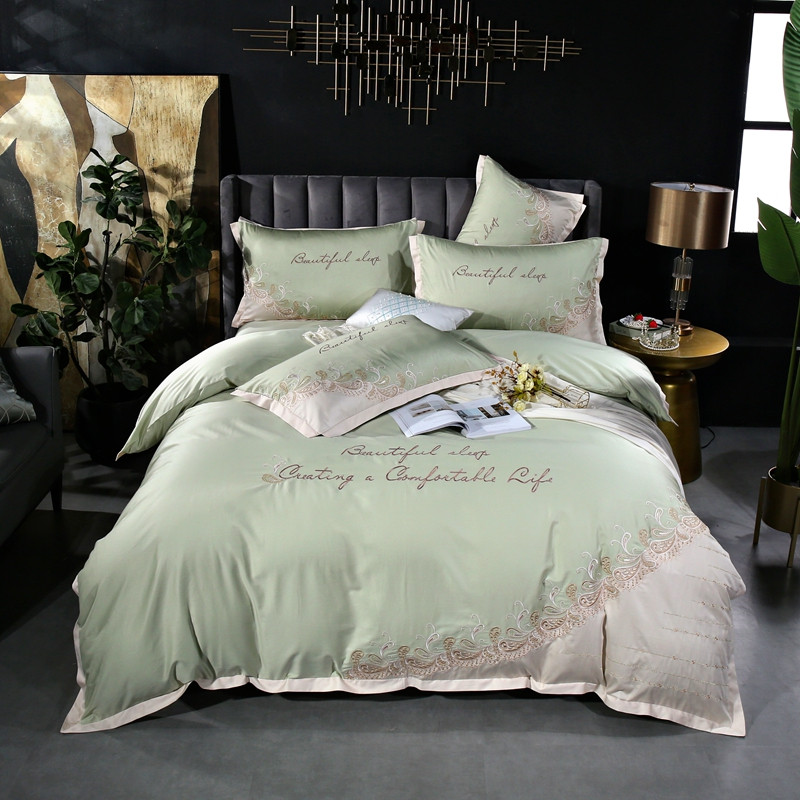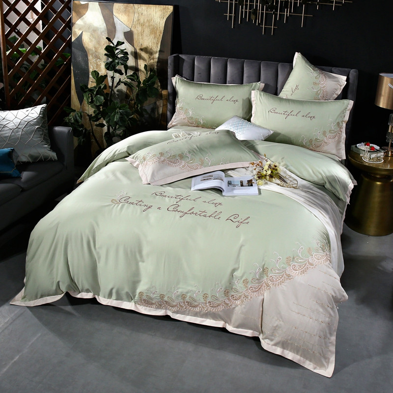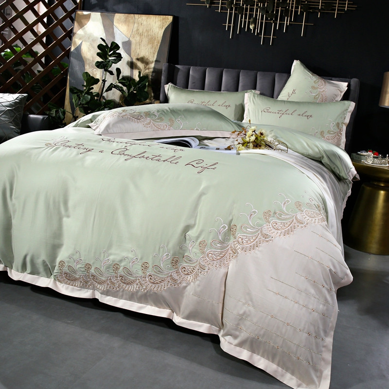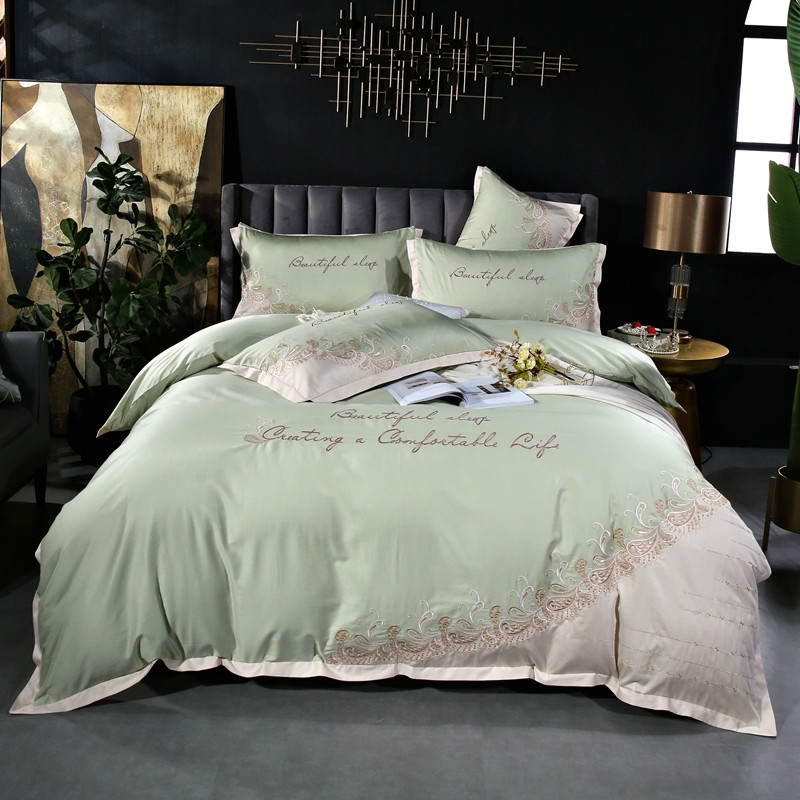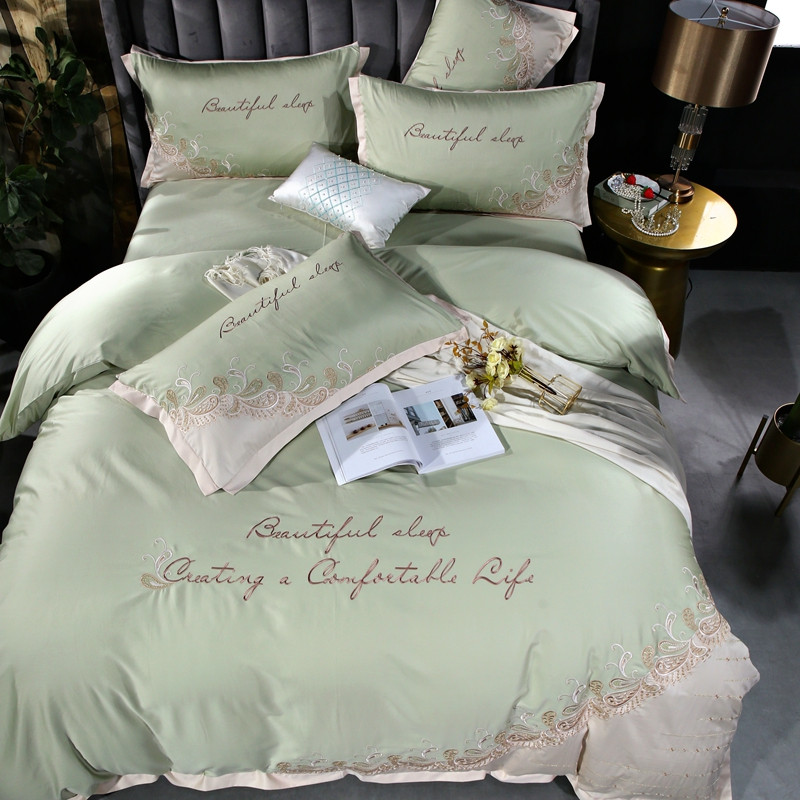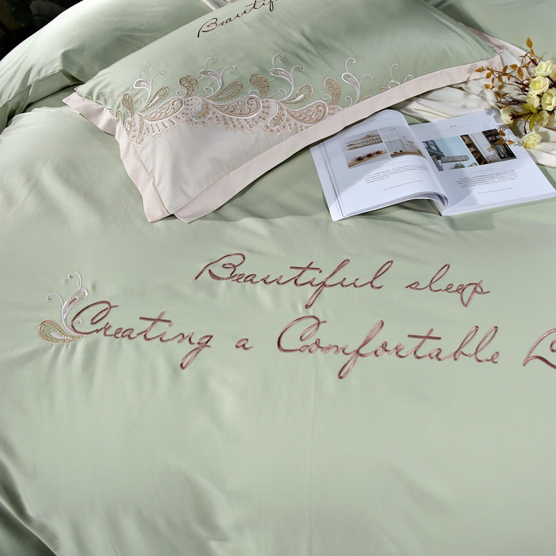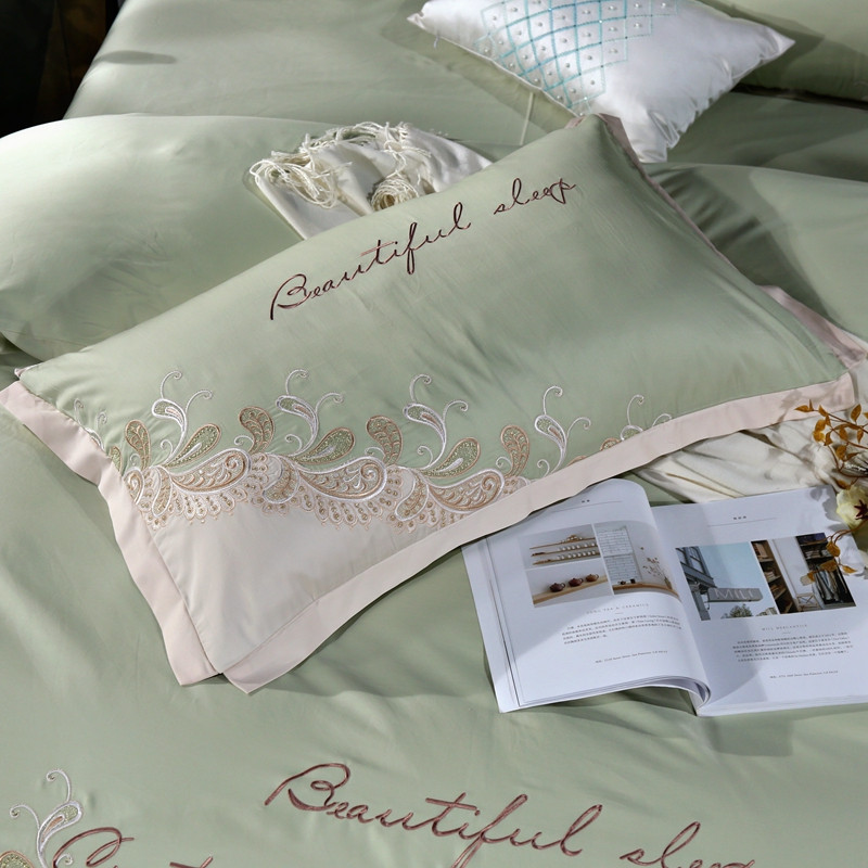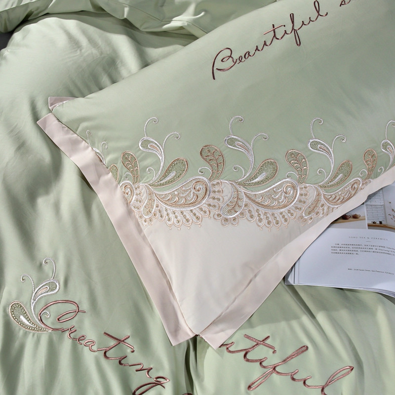星尚家纺2021新款100支长绒棉曼莎四件套 抹茶绿