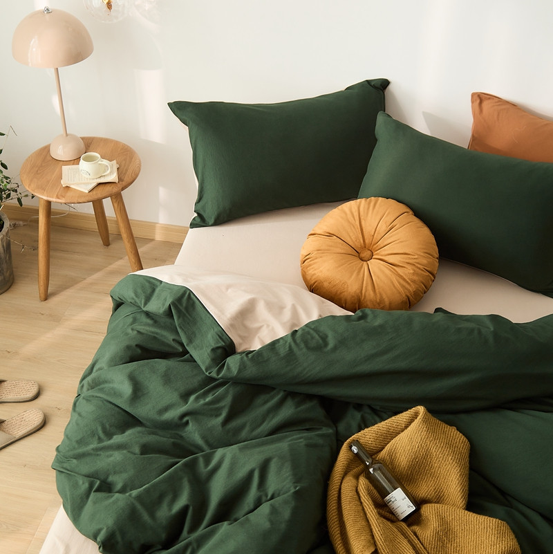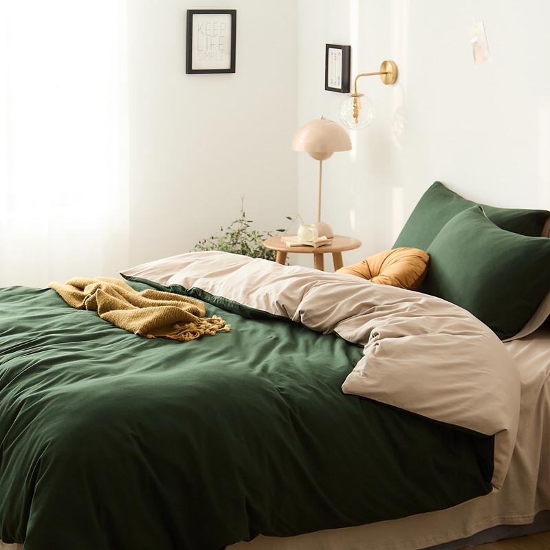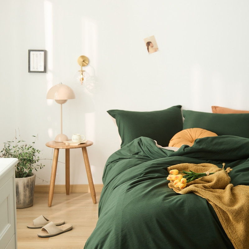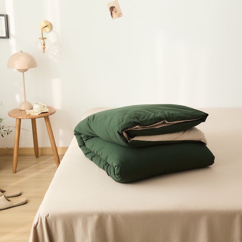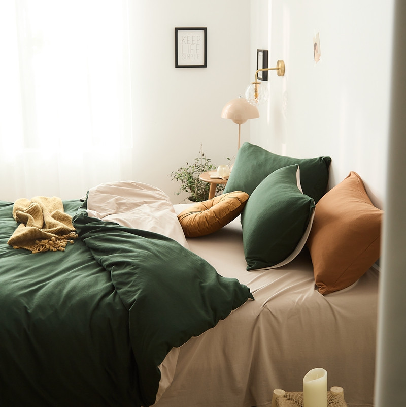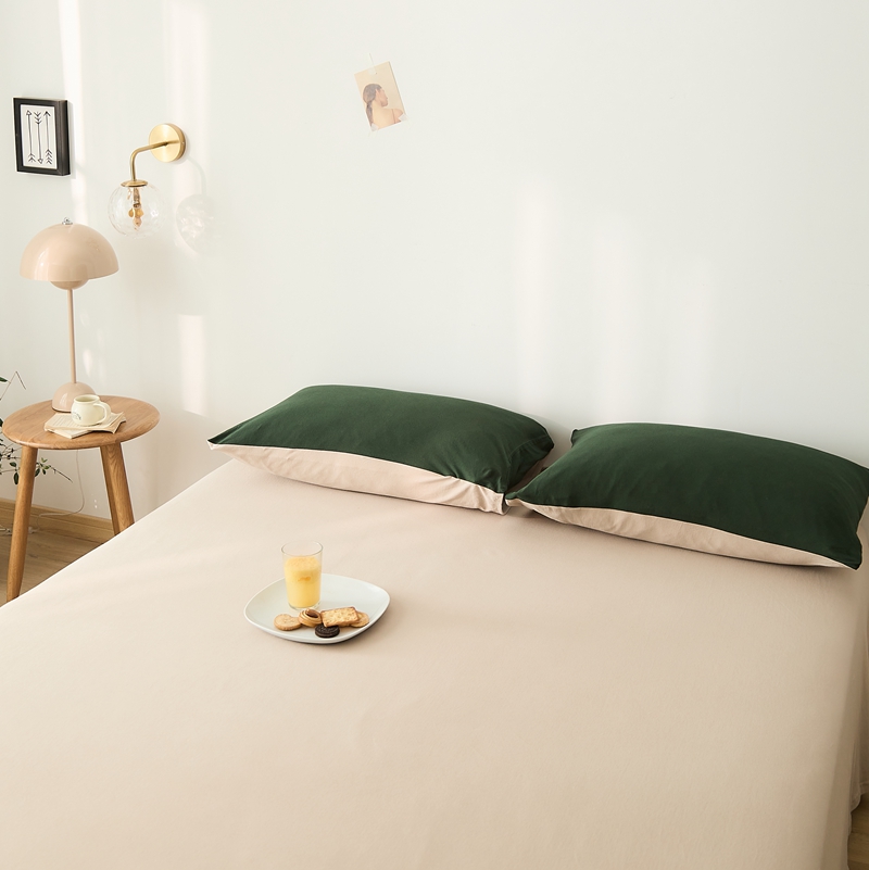当前位置: 91家纺网 > 商品网购 > 床品套件 > 四件套 > 针织棉四件套 > 原研家居 2021新款全棉针织棉纯色系列四件套 森林绿米咖