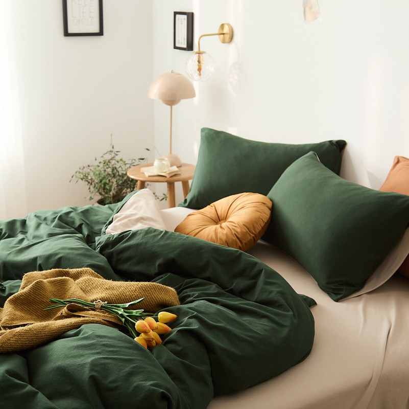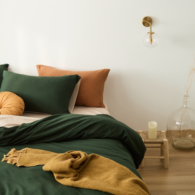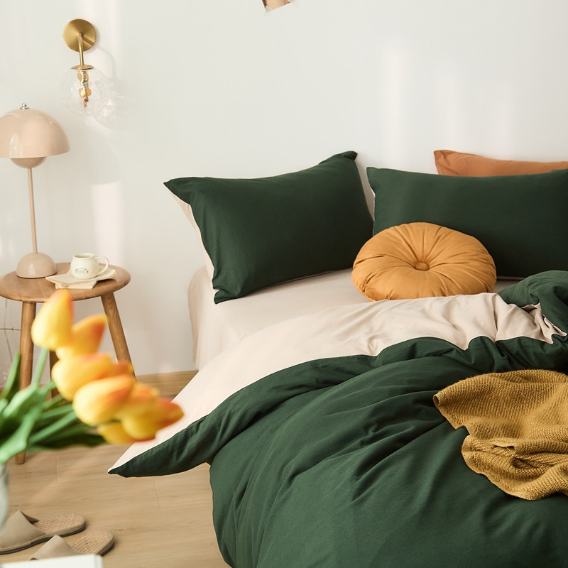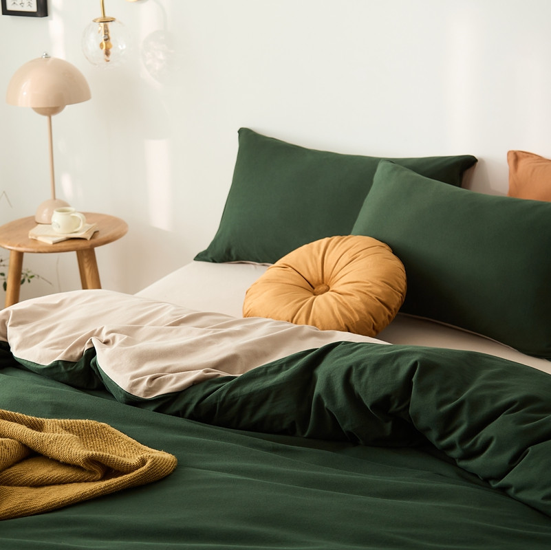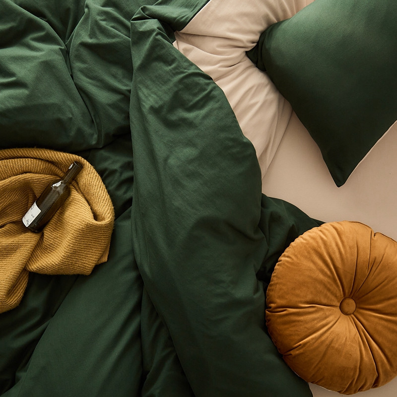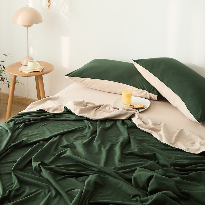当前位置: 91家纺网 > 商品网购 > 床品套件 > 四件套 > 针织棉四件套 > 原研家居 2021新款全棉针织棉纯色系列四件套 森林绿米咖
