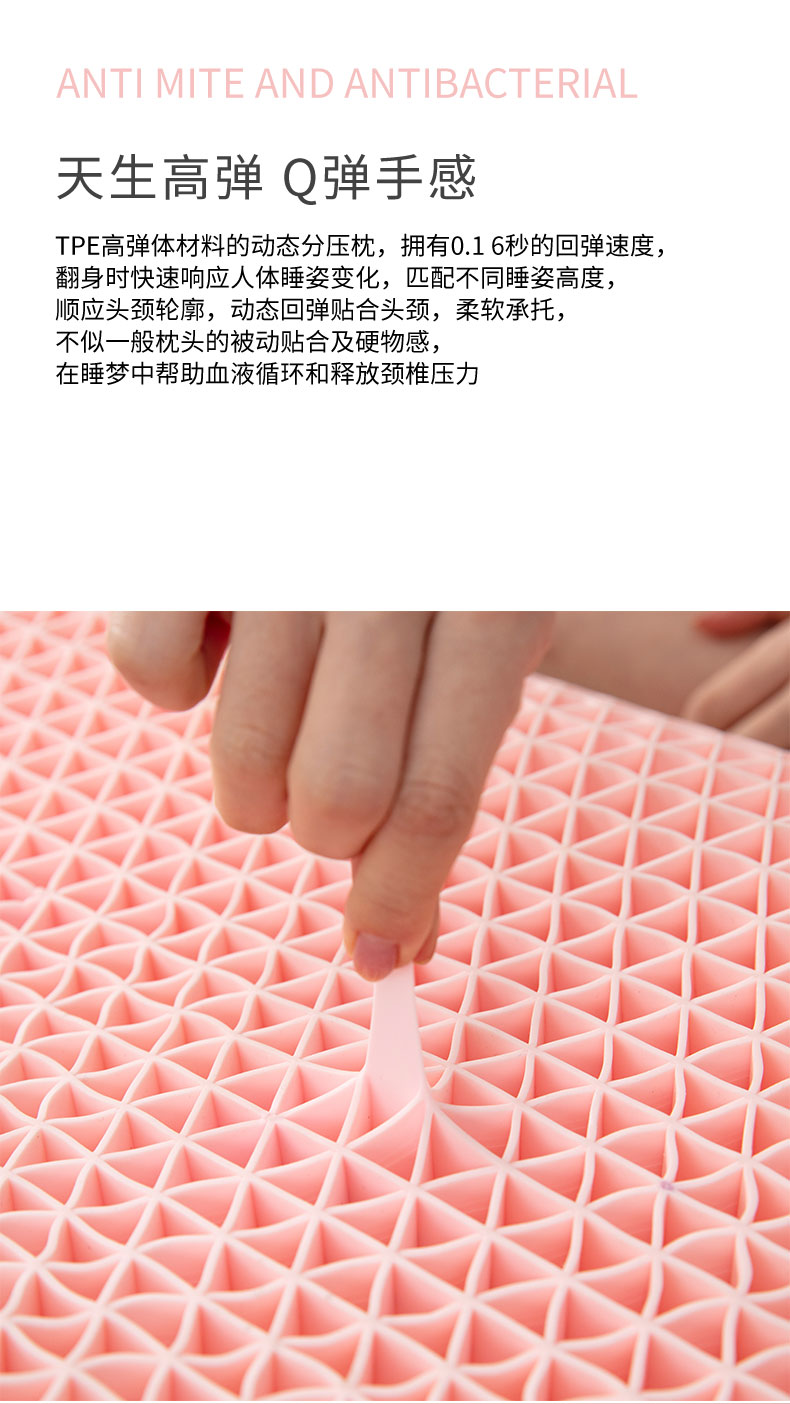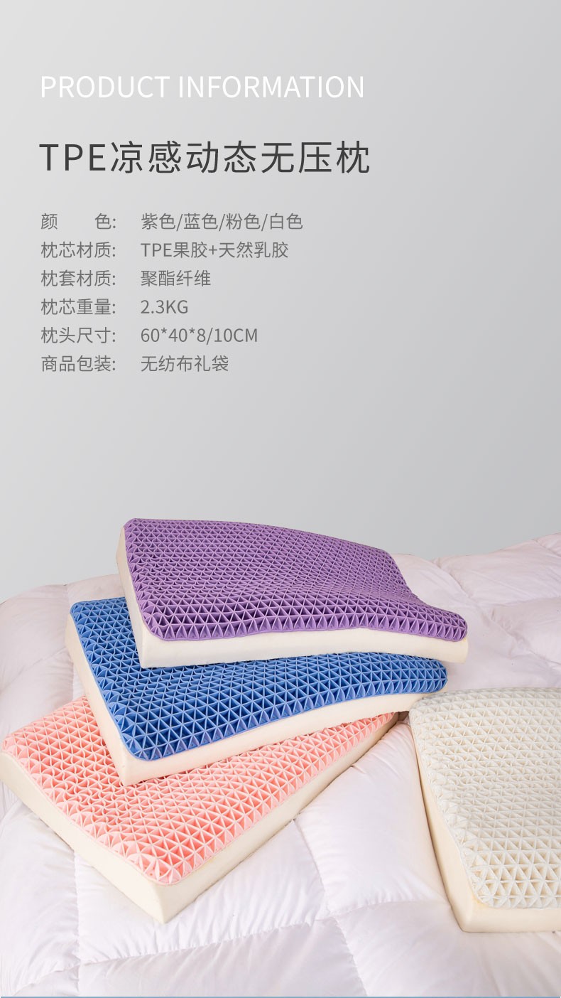 商品名称:TPE记忆棉复合枕柔软舒适弹性果胶枕分压枕