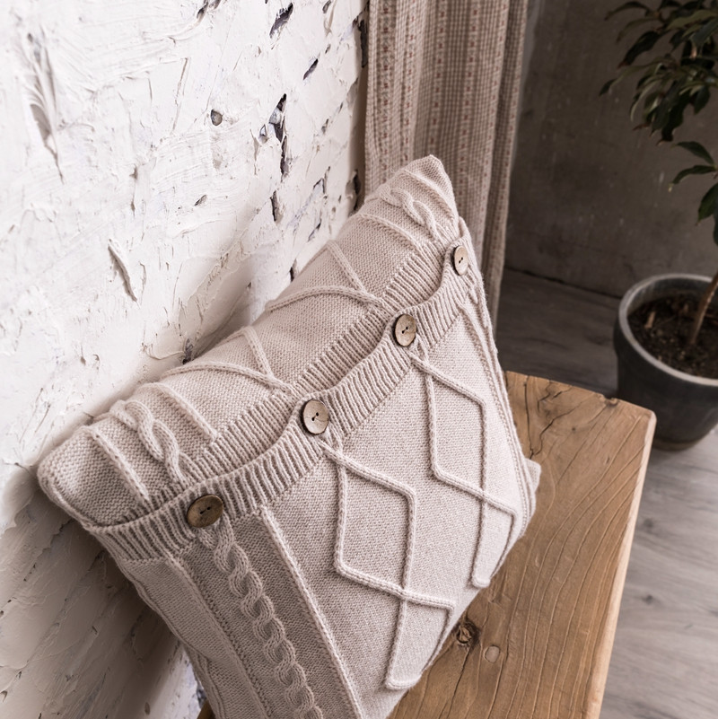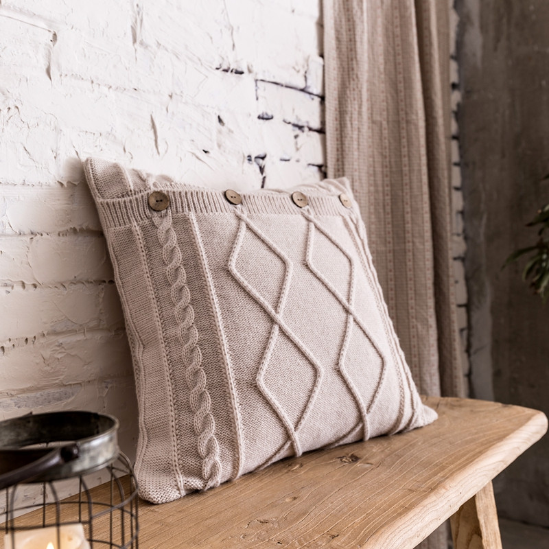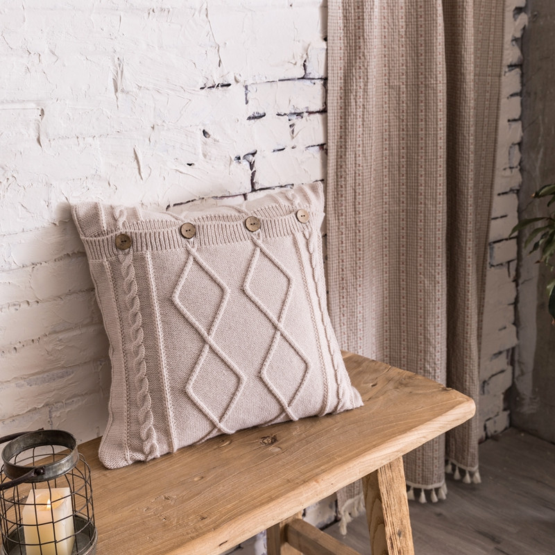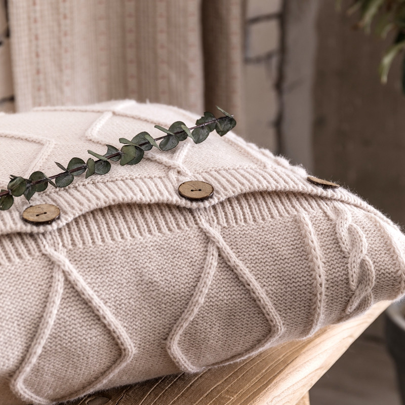 918拾朵家居2021新款菱格麻花抱枕 米白