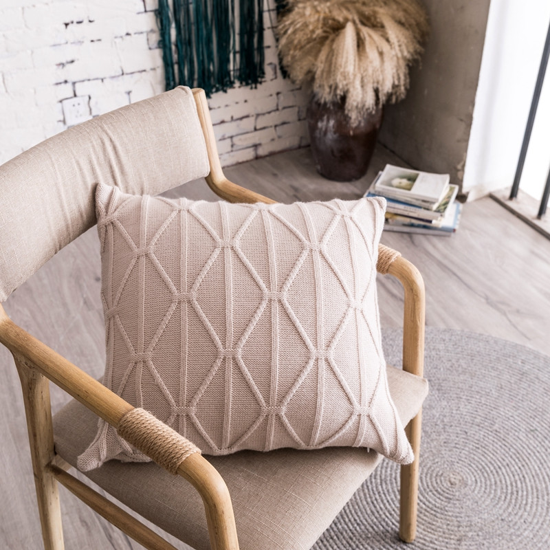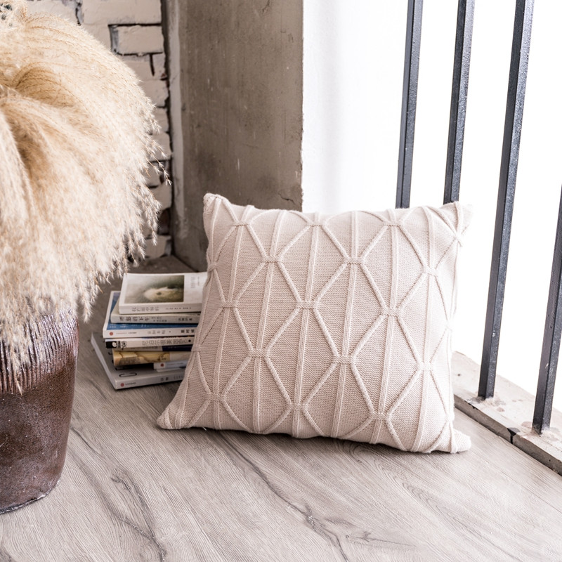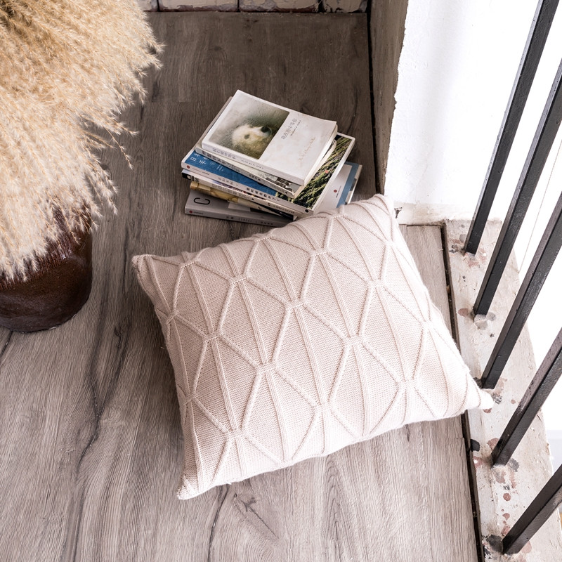 商品名称:918拾朵家居 2021新款米字结抱枕 米色