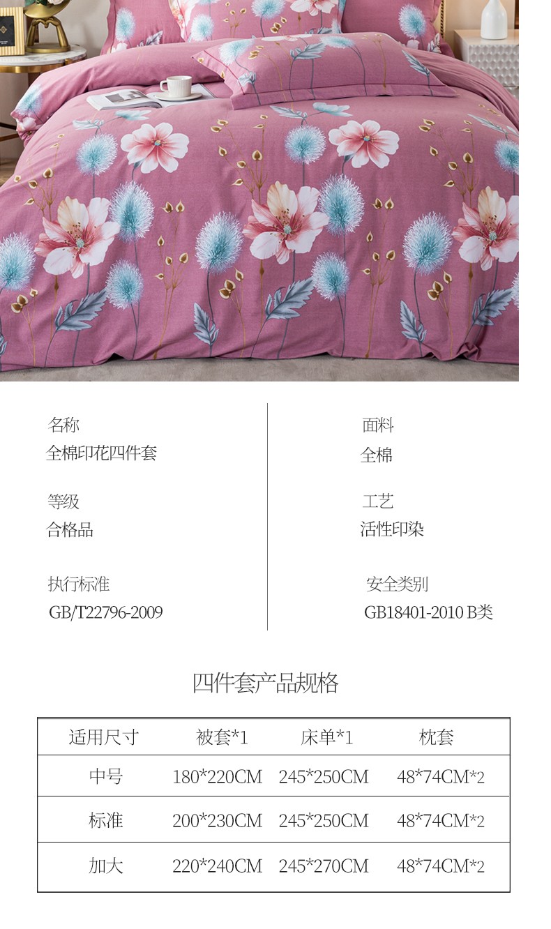 商品名称:(总2)金纱玉纺 2022新款全棉磨毛四件套