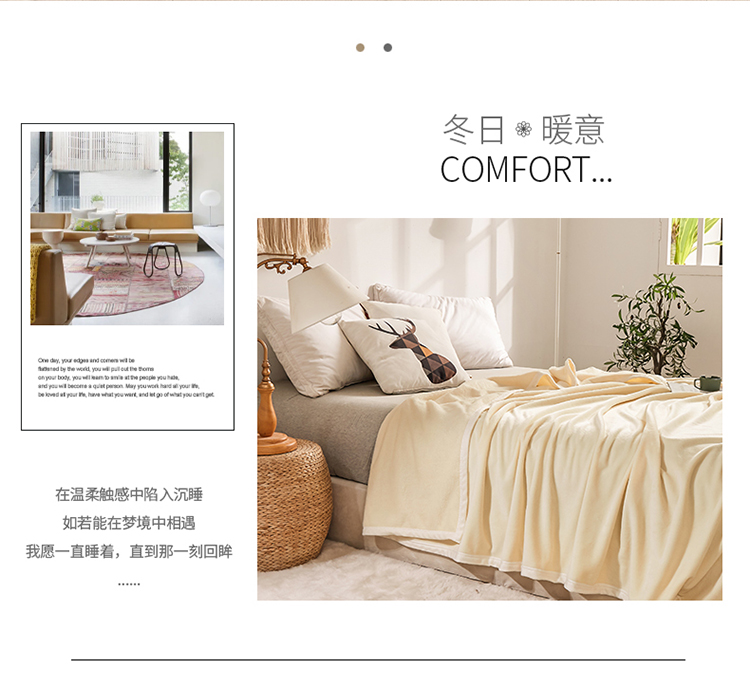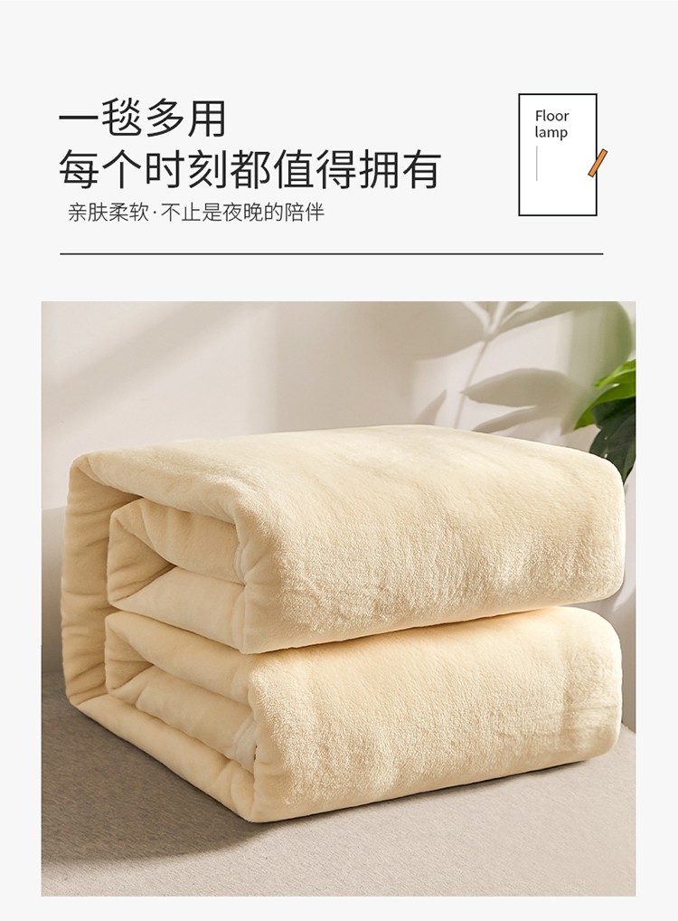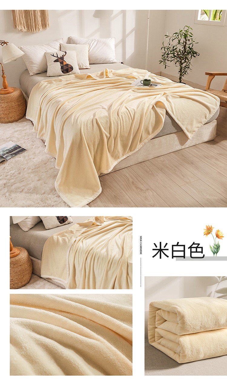 雅萱云貂绒毛毯法兰绒毛毯珊瑚绒毛毯午睡毯法莱绒床单盖毯米白色