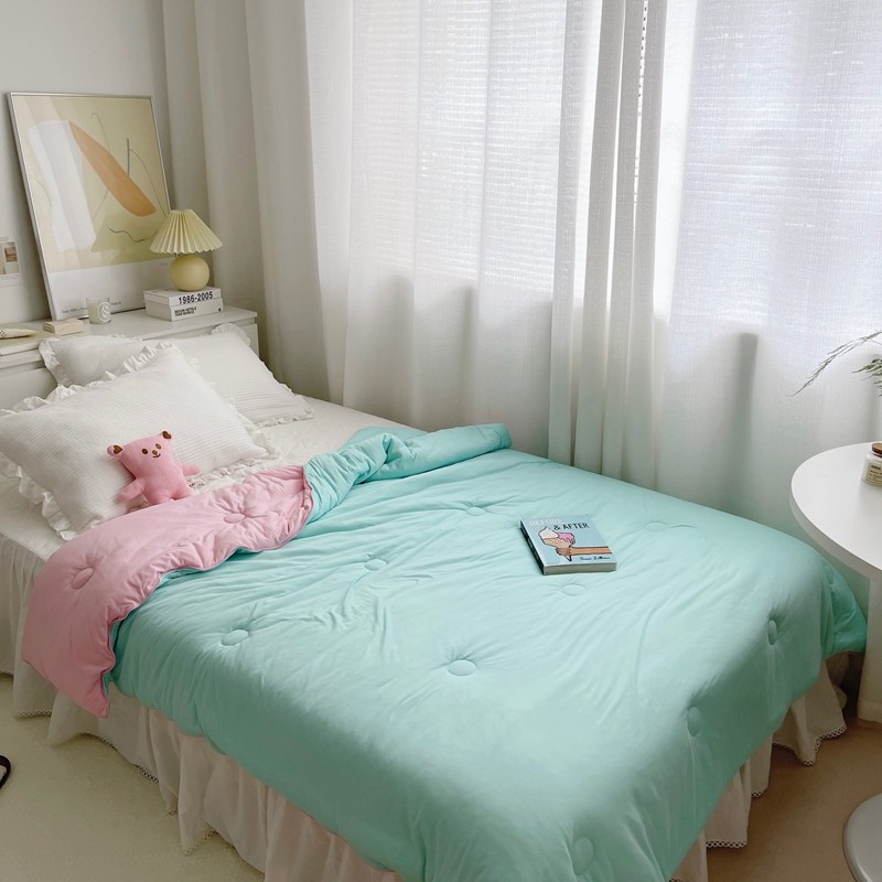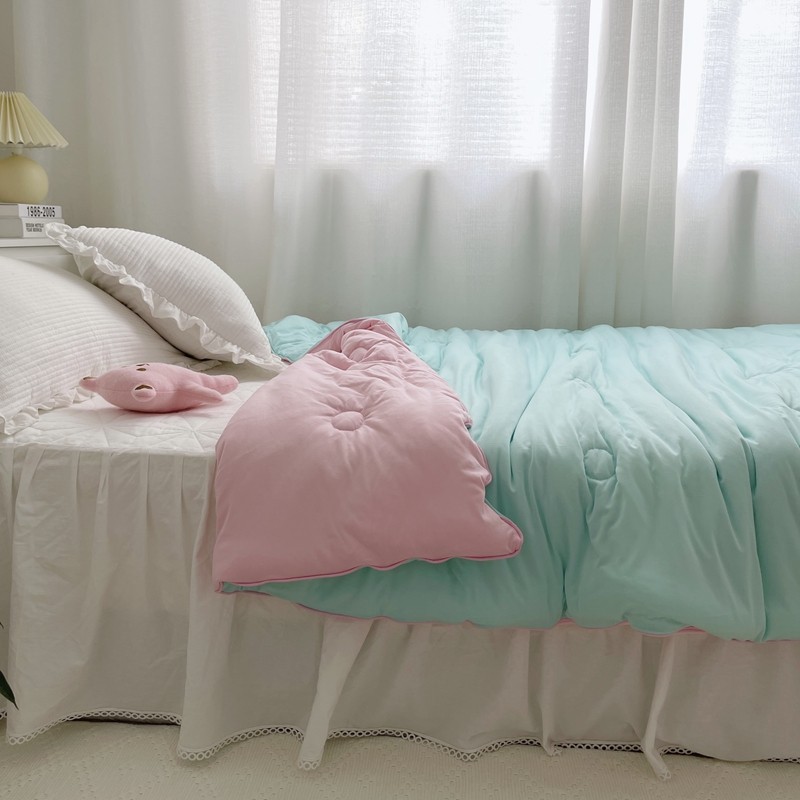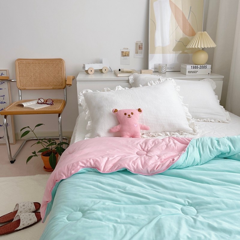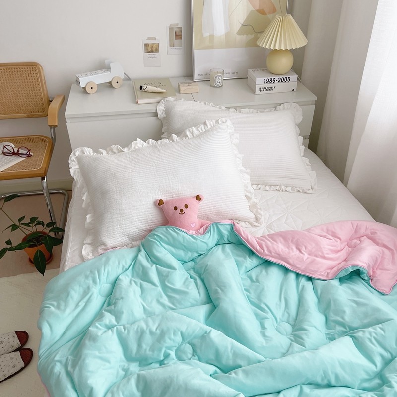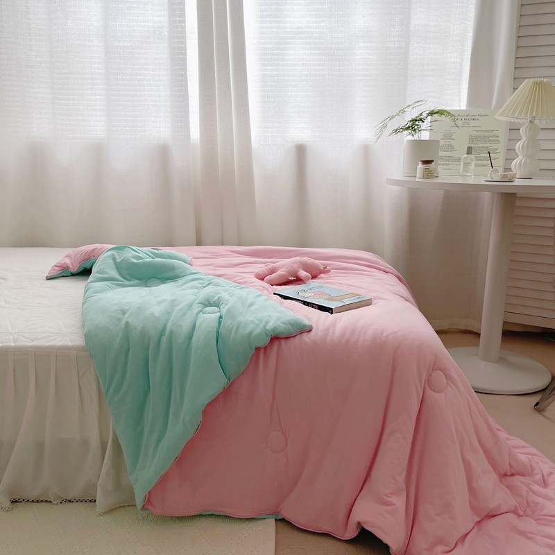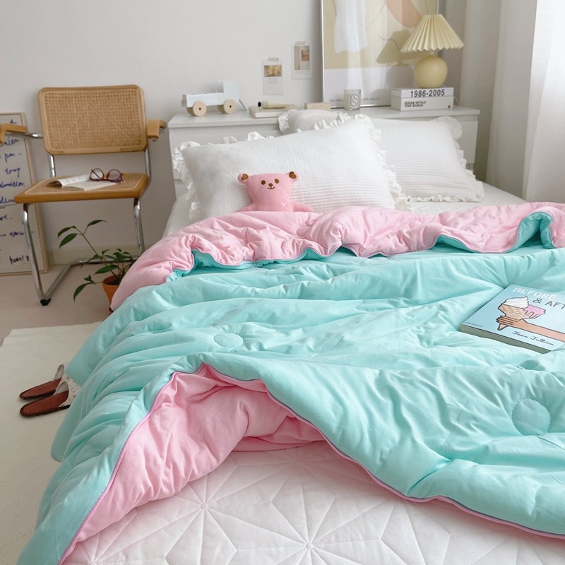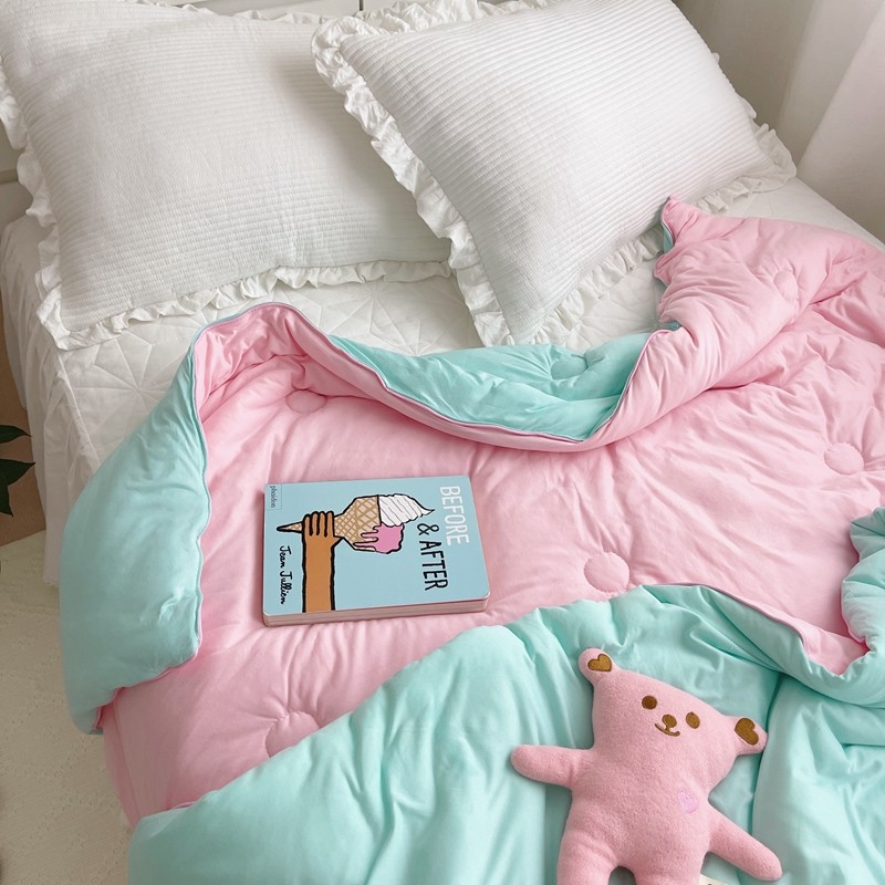 星期八 2021新款马卡龙大豆针织春秋被冬被 绿粉