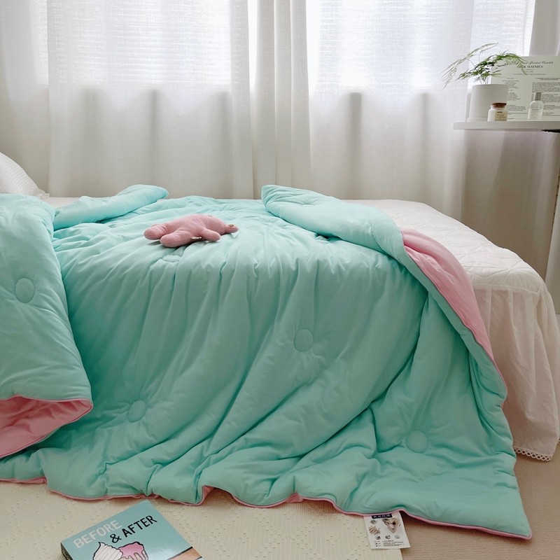 商品名称:星期八 2021新款马卡龙大豆针织春秋被冬被 绿粉