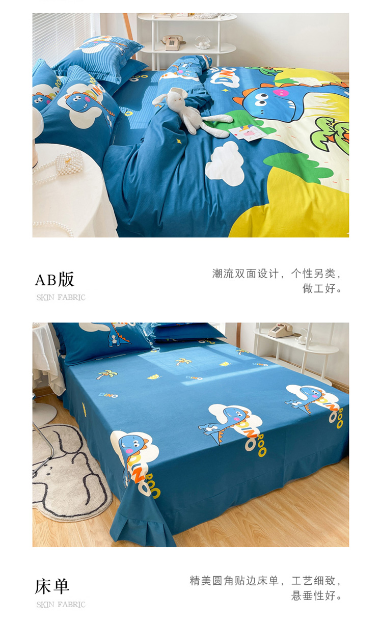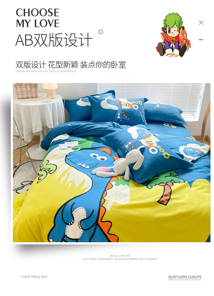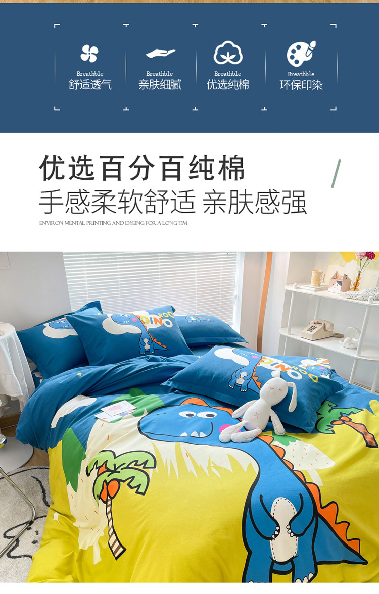 当前位置: 91家纺网 > 商品网购 > 床品套件 > 四件套 > 普通磨毛四件套 > 金爱家 2021新款大版磨毛卡通系列四件套 恐龙森林