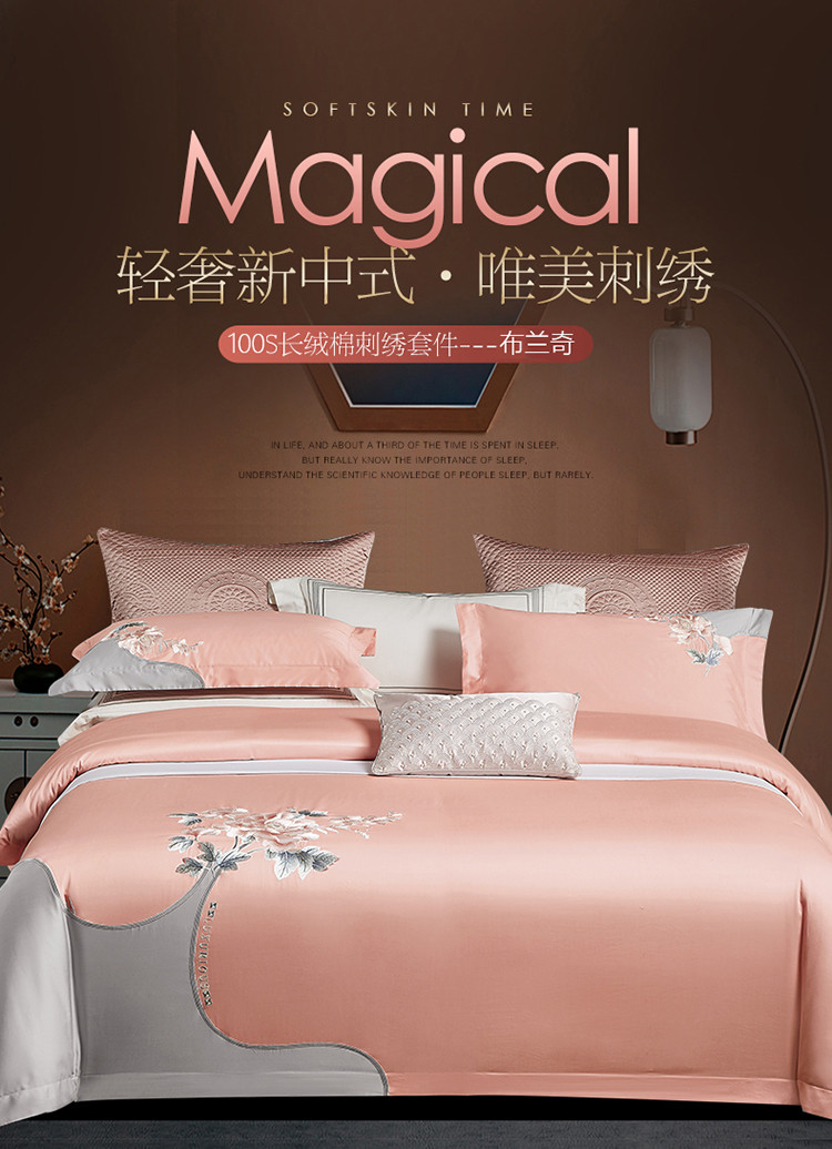 (总)诗黛尔 2025秋冬新款长绒棉刺绣风生水起系列四件套,风生水起-落樱粉,风生水起-南瓜橘,风生水起-绅士灰,风生水起-水晶兰,风生水起-香槟金,风生水起-油果绿