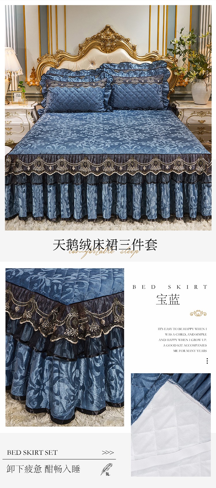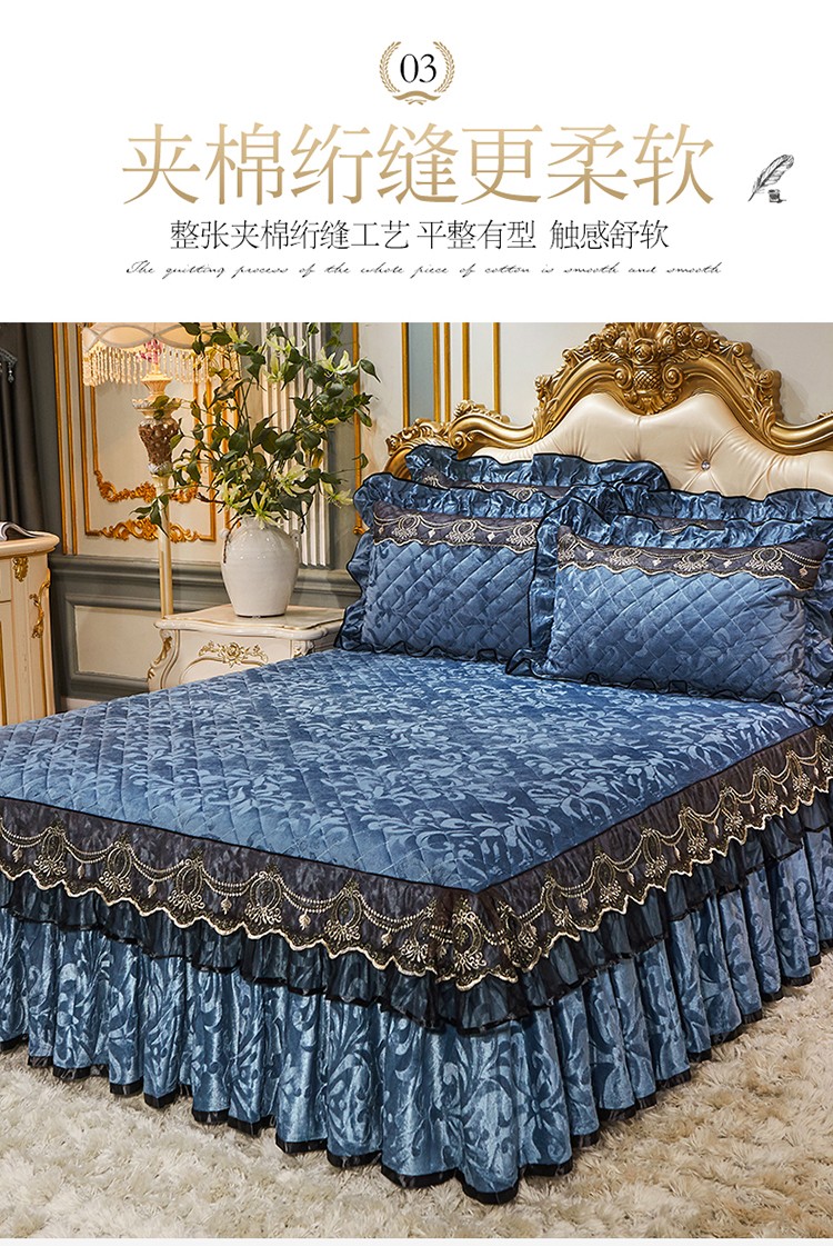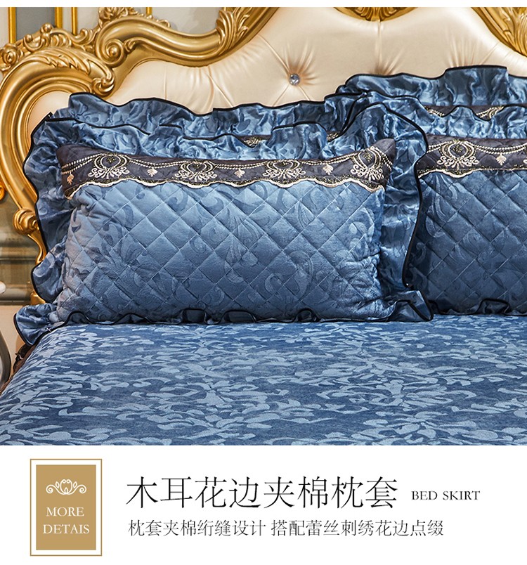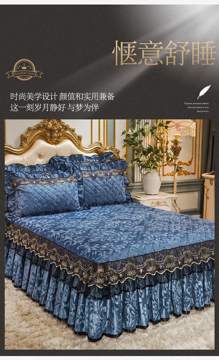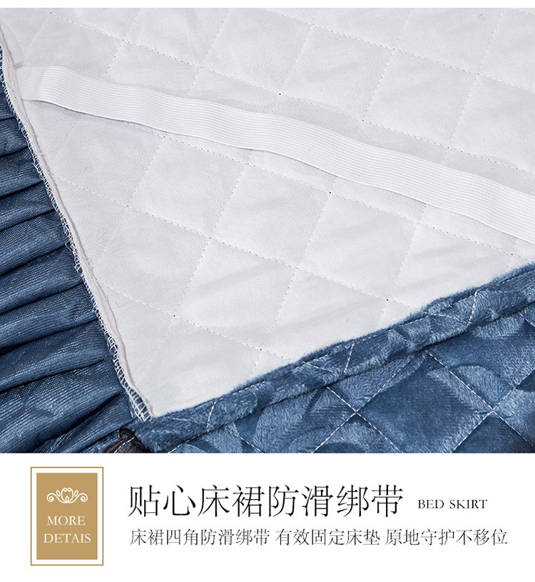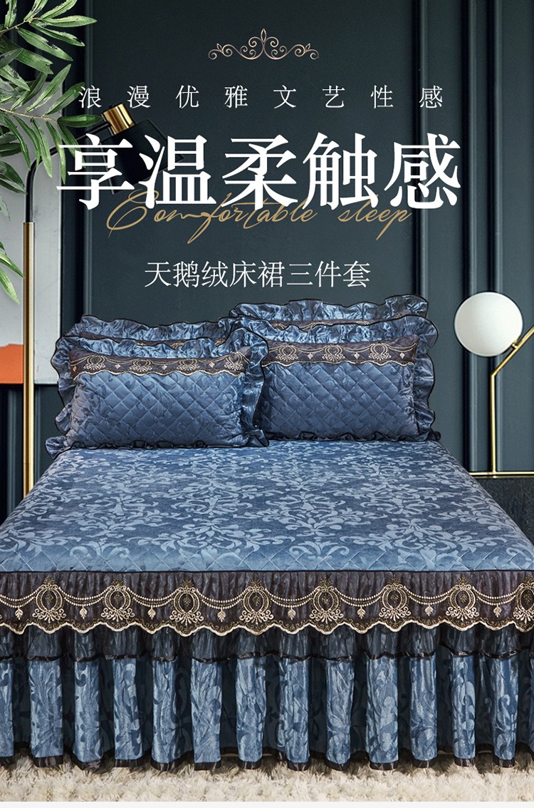 网红馆 2025新款梦庭花开天鹅绒单品床裙被套枕套 宝蓝