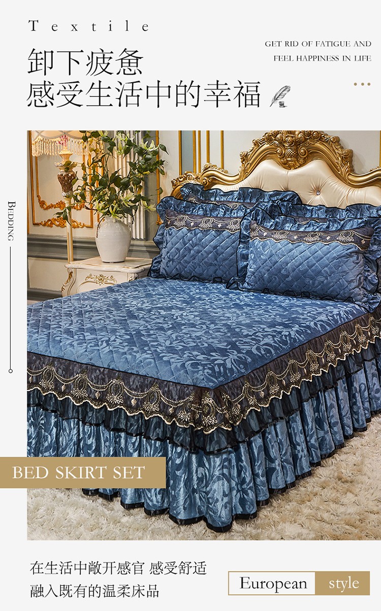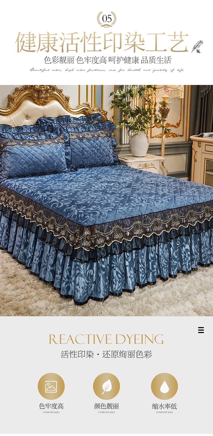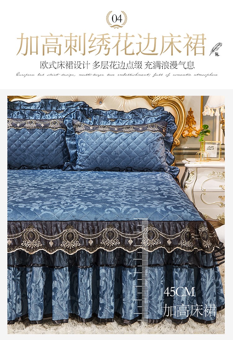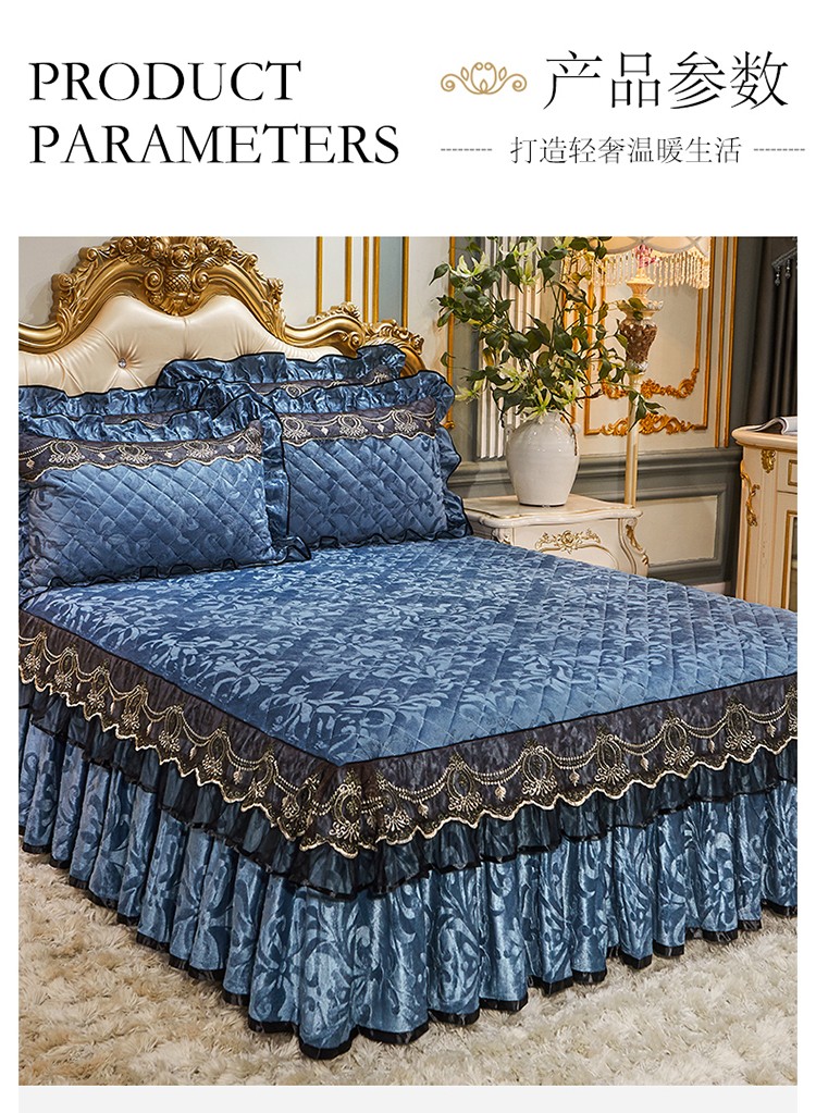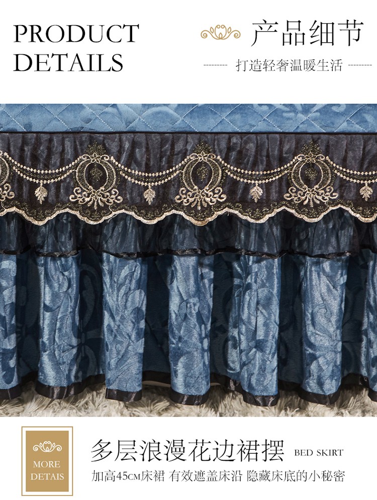 • 91家纺网 家纺一手货源 找家纺 (总)网红馆(ck家纺) 2026新款色织蕾丝边床裙款床笠,宝石蓝,黛绿色,浪漫紫,奶茶色,石青,香妃粉,烟熏灰