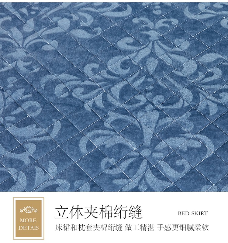 • 91家纺网 家纺一手货源 找家纺 网红馆 2025新款梦庭花开天鹅绒单品床裙被套枕套 宝蓝