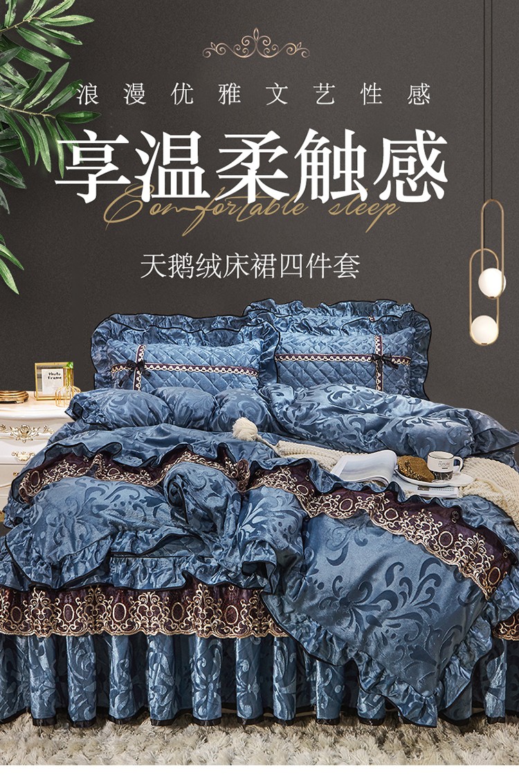 商品名称:网红馆 2025新款梦醉奢华天鹅绒床裙四件套 蝴蝶结款-宝蓝