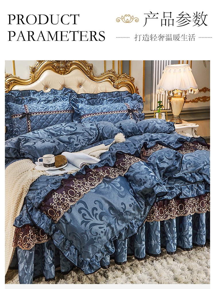 (总)网红馆(ck家纺) 2025新款色织提花牛奶绒床裙四件套-洛丽塔系列,洛丽塔-豆沙,洛丽塔-蓝色,洛丽塔-米色