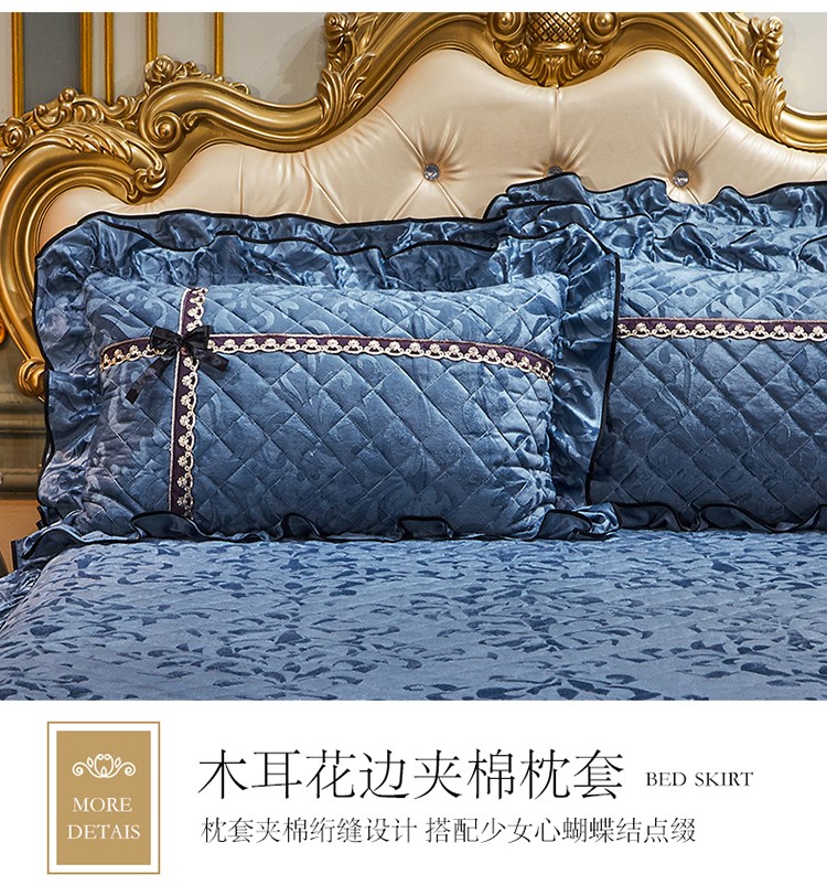 网红馆 2025新款梦醉奢华天鹅绒床裙四件套 蝴蝶结款-宝蓝