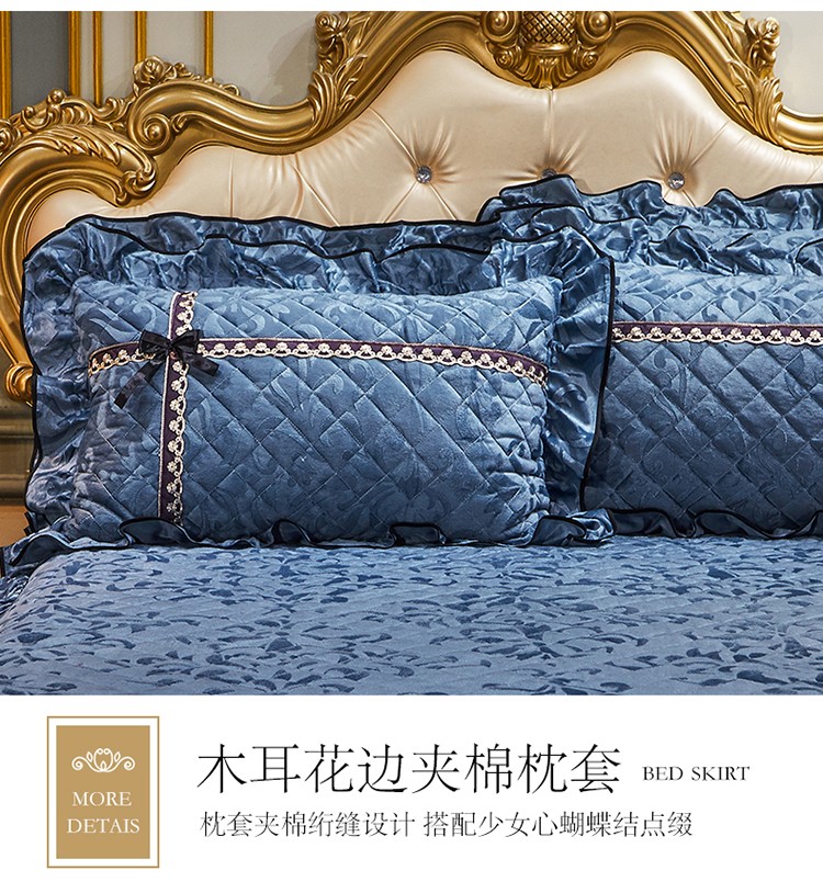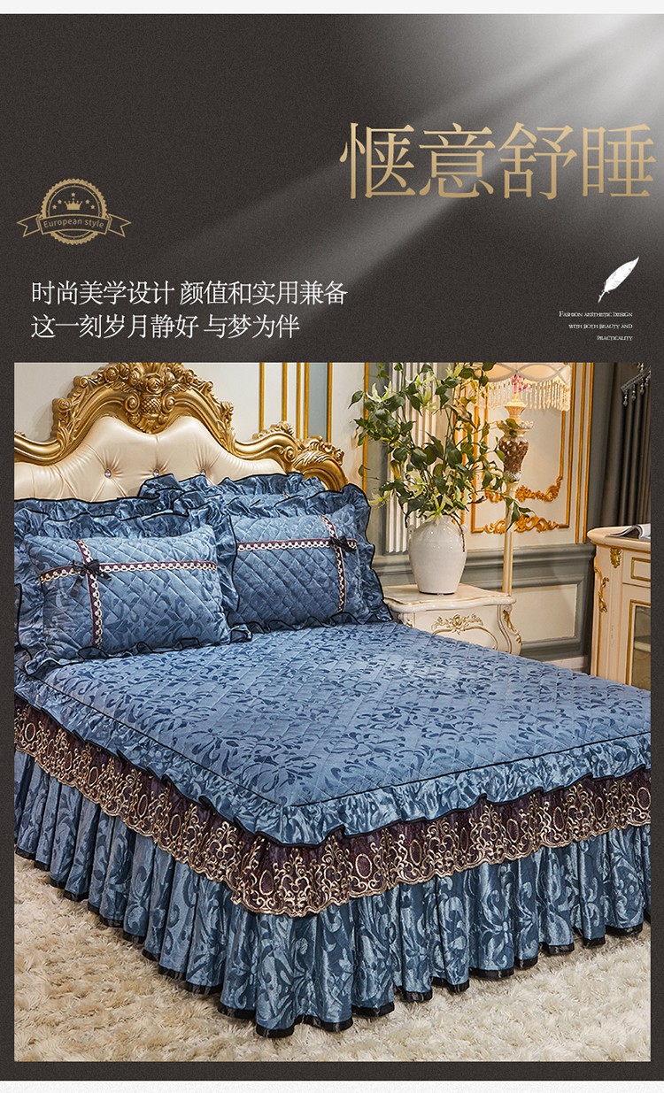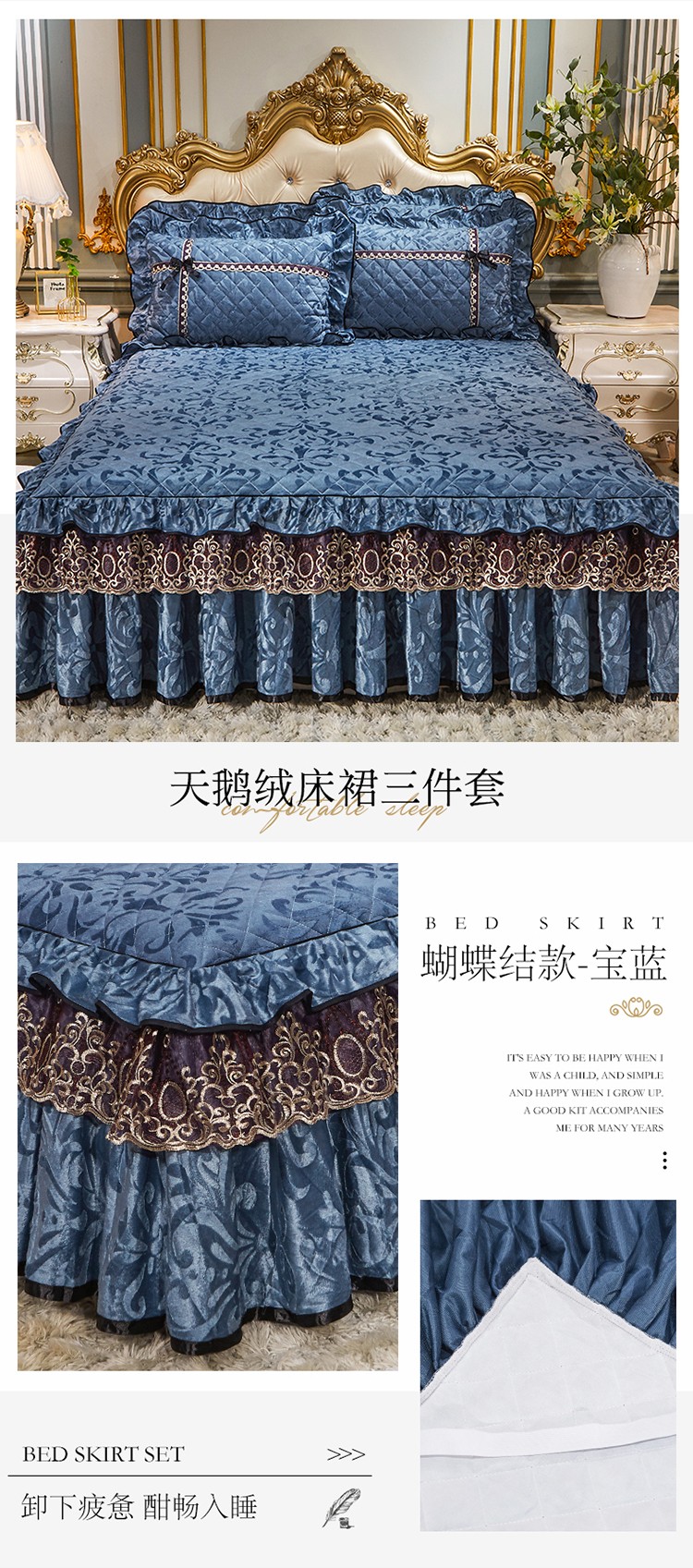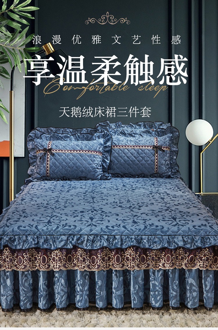 • 91家纺网 家纺一手货源 找家纺 网红馆2025新款梦醉奢华天鹅绒单品床裙被套枕套蝴蝶结款宝蓝