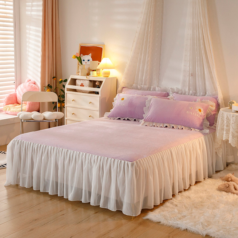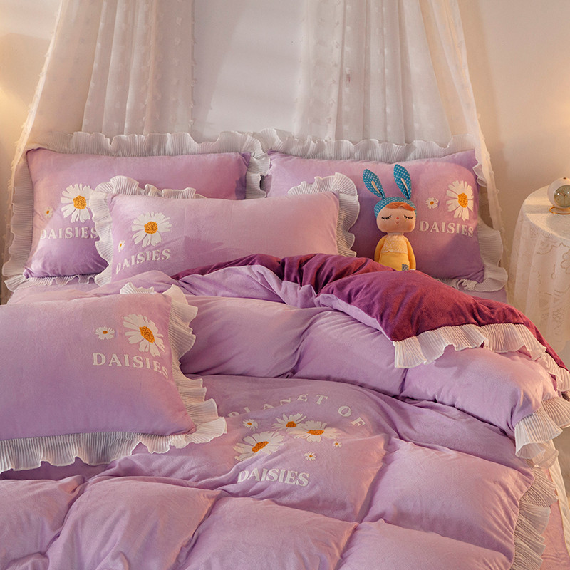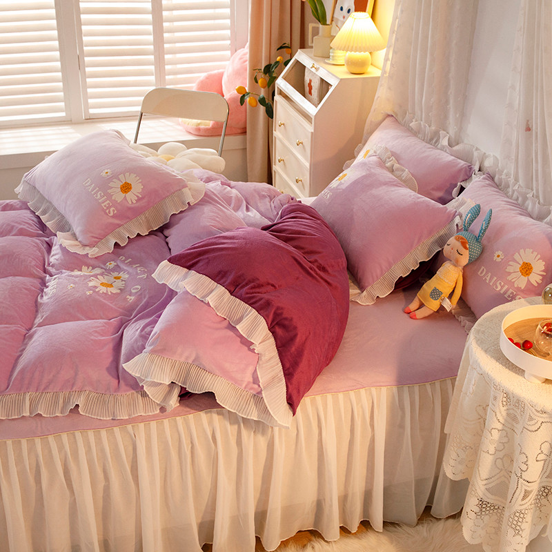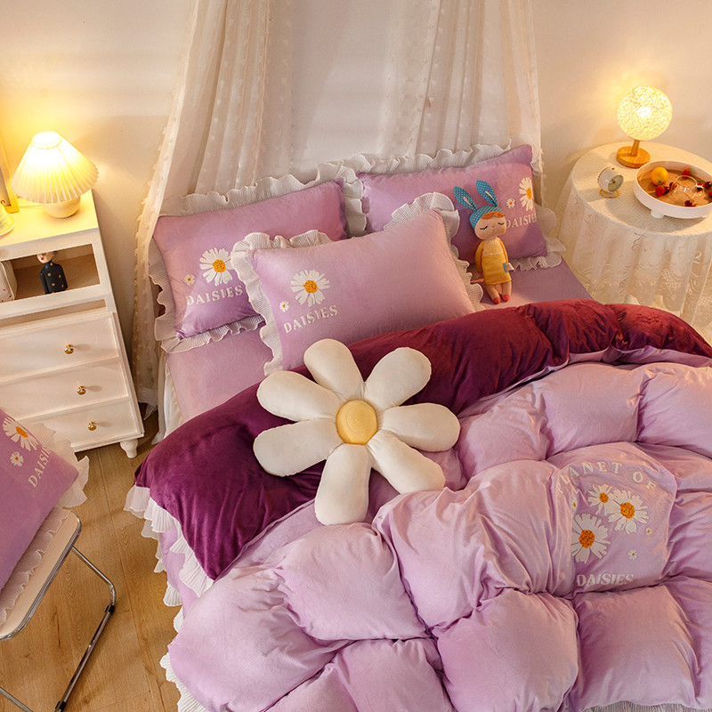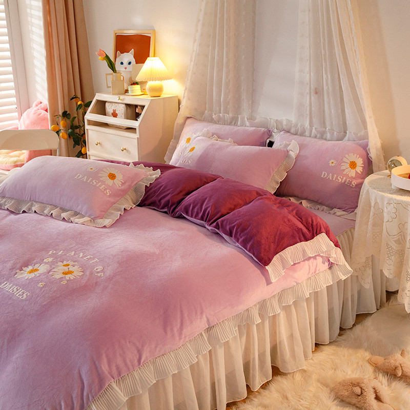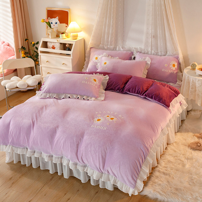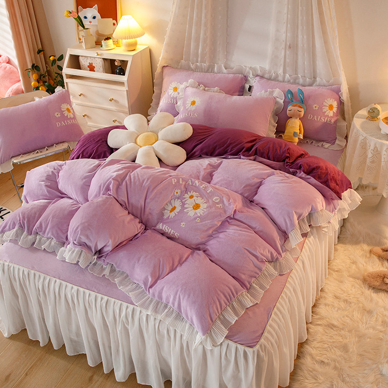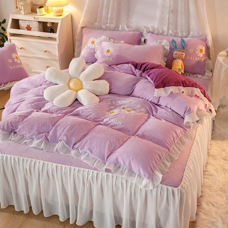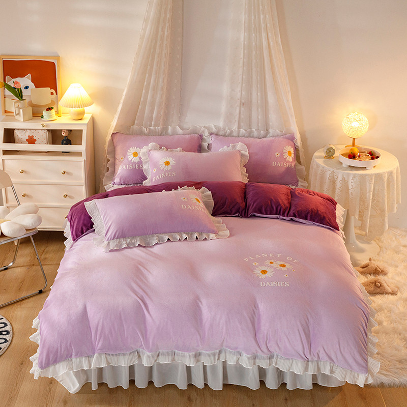 纽缦 2021新款韩版水晶绒床裙四件套 雏菊-深浅紫