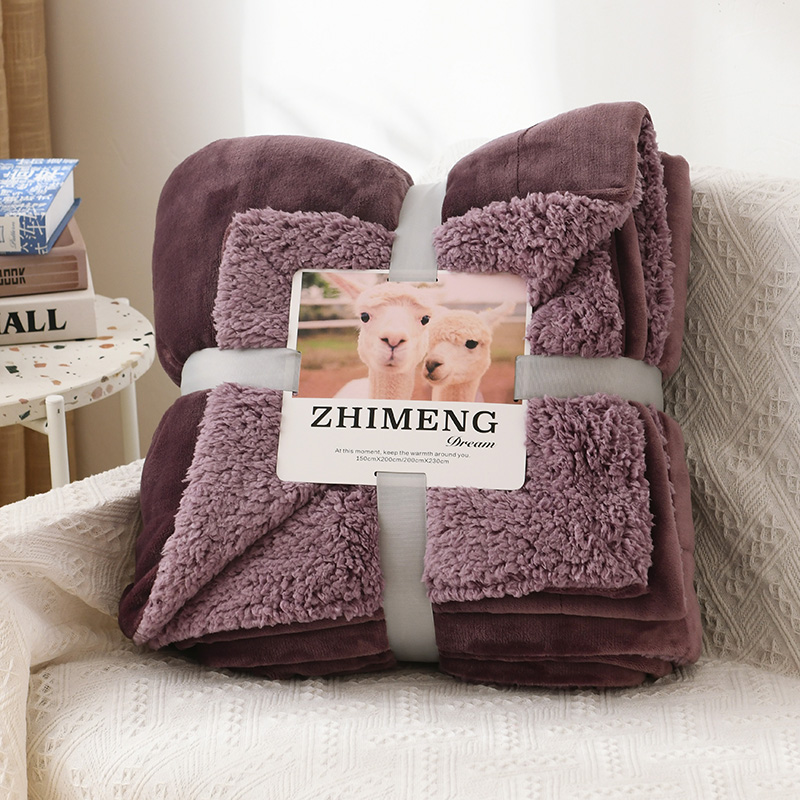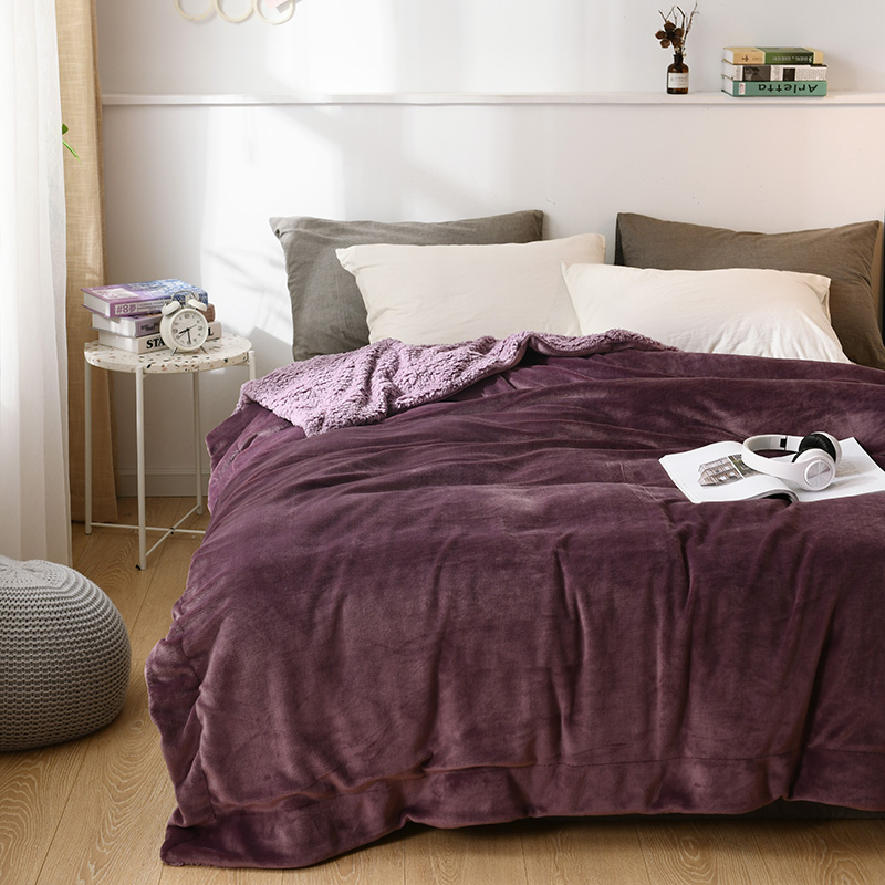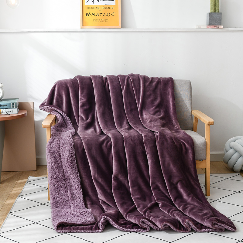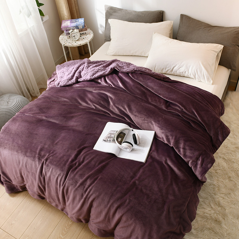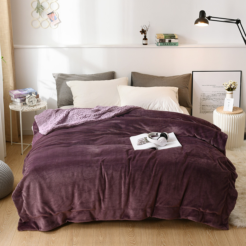 (总)外贸跨境羊羔绒毛毯冬季双层加厚盖毯会销礼品法兰绒毯子,暗紫色,豆沙,海蓝,灰色,酒红,军绿,咖啡,抹茶绿,浅紫,深灰,深蓝,深紫,驼色