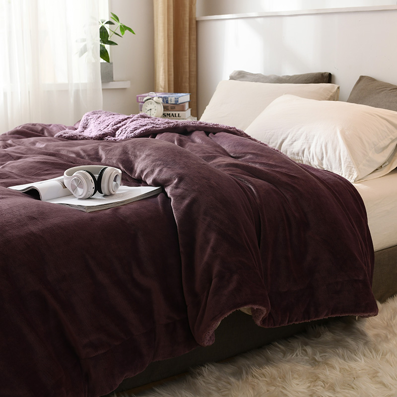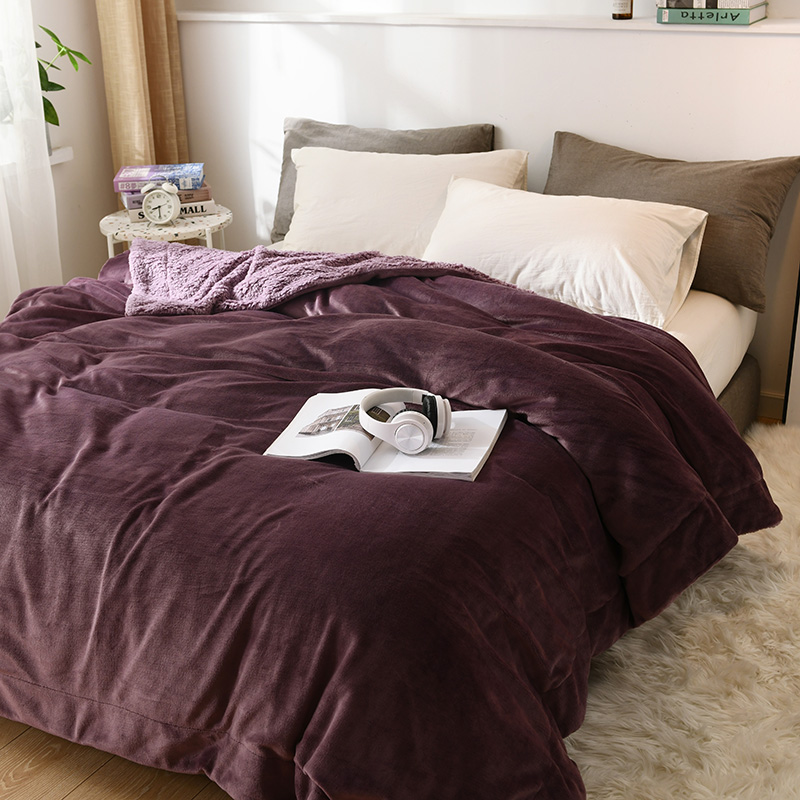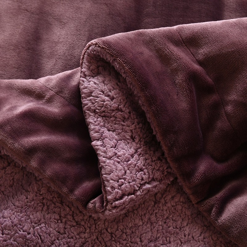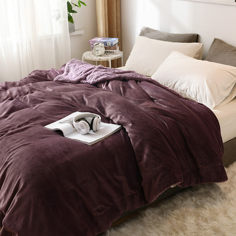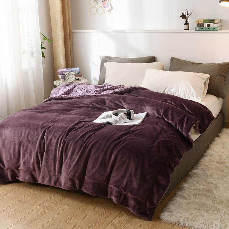 (总)外贸跨境羊羔绒毛毯冬季双层加厚盖毯会销礼品法兰绒毯子,暗紫色,豆沙,海蓝,灰色,酒红,军绿,咖啡,抹茶绿,浅紫,深灰,深蓝,深紫,驼色