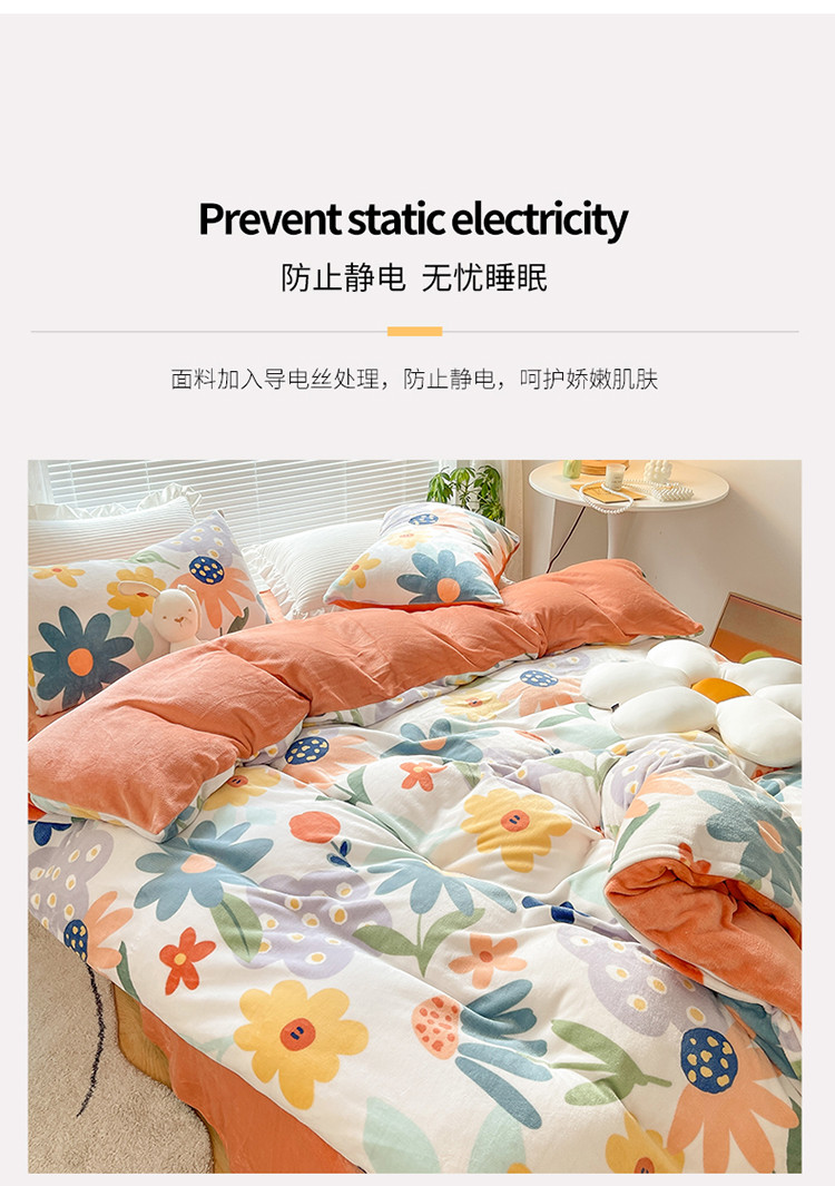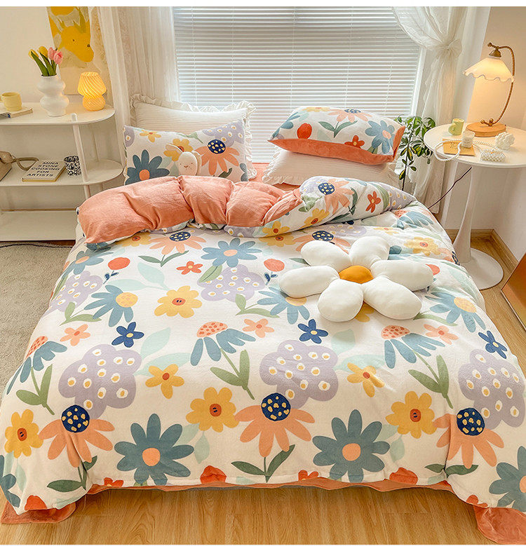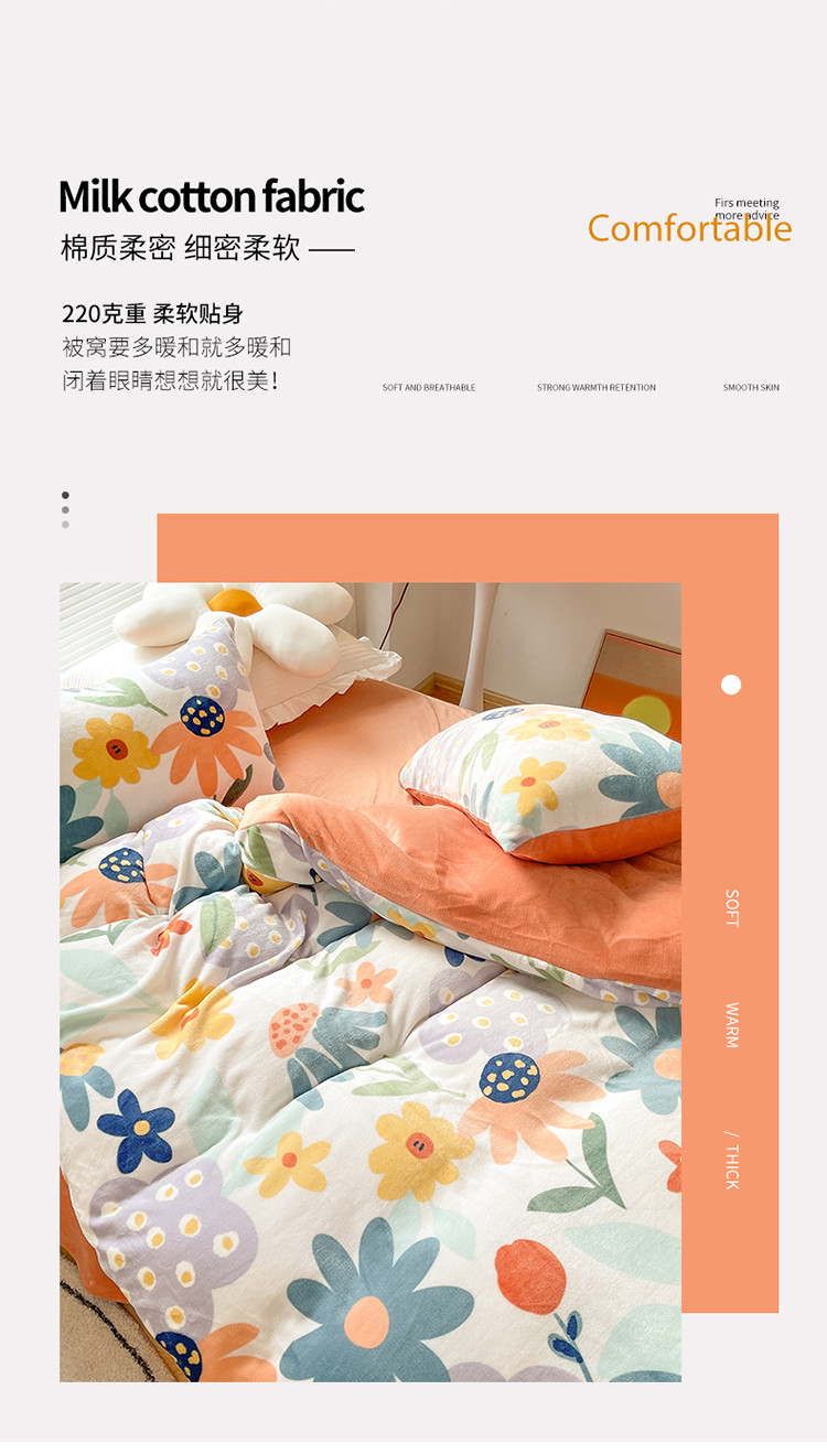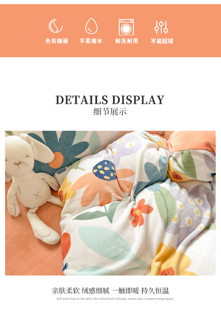 商品名称:安哆啦 2021新款220g牛奶绒简约款四件套 花海