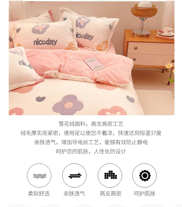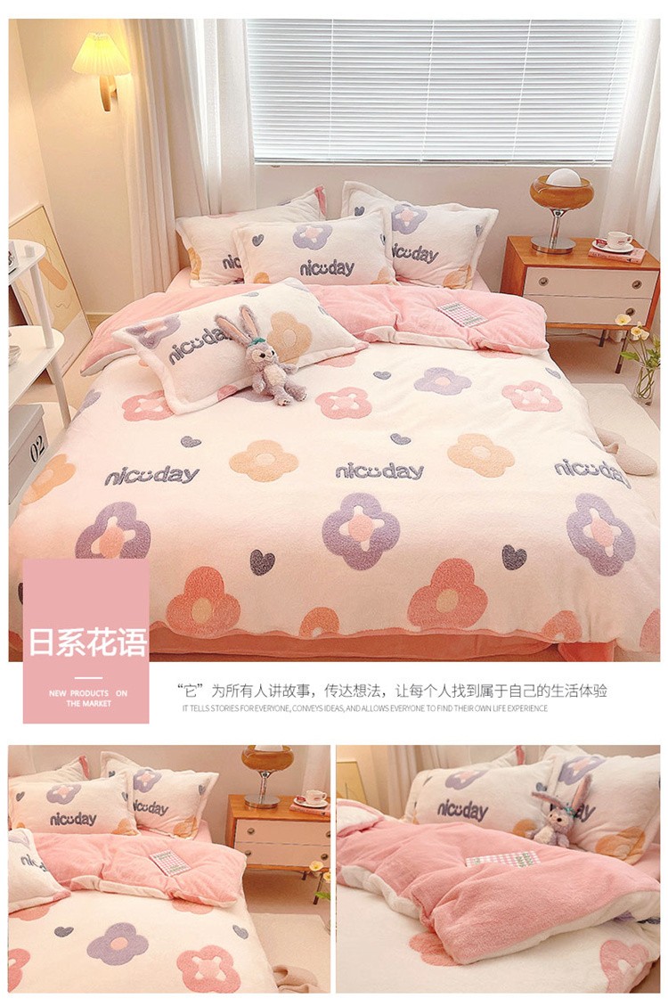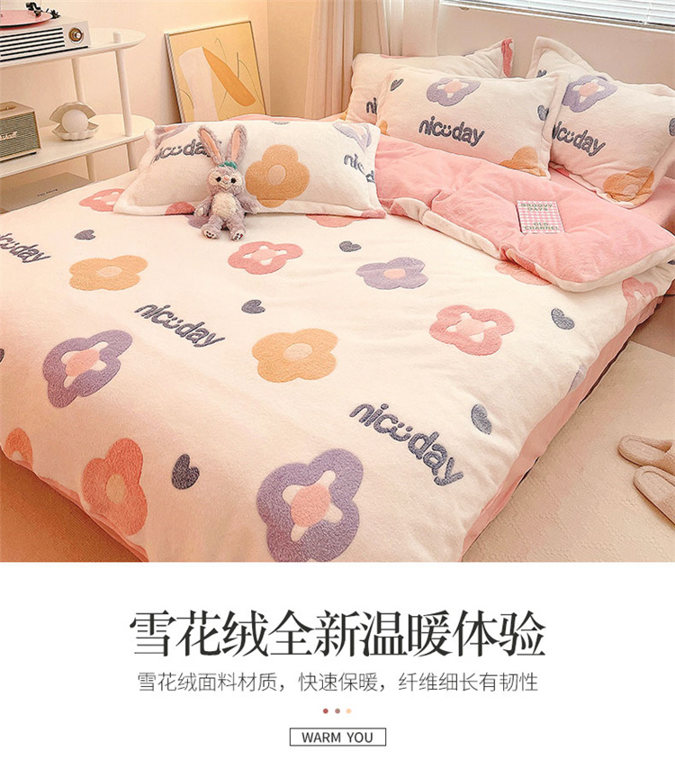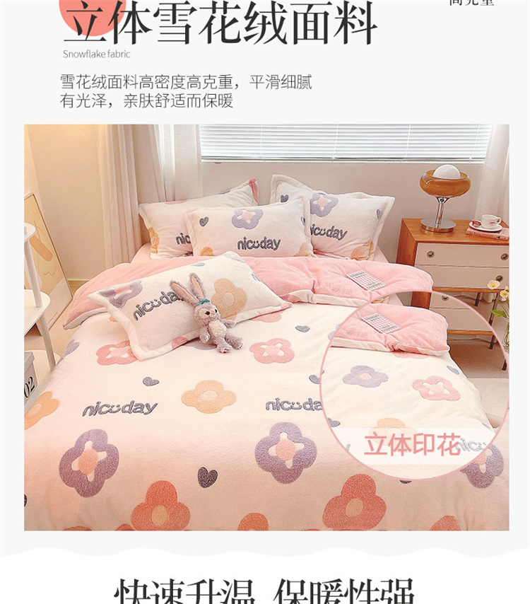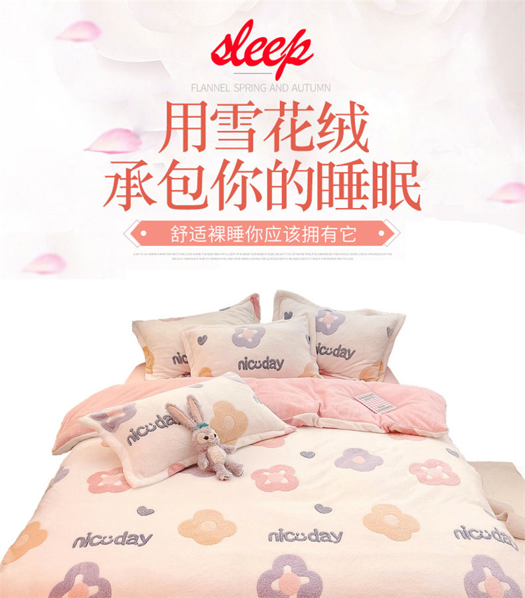 当前位置: 91家纺网 > 商品网购 > 床品套件 > 四件套 > 磨绒四件套 > 川悦生活 2021新款立体雪花绒四件套直播供货 日系花语