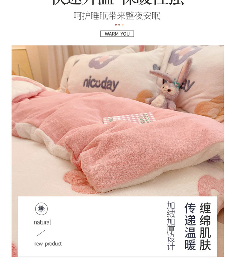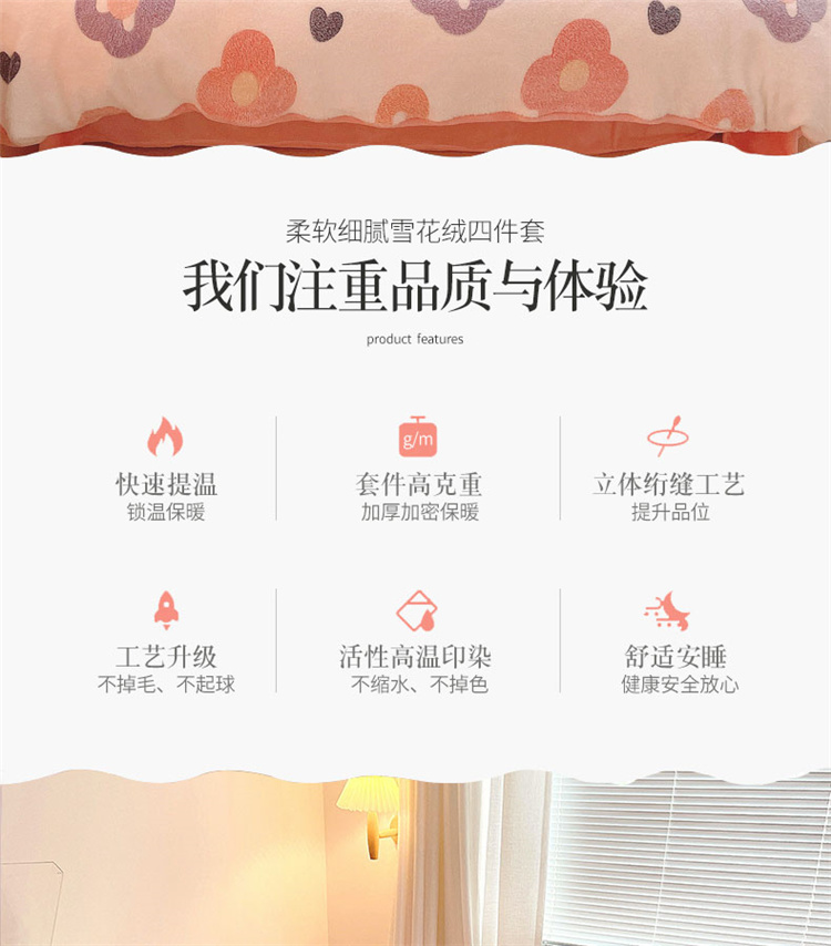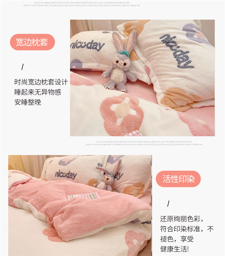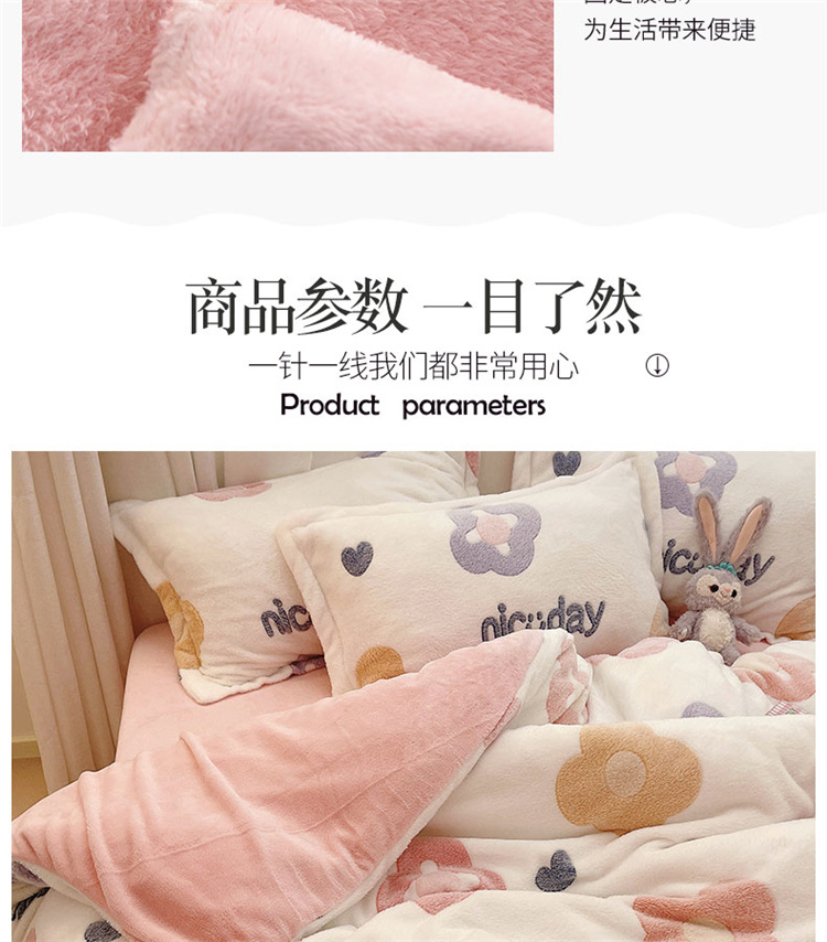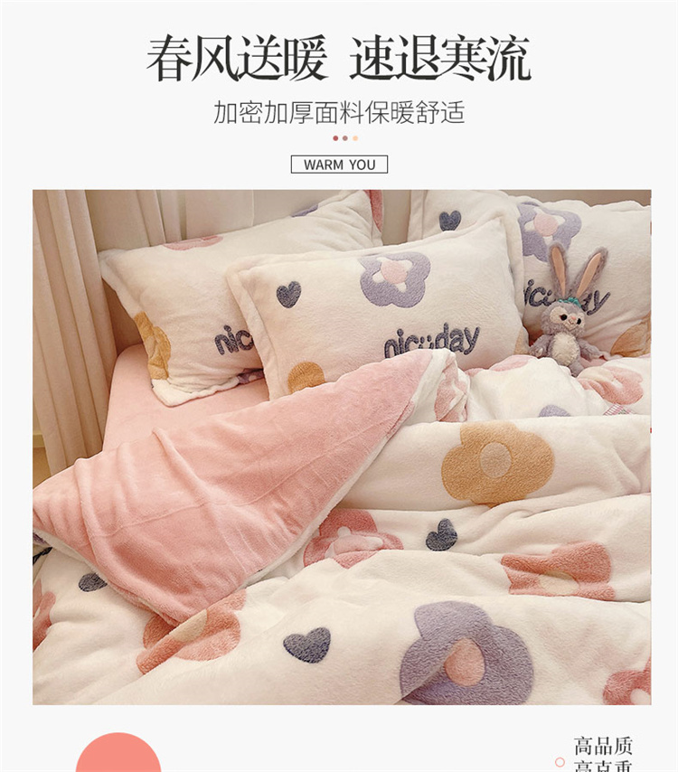 当前位置: 91家纺网 > 商品网购 > 床品套件 > 四件套 > 磨绒四件套 > 川悦生活 2021新款立体雪花绒四件套直播供货 日系花语