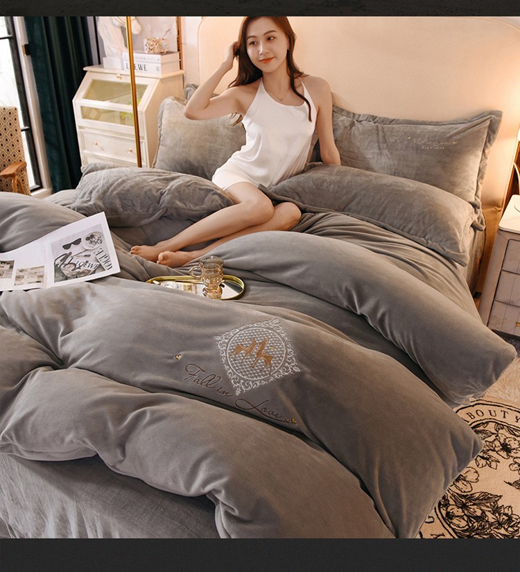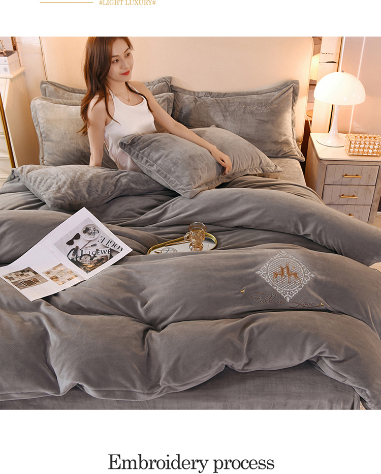 寐居 2021高克重牛奶绒宝宝绒刺绣四件套 麋鹿-太空灰