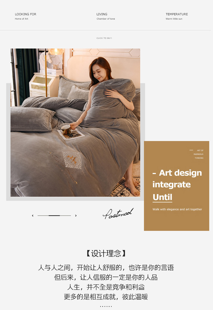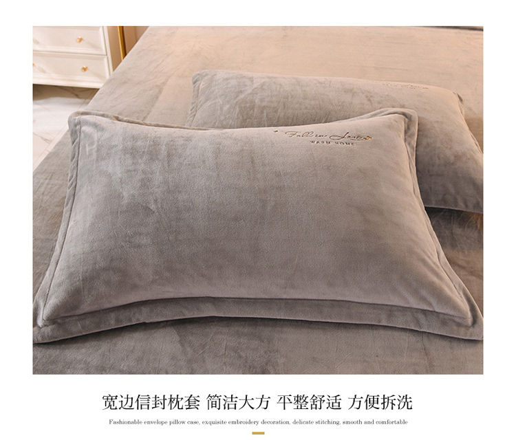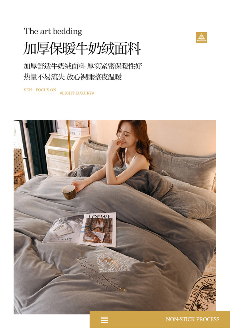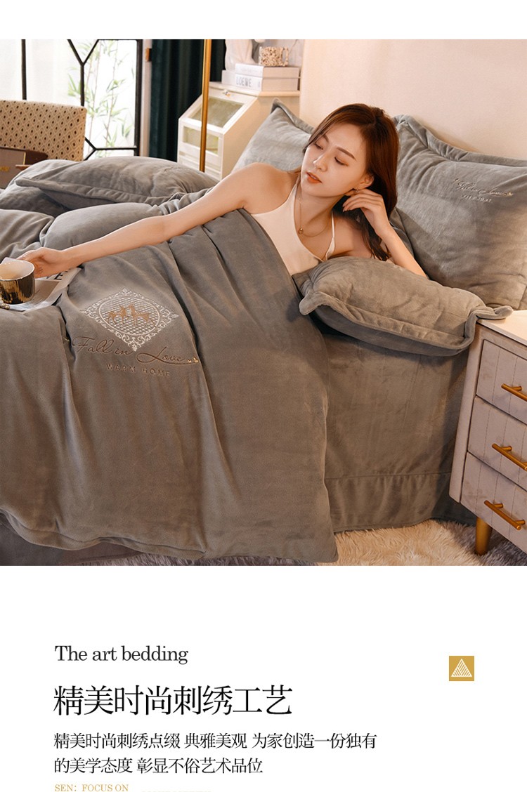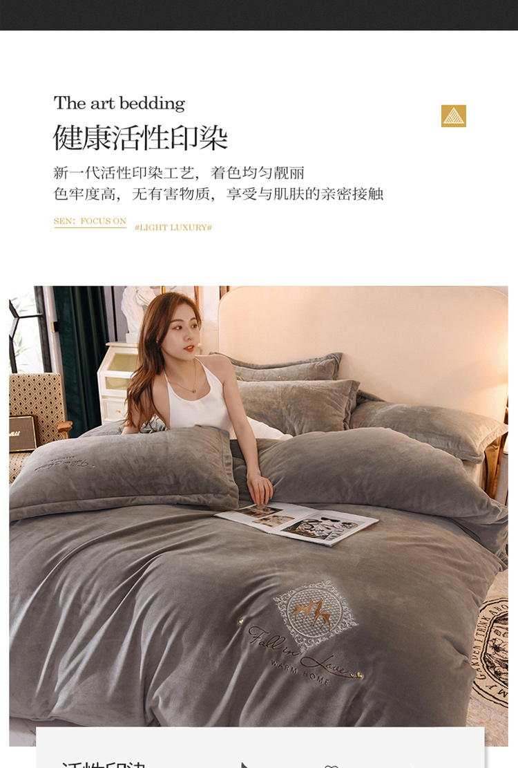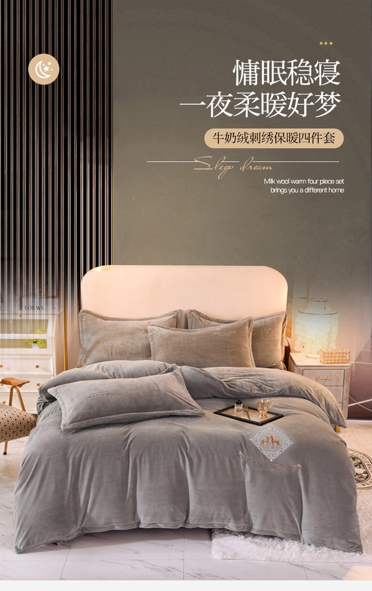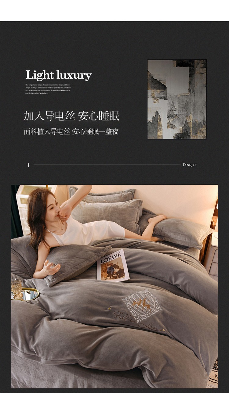 商品名称:寐居 2021高克重牛奶绒宝宝绒刺绣四件套 麋鹿-太空灰