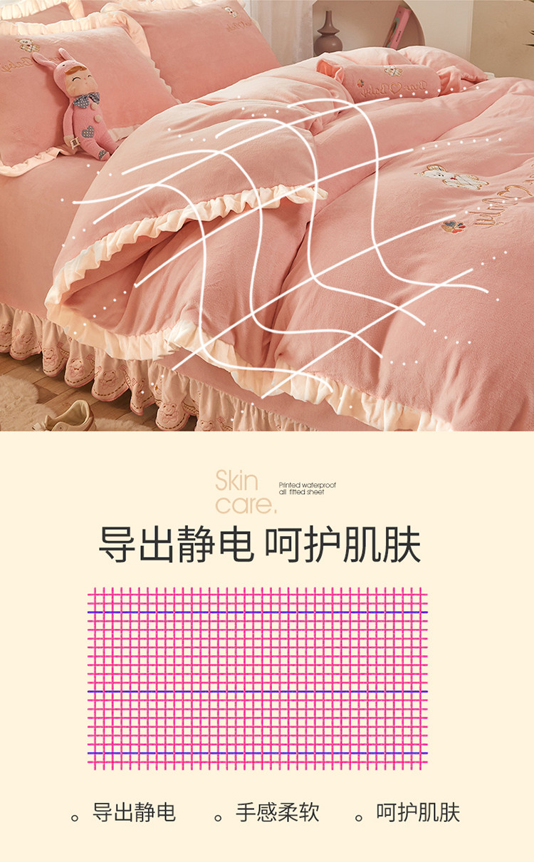 (总)宜凡家纺 2025新款兔绒提花牛奶绒夹棉床裙四件套,爱心 少女粉,爱心 粉紫,爱心 驼色,蝶舞 大红,蝶舞 米色,蝶舞 浅紫,蝶舞 玉色,简爱 苍青,简爱 豆沙紫,简爱 玉色,樱桃 苍青,樱桃 豆沙紫,樱桃 奶油白