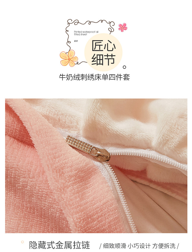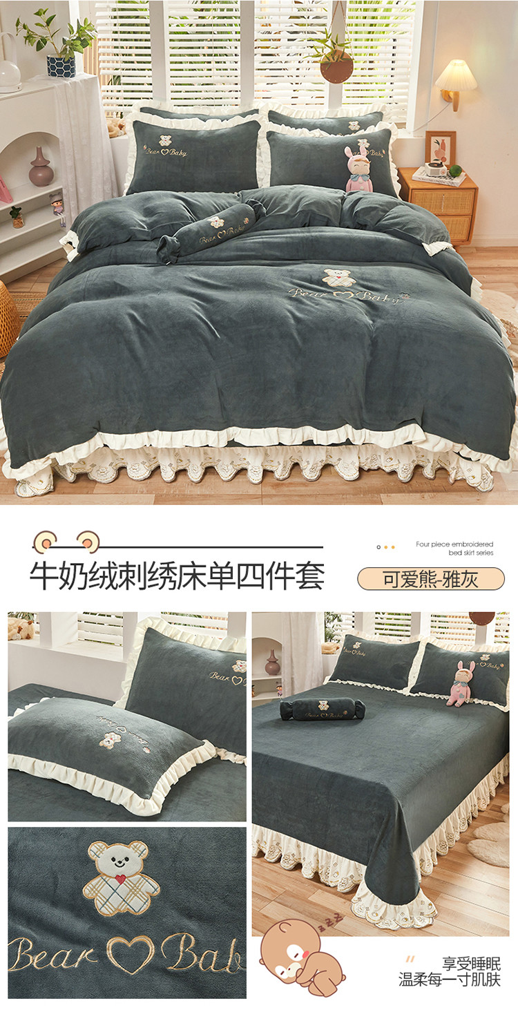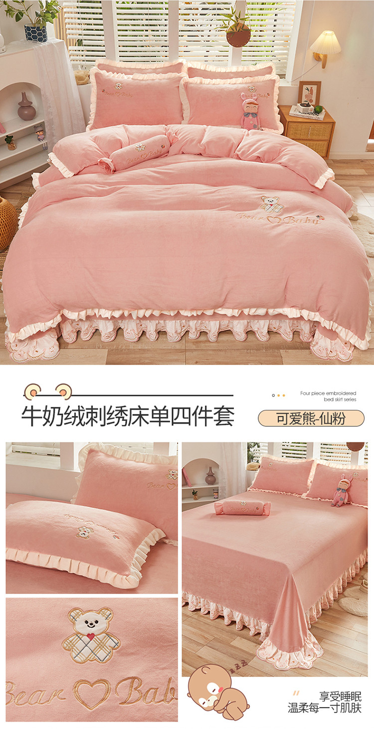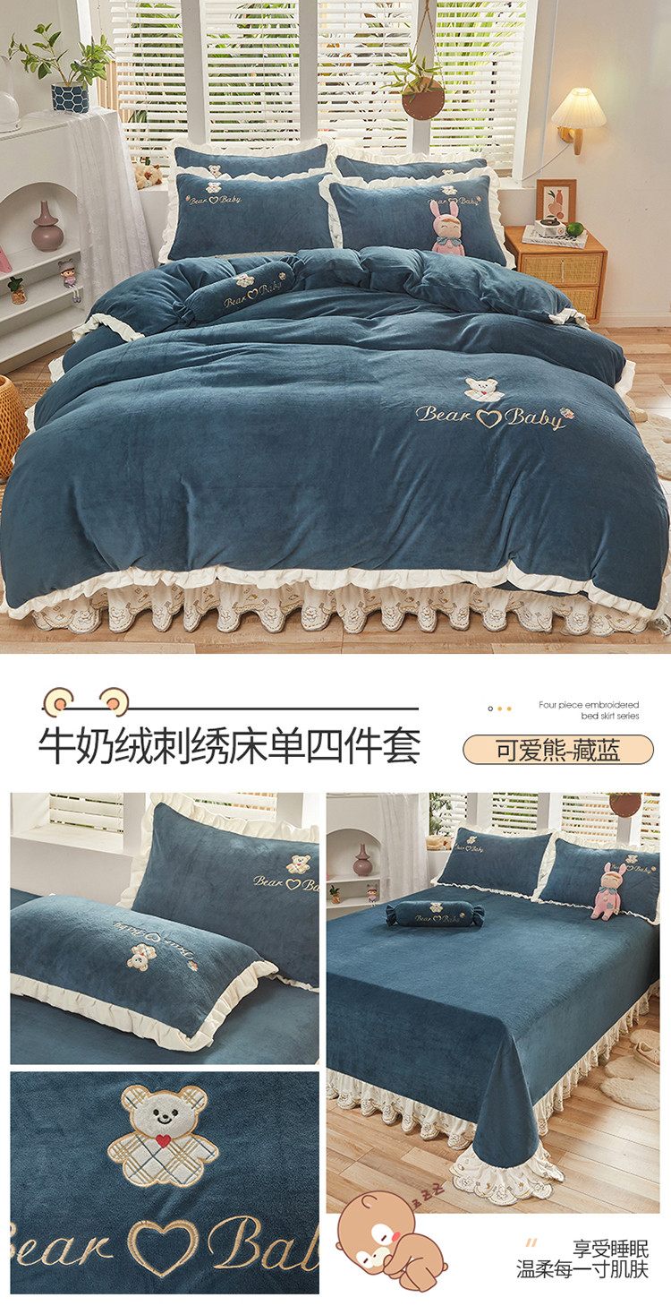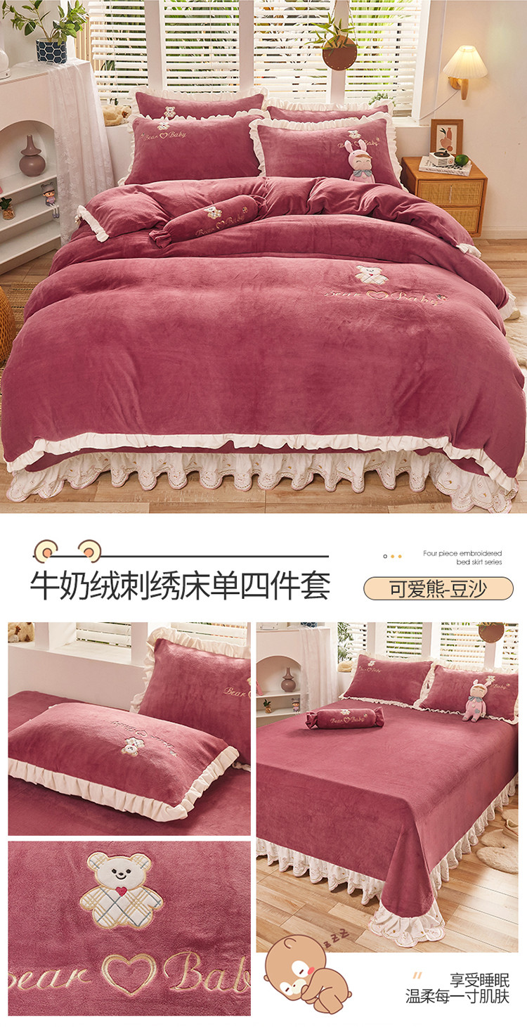 (总)宜凡家纺 2021新款牛奶绒绣花熊床单四件套