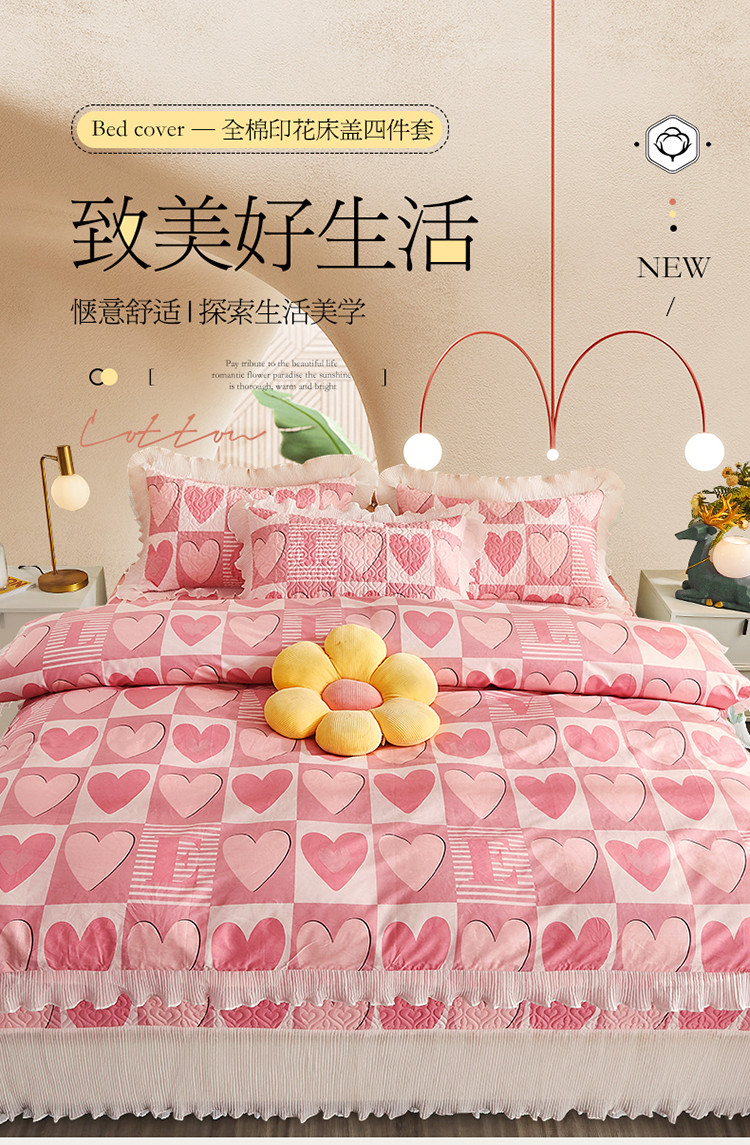 宜凡 2023新款全棉印花床盖四件套 恋爱季节