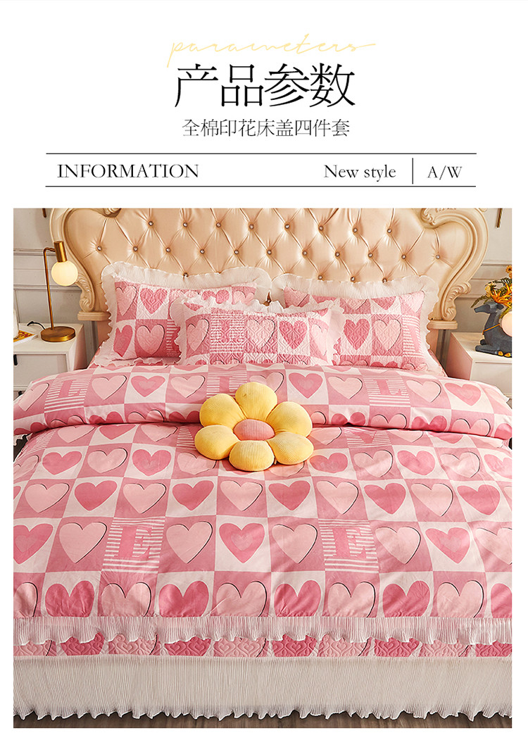 商品名称:宜凡 2023新款全棉印花床盖四件套 恋爱季节