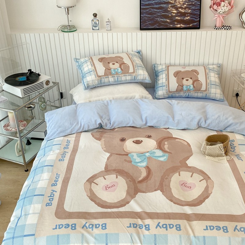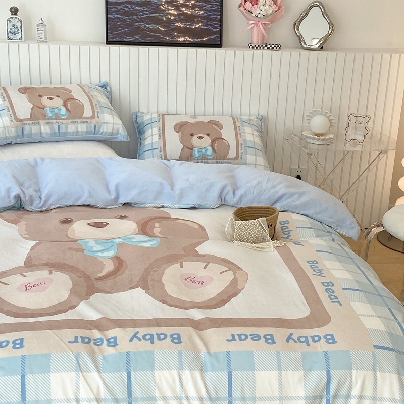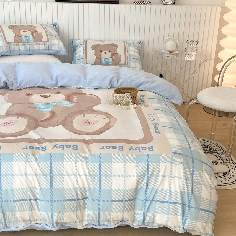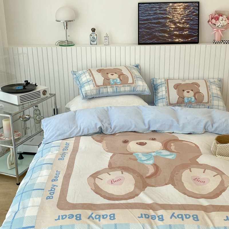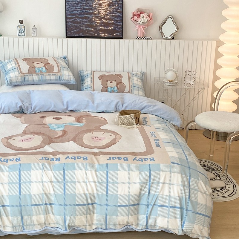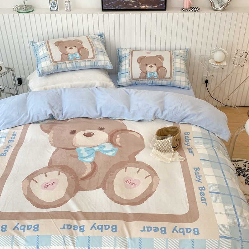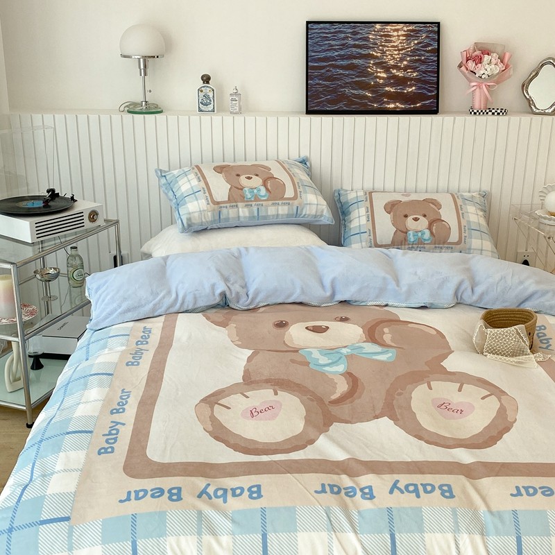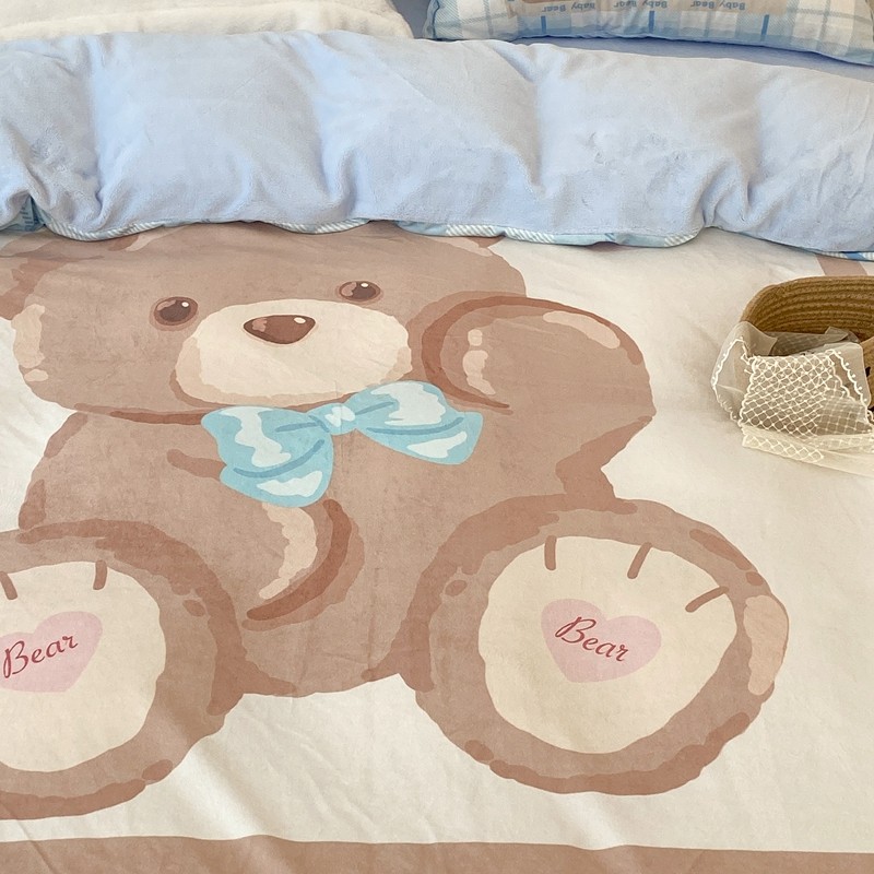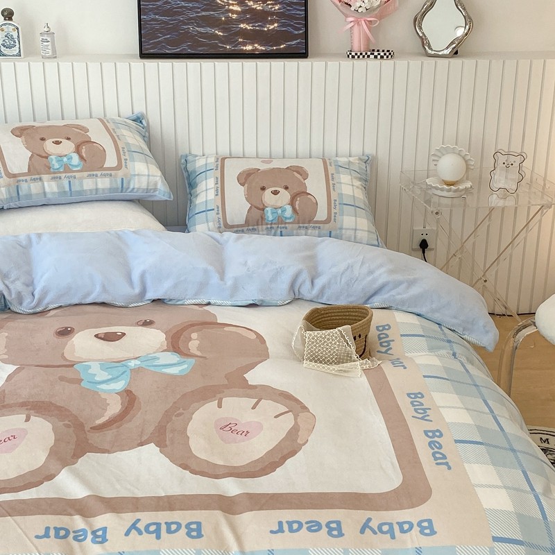 昔可家纺 2021新款大版宝宝牛奶绒四件套 可爱小熊仔