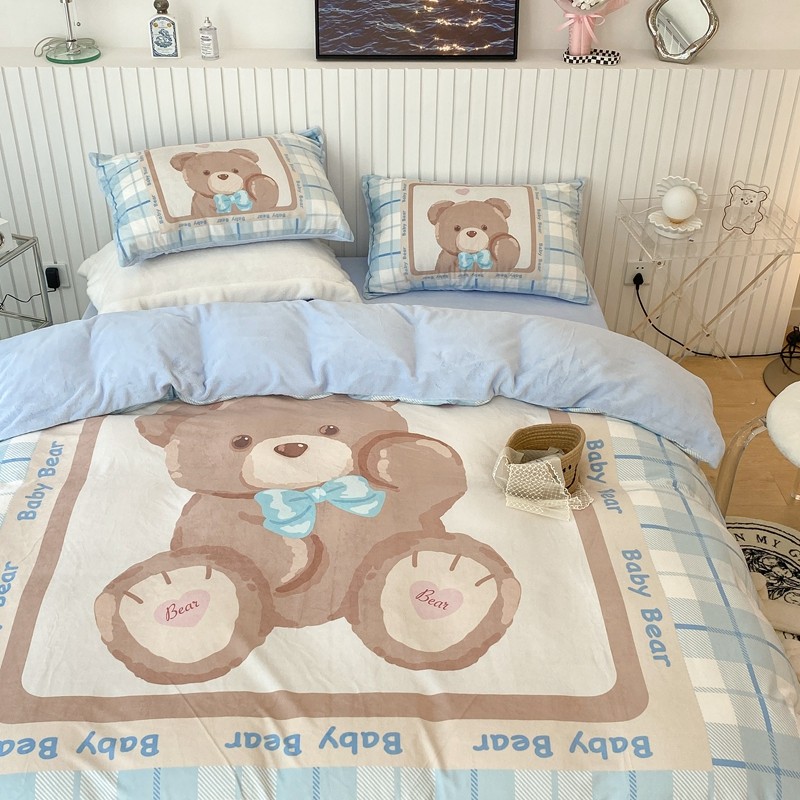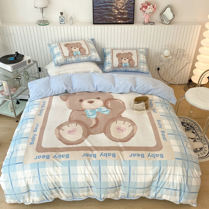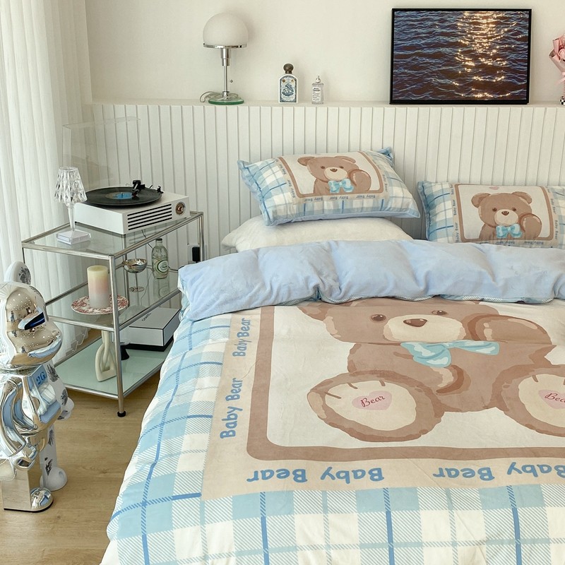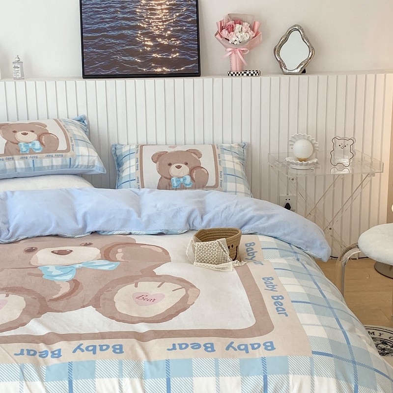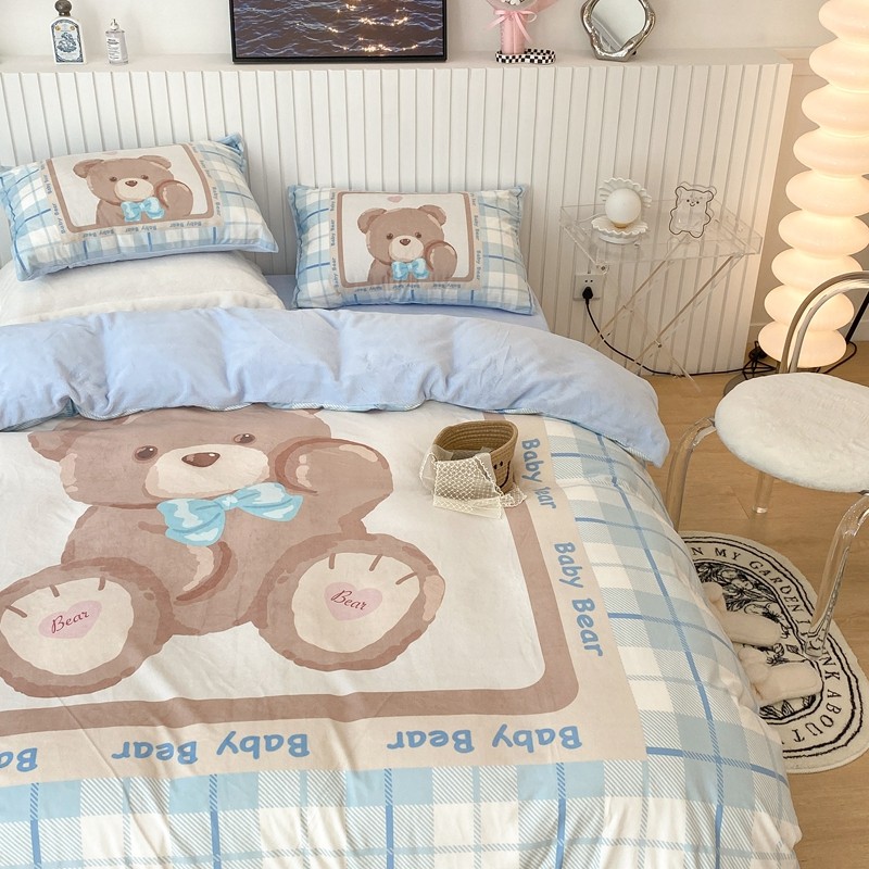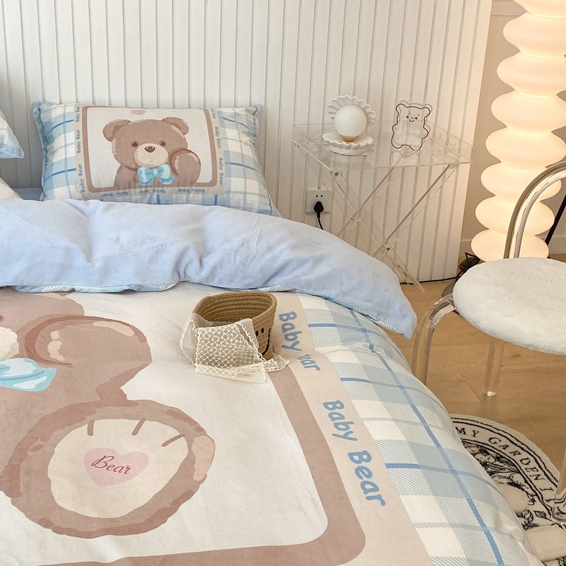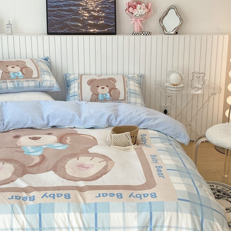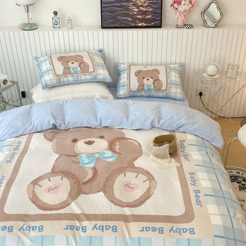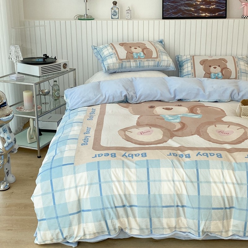 昔可家纺 2021新款大版宝宝牛奶绒四件套 可爱小熊仔