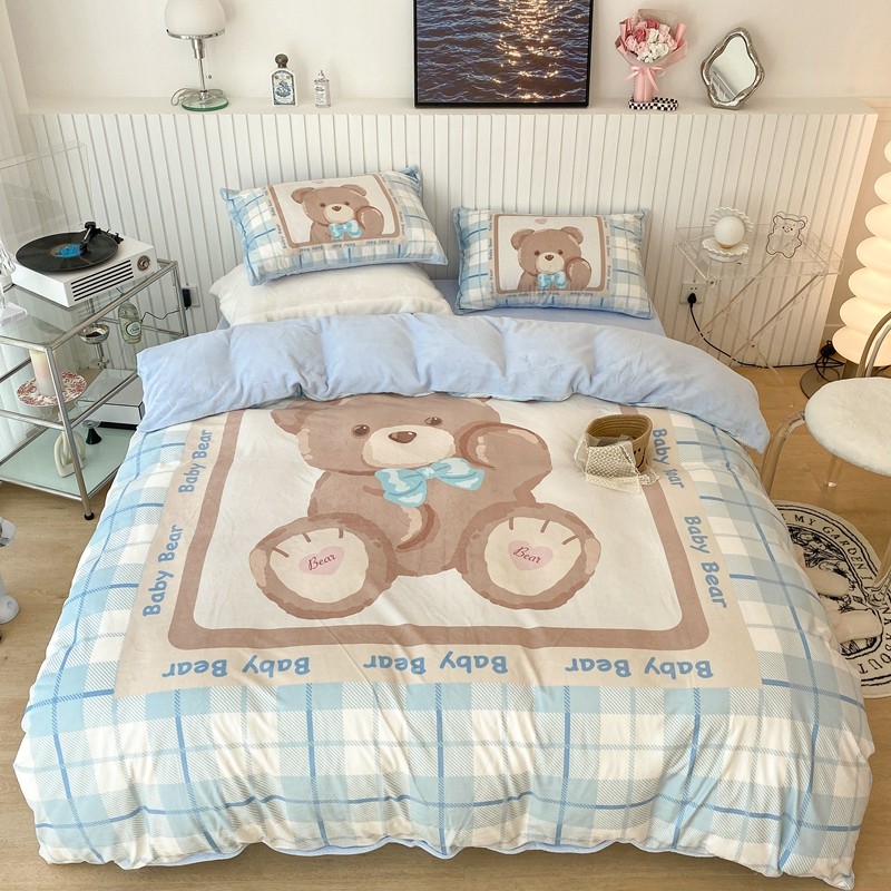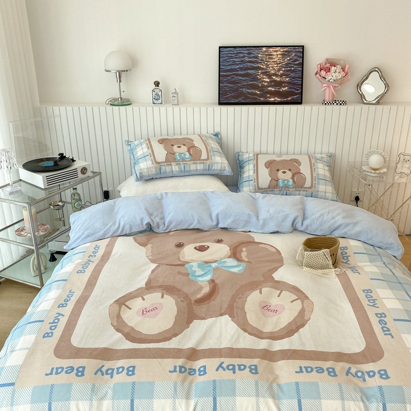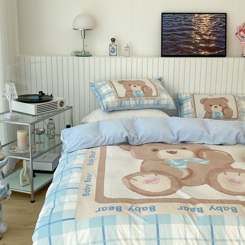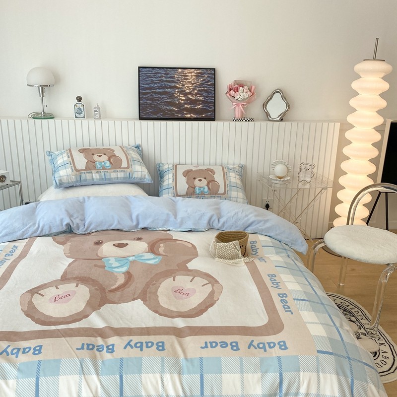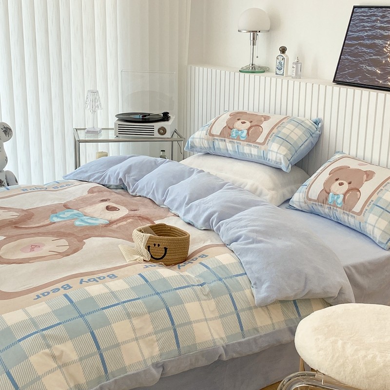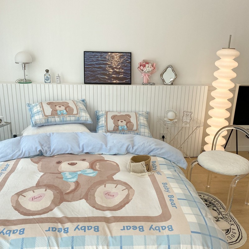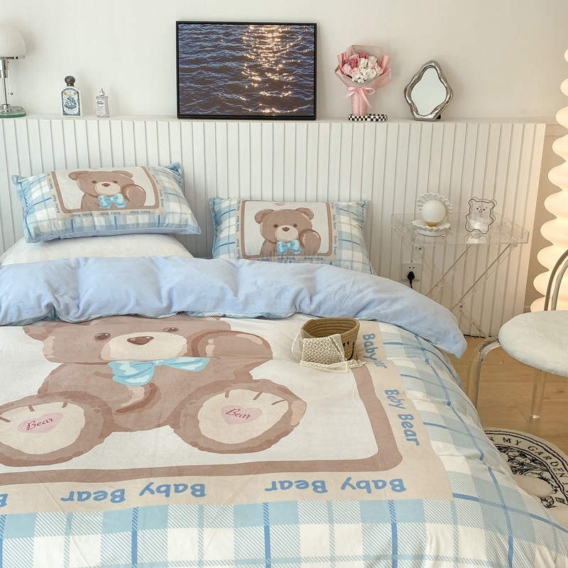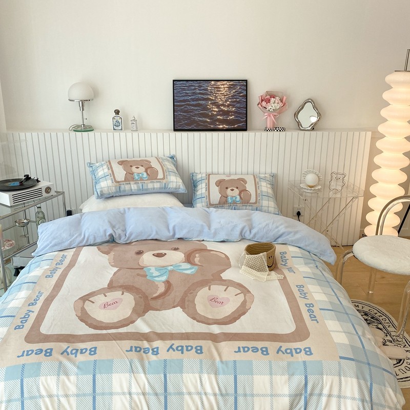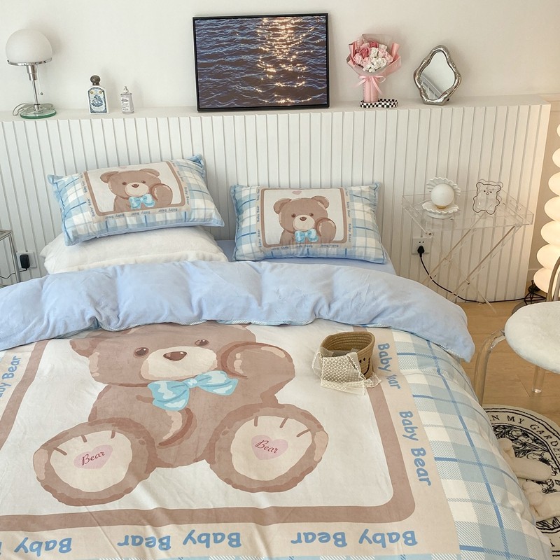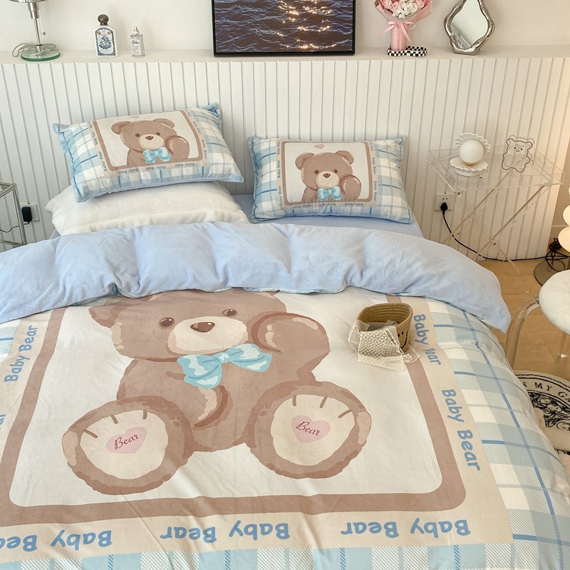 昔可家纺 2021新款大版宝宝牛奶绒四件套 可爱小熊仔