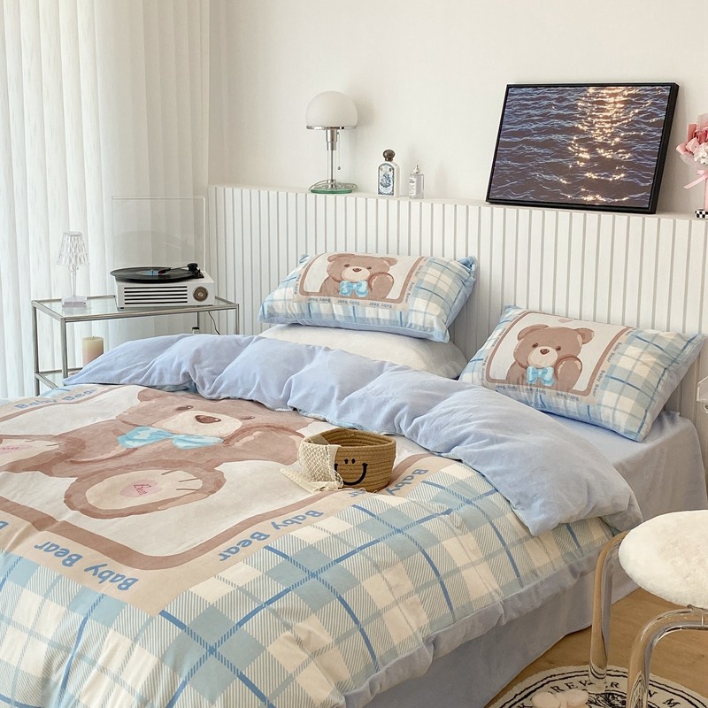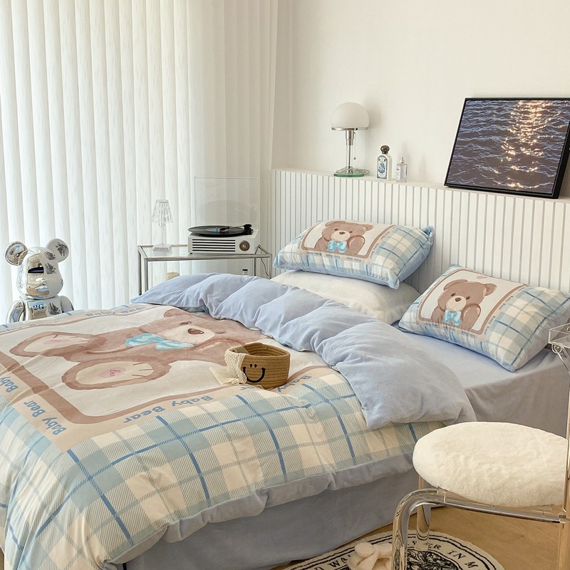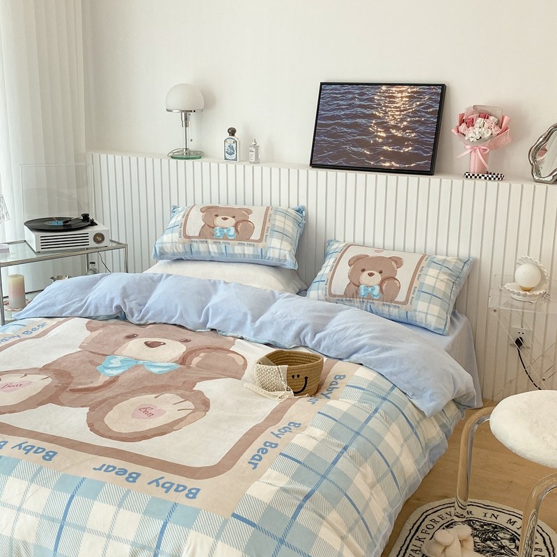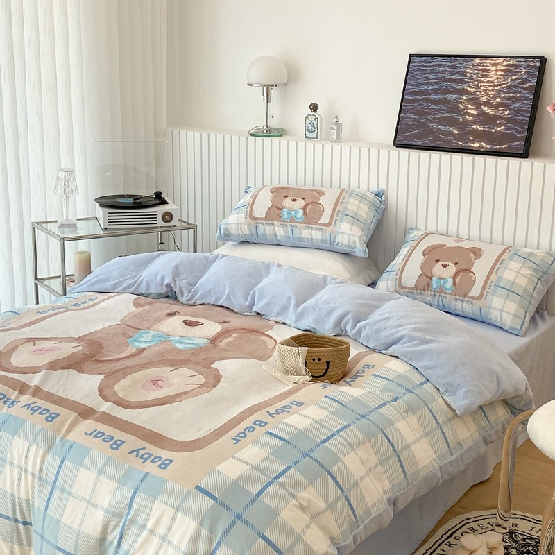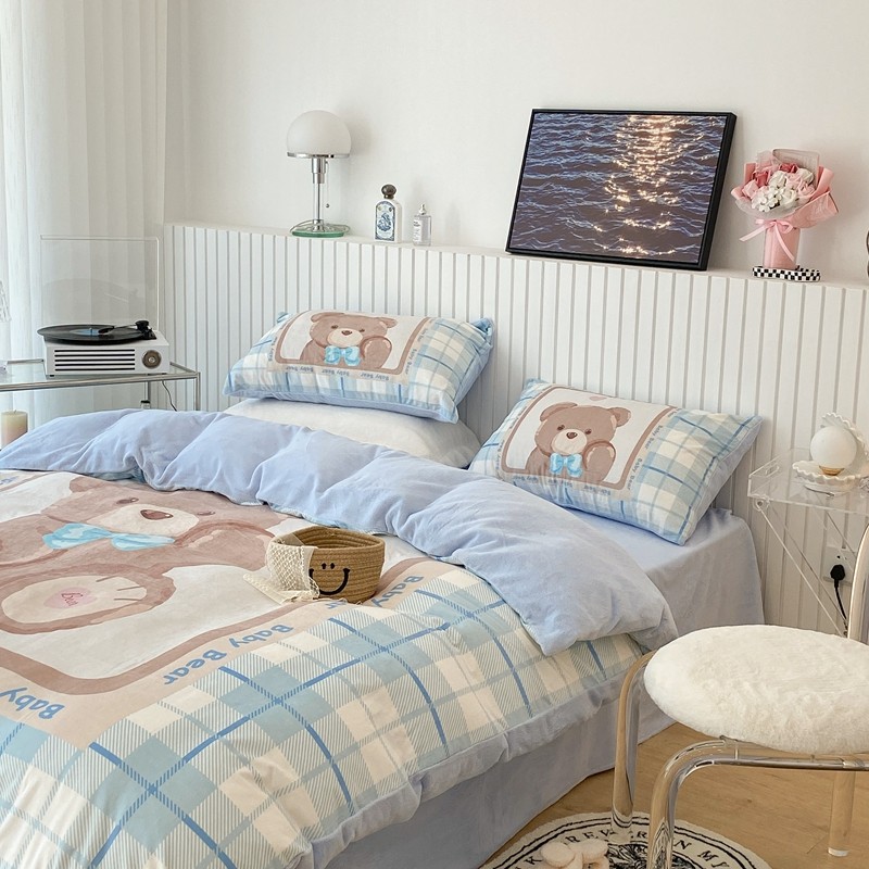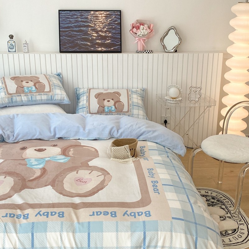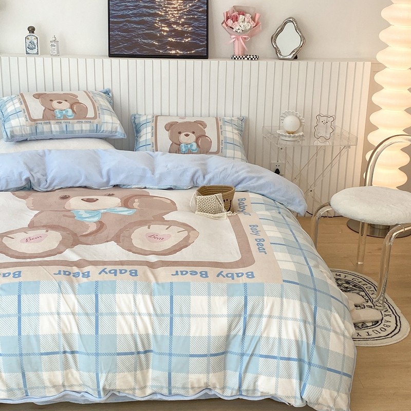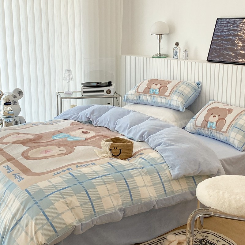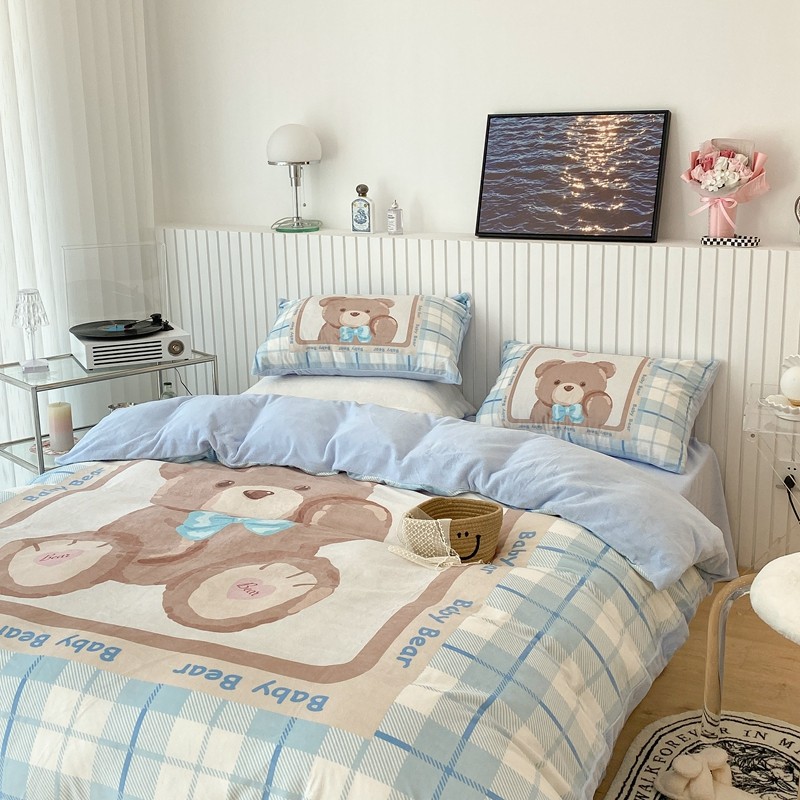 昔可家纺 2021新款大版宝宝牛奶绒四件套 可爱小熊仔