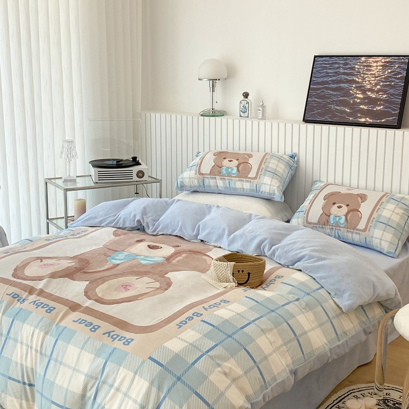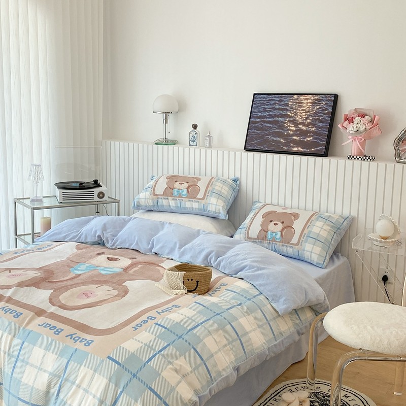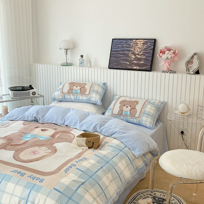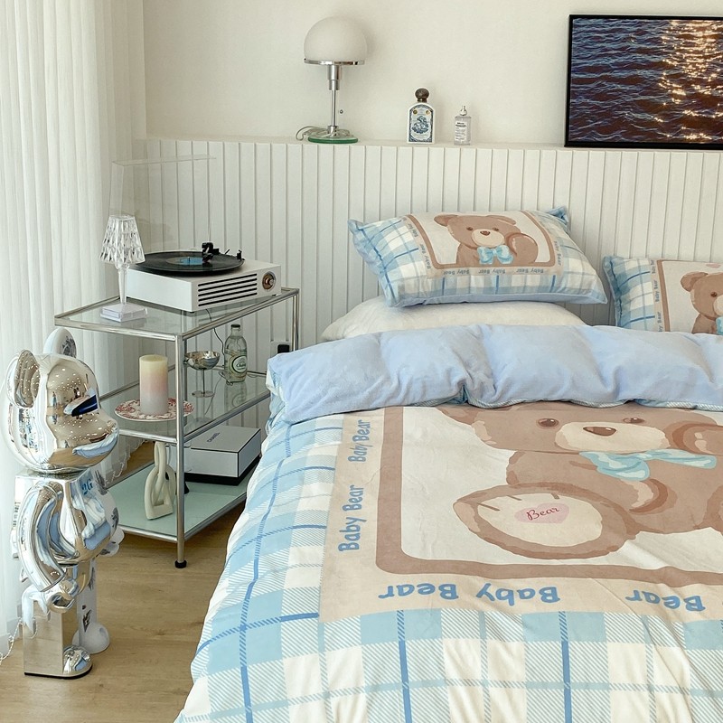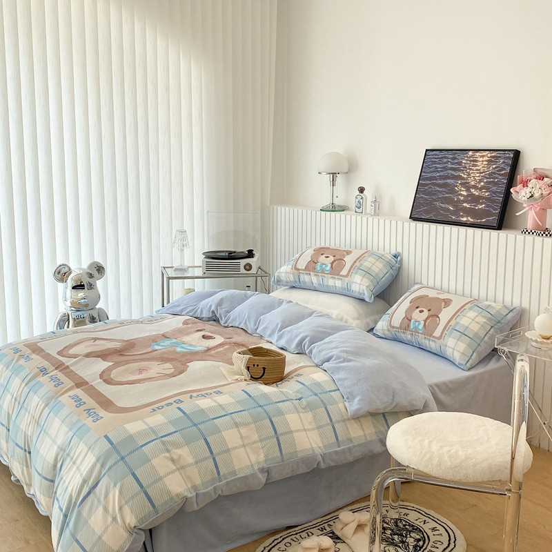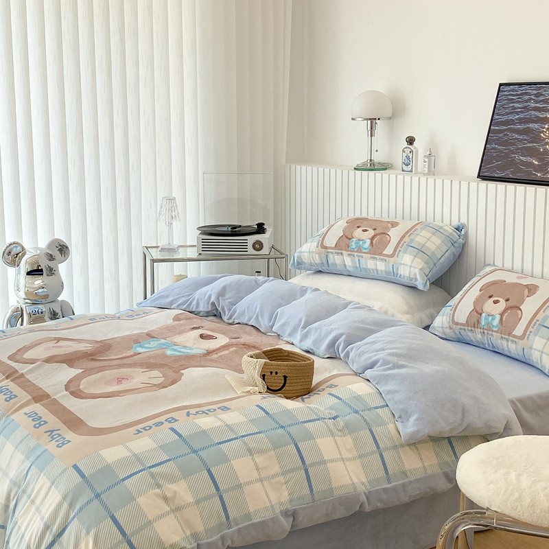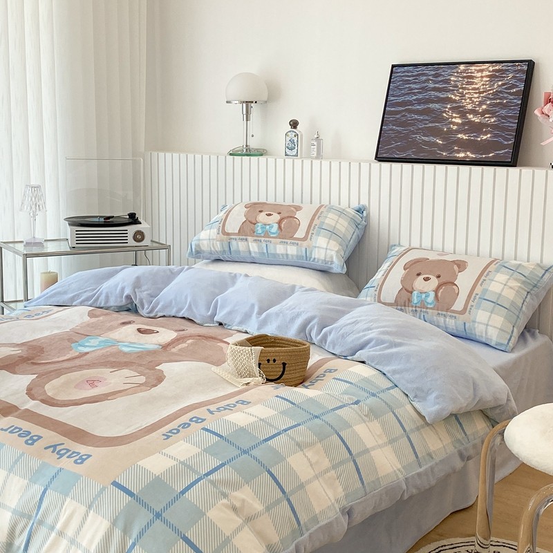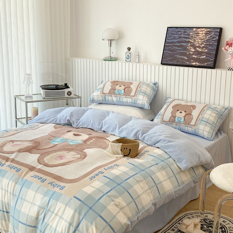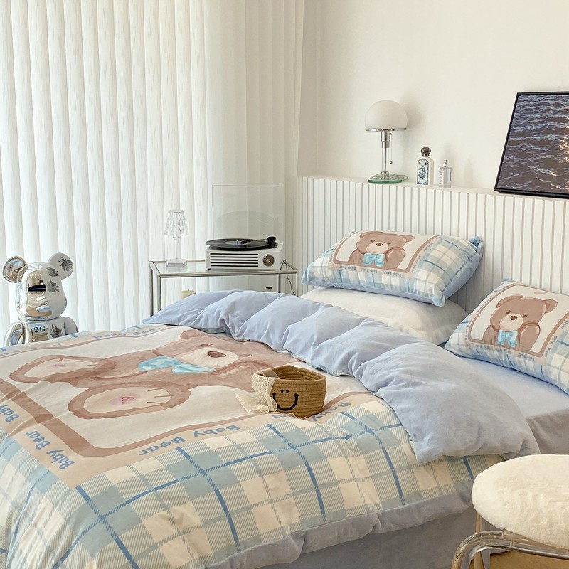 昔可家纺 2021新款大版宝宝牛奶绒四件套 可爱小熊仔
