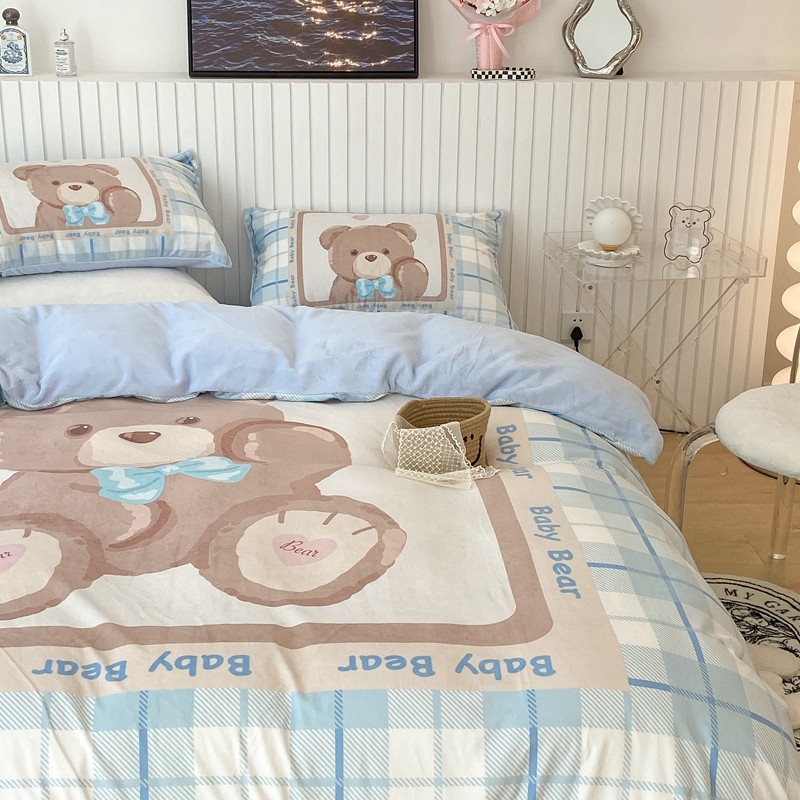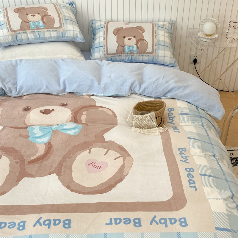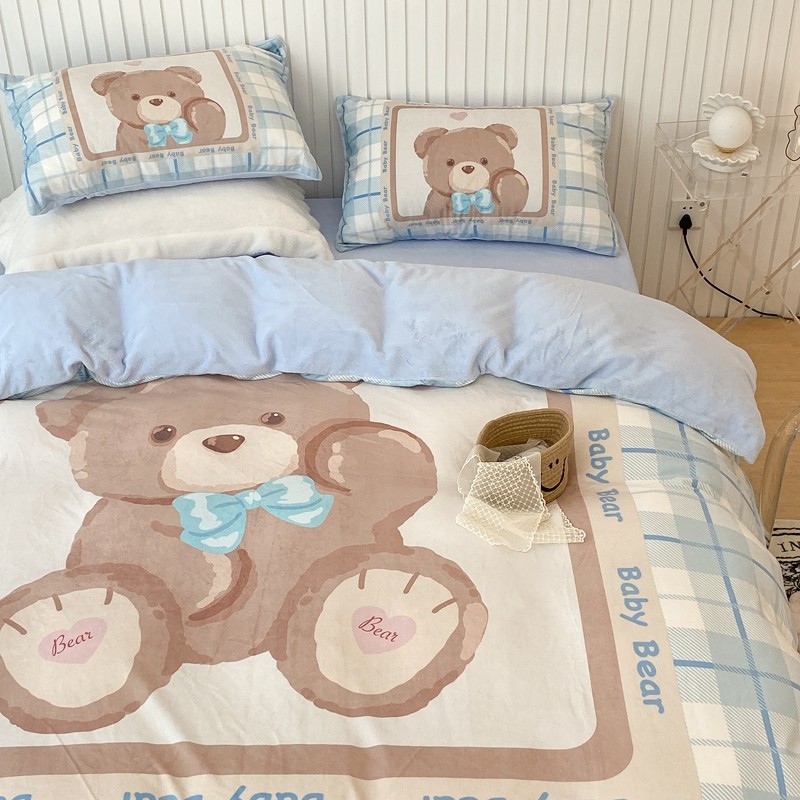 商品名称:昔可家纺 2021新款大版宝宝牛奶绒四件套 可爱小熊仔