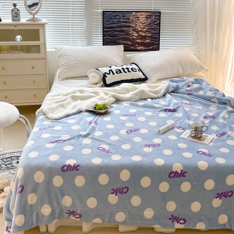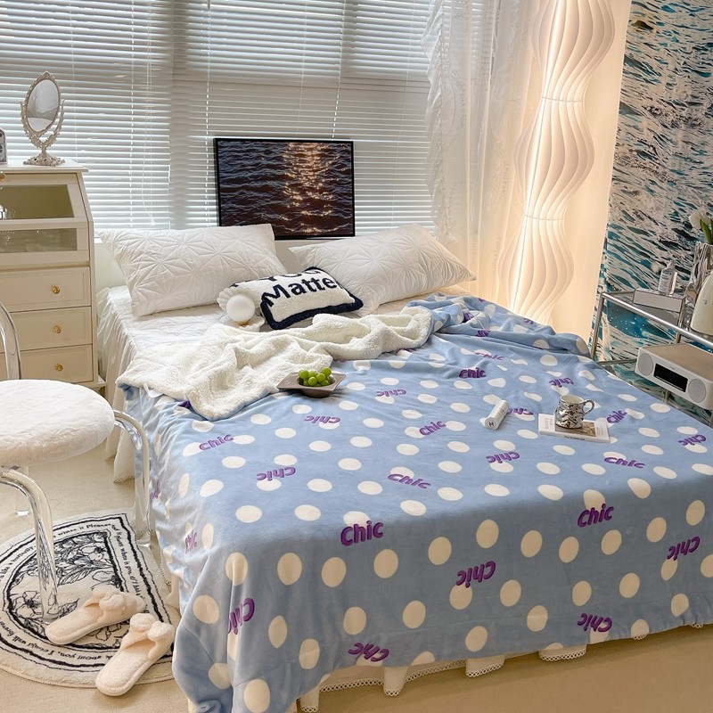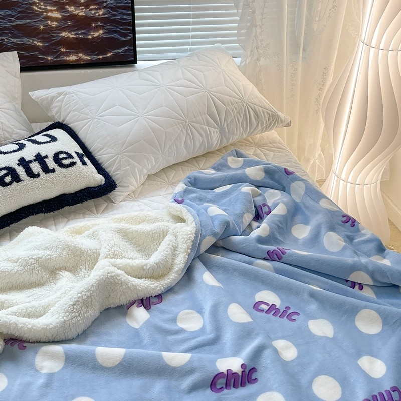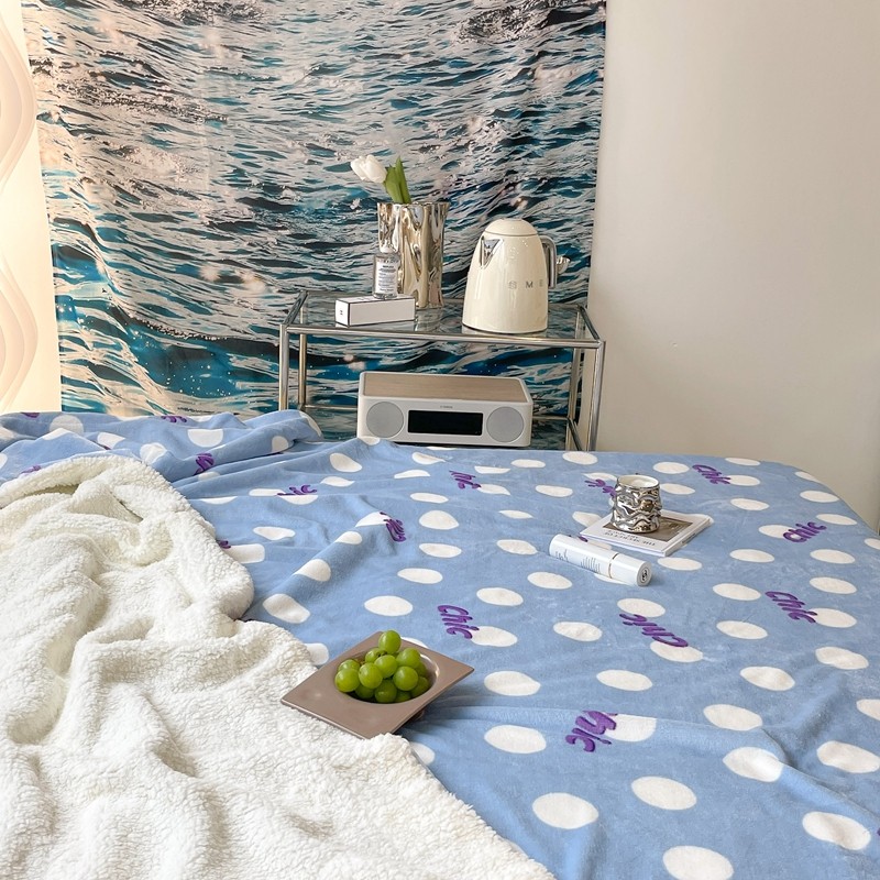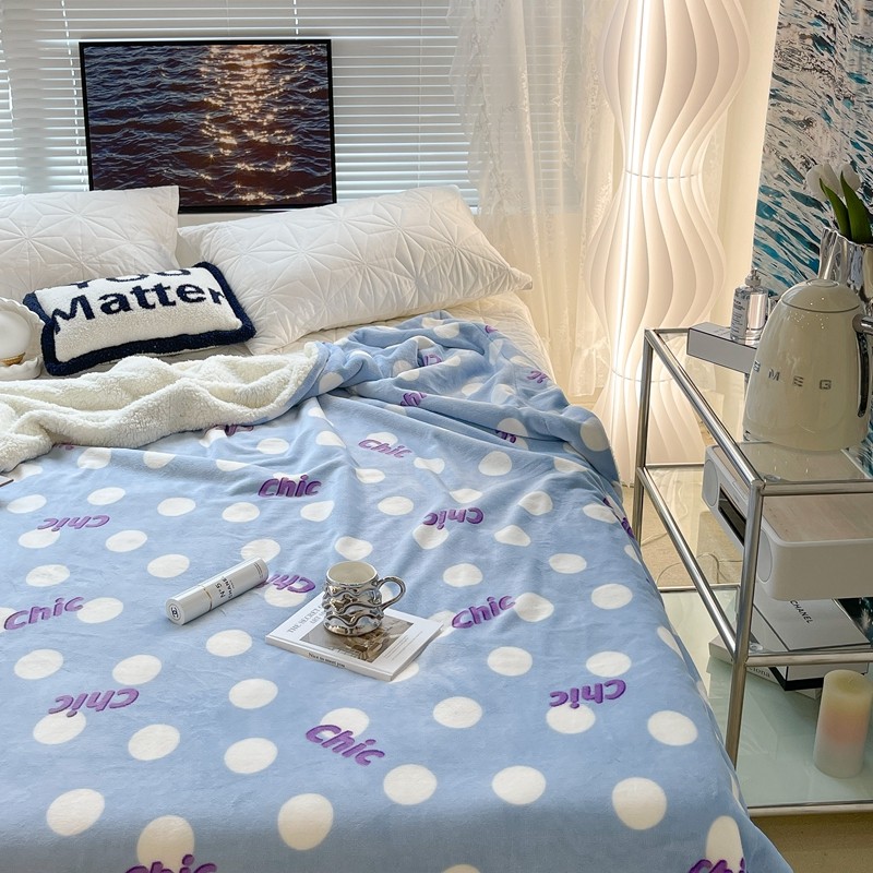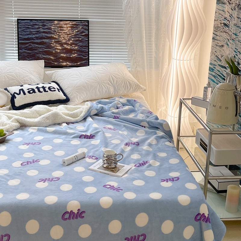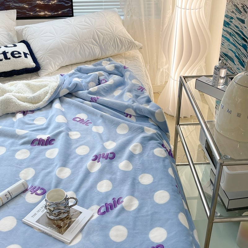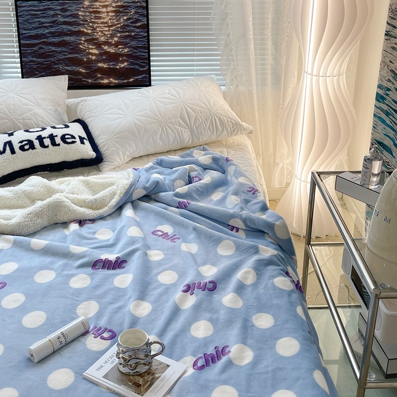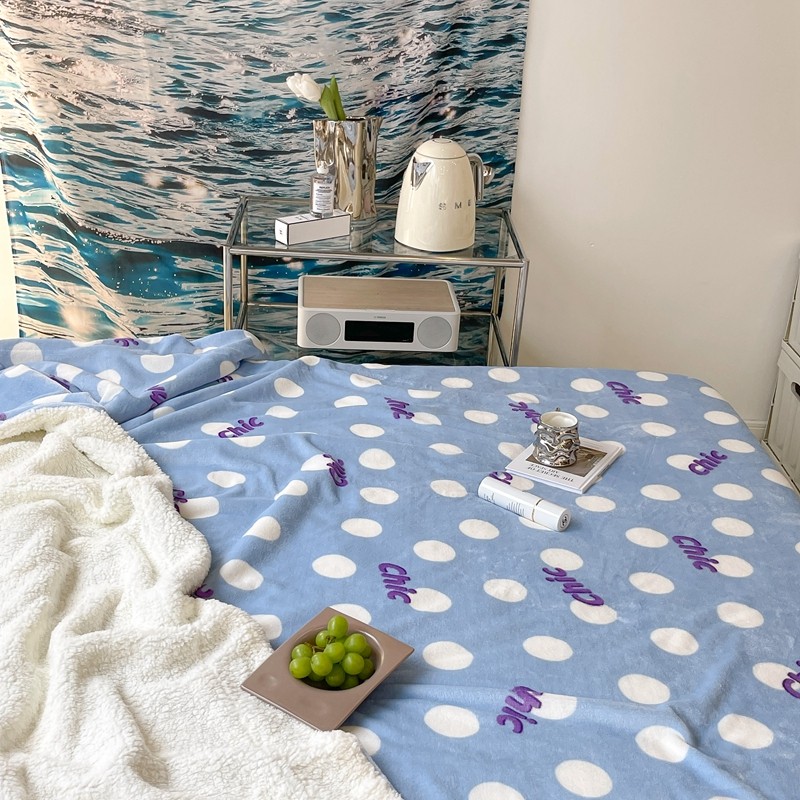 昔可家纺 2021新款牛奶羊羔绒印花毯 蓝色波点chic