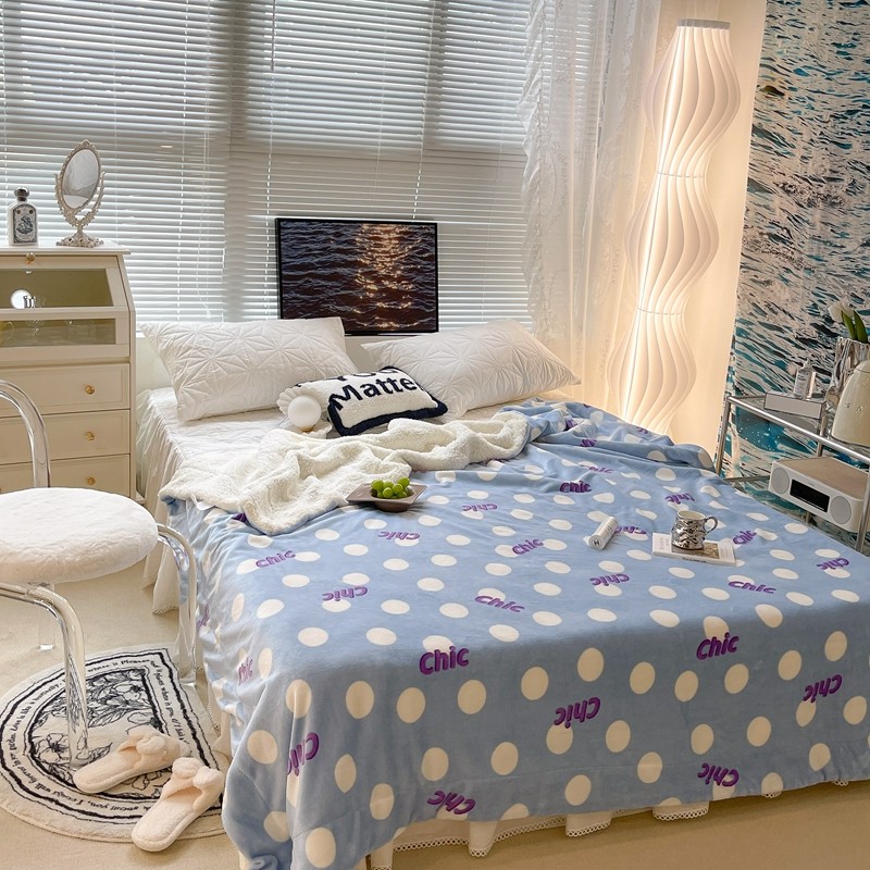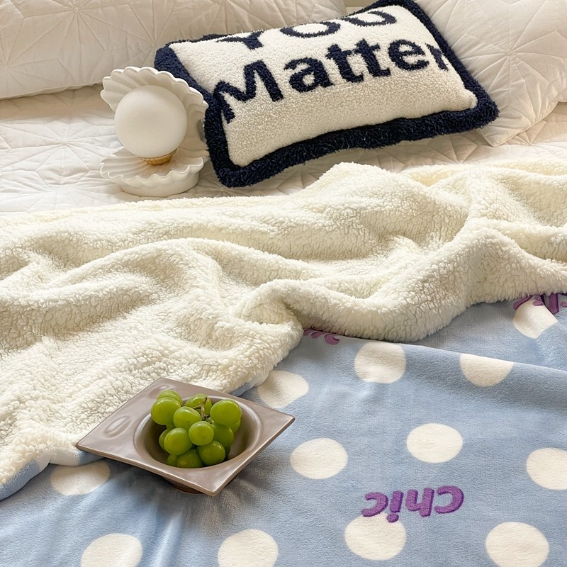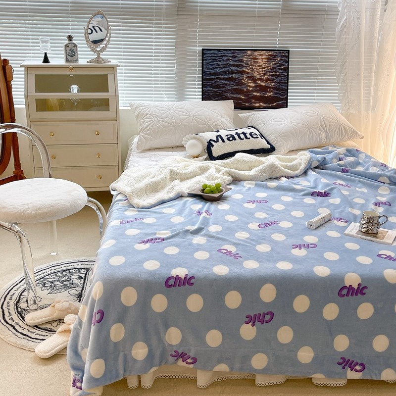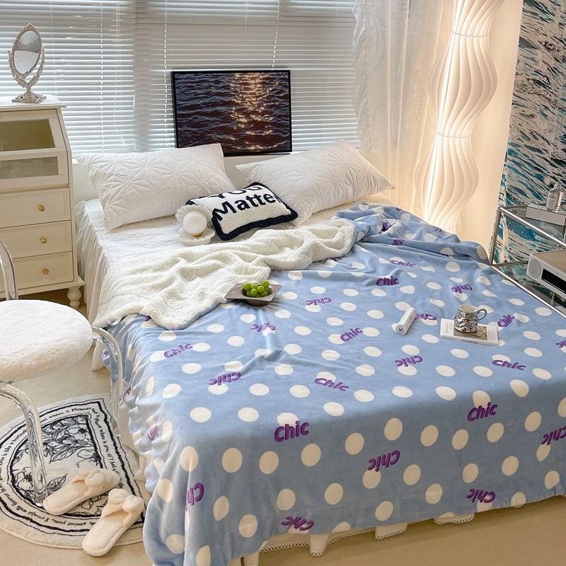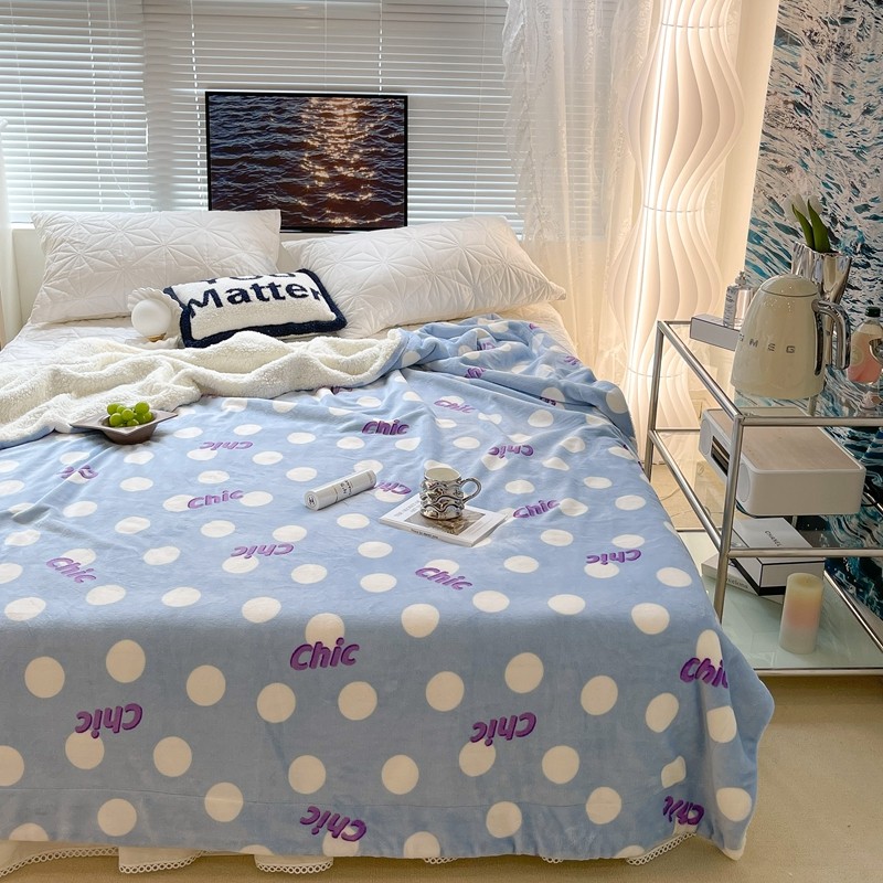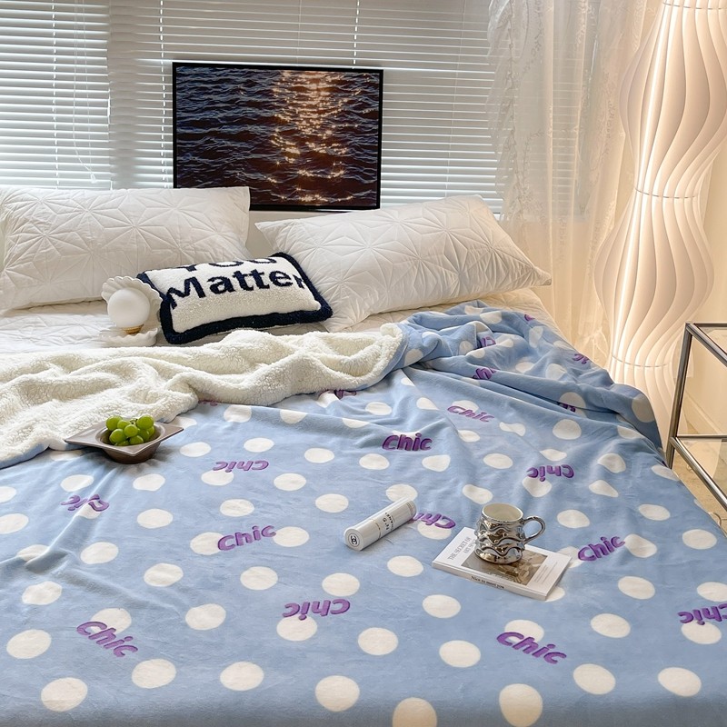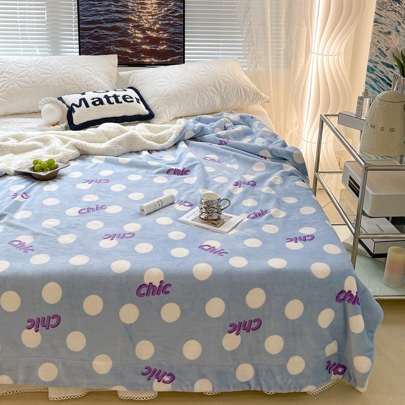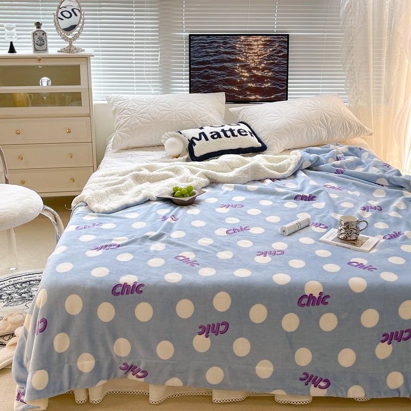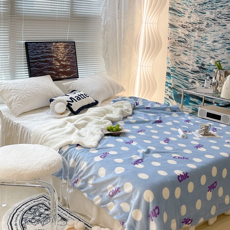 昔可家纺 2021新款牛奶羊羔绒印花毯 蓝色波点chic