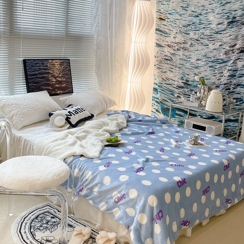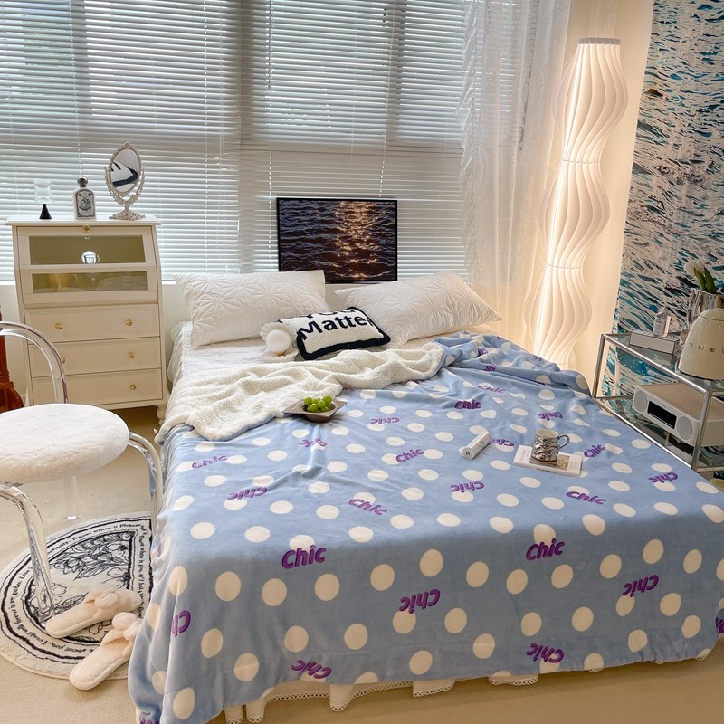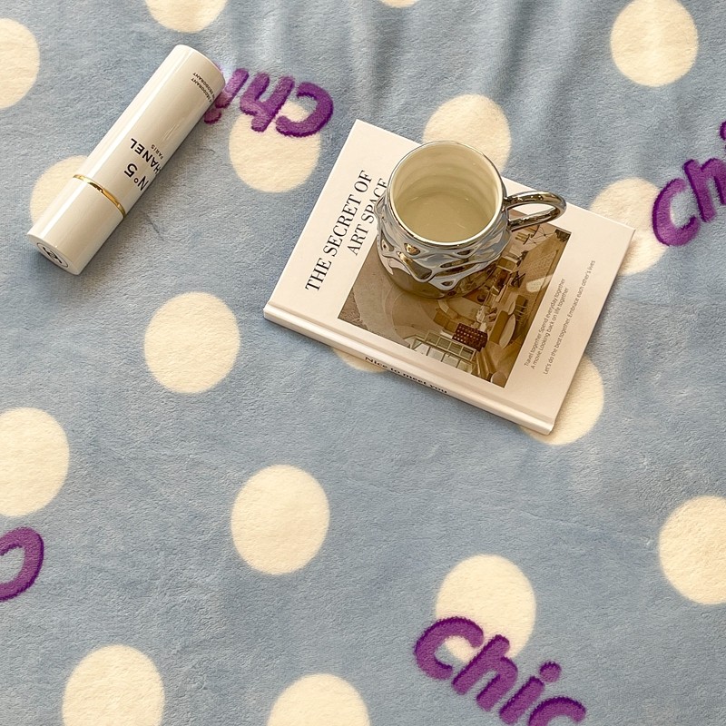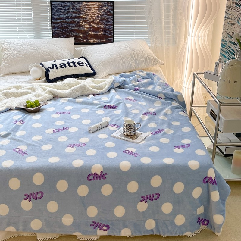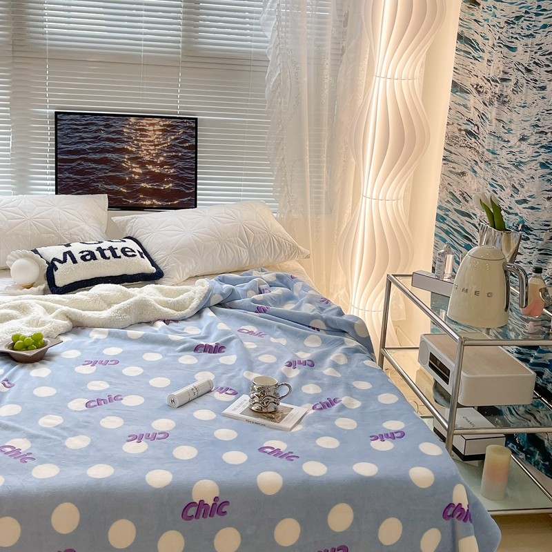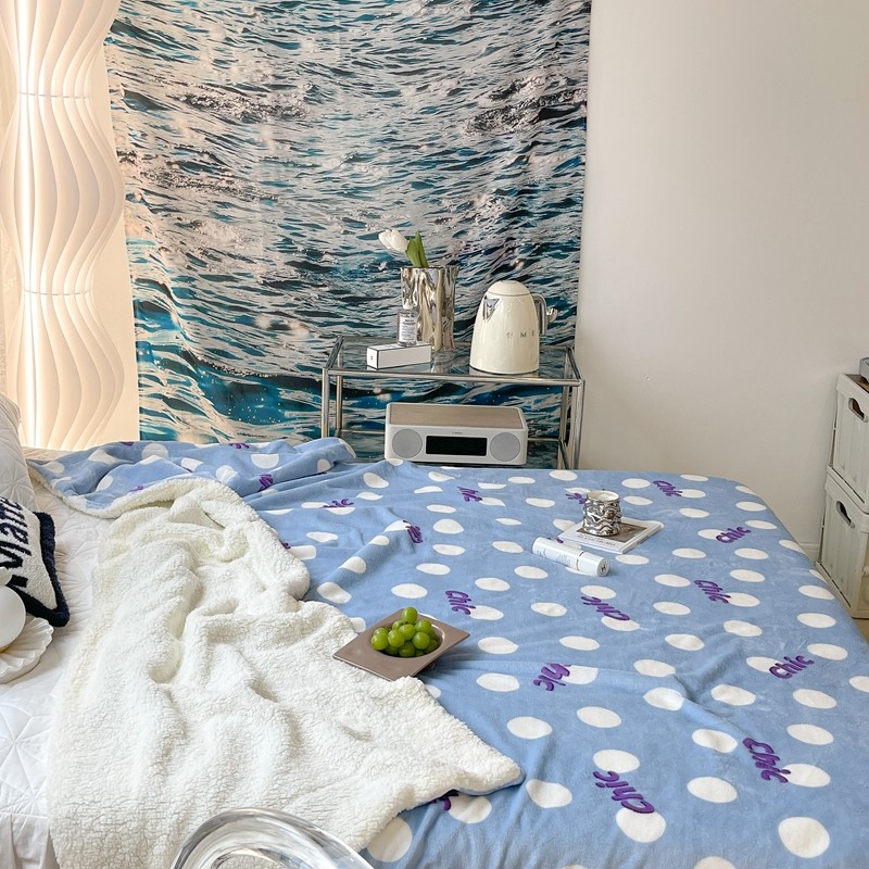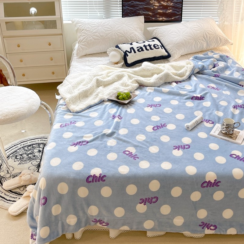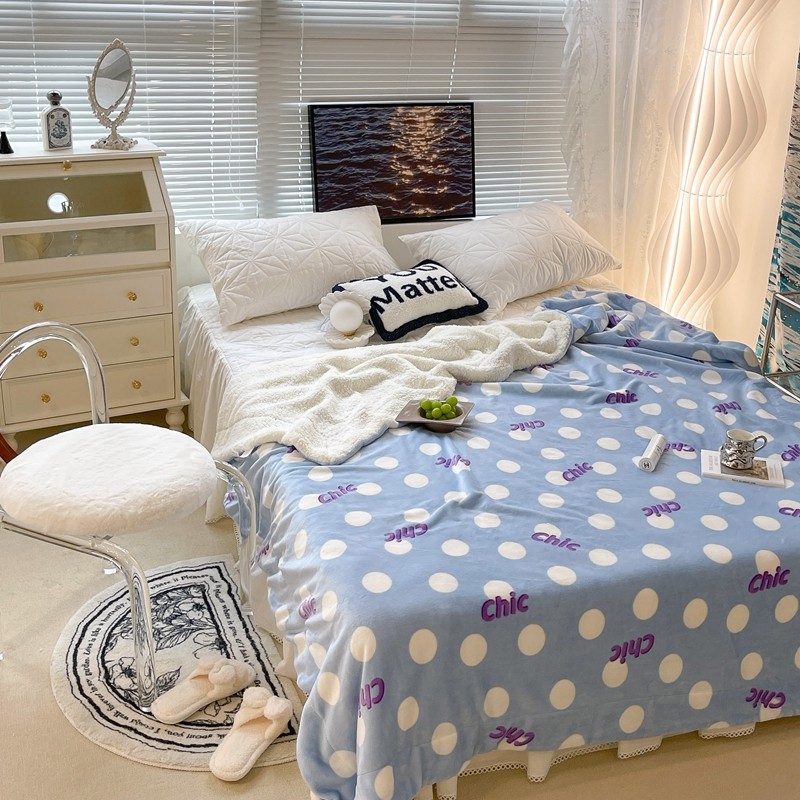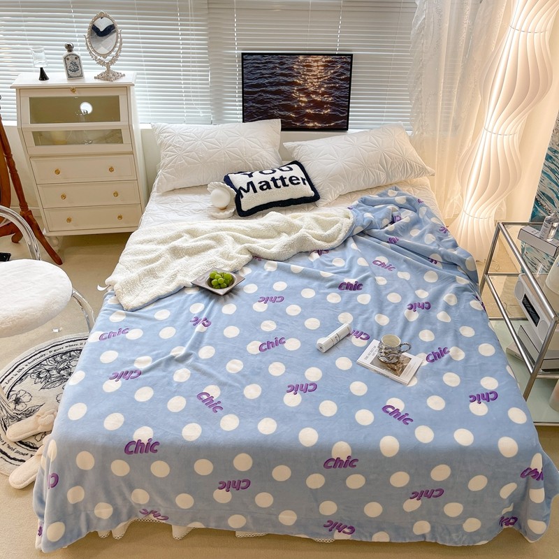 昔可家纺 2021新款牛奶羊羔绒印花毯 蓝色波点chic